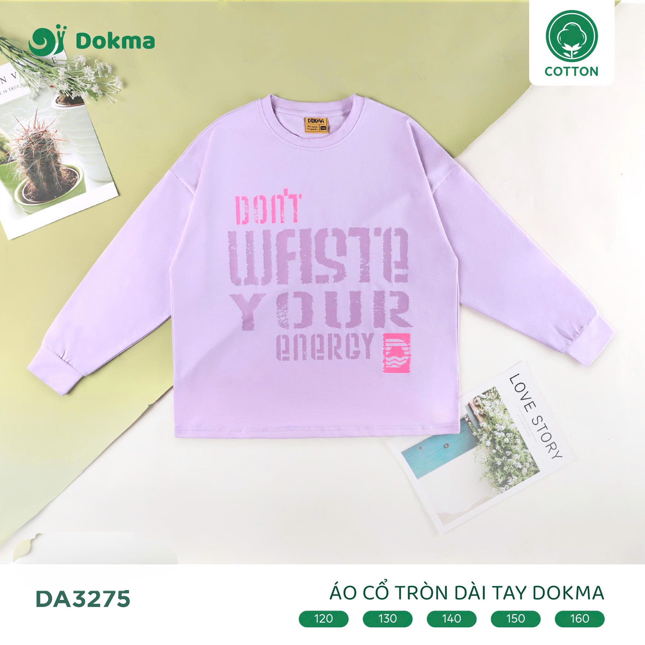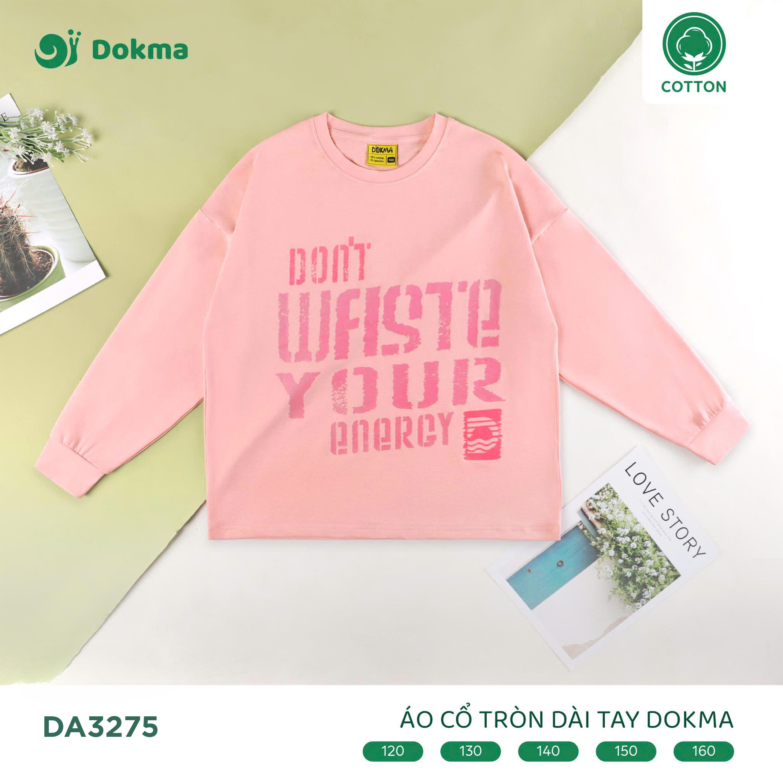 Áo cổ tròn dài tay Dokma DA3275 mang phong cách cá tính, năng động với dòng chữ nổi bật “Don’t waste your energy”, giúp bé tự tin thể hiện cá tính riêng. Thiết kế basic nhưng thời thượng, kết hợp chất liệu cotton mềm mại, mang lại sự thoải mái trong mọi hoạt động.