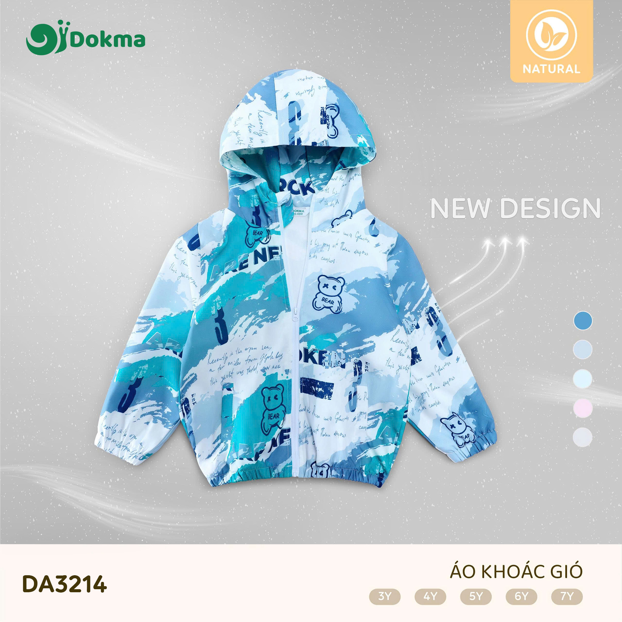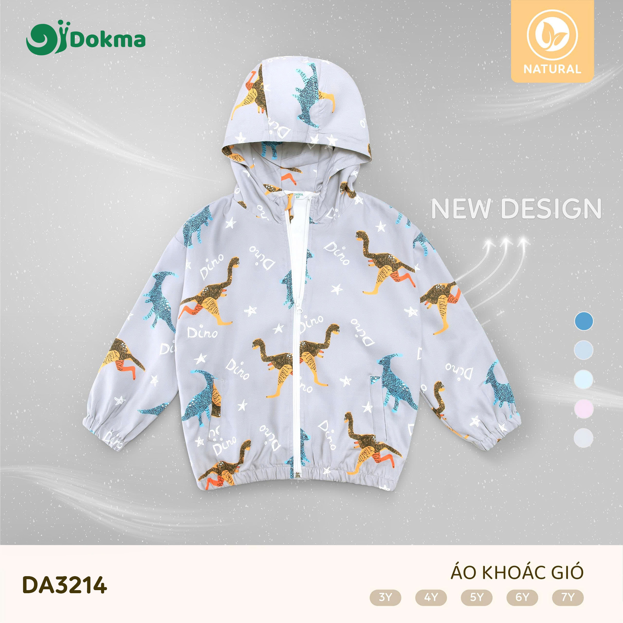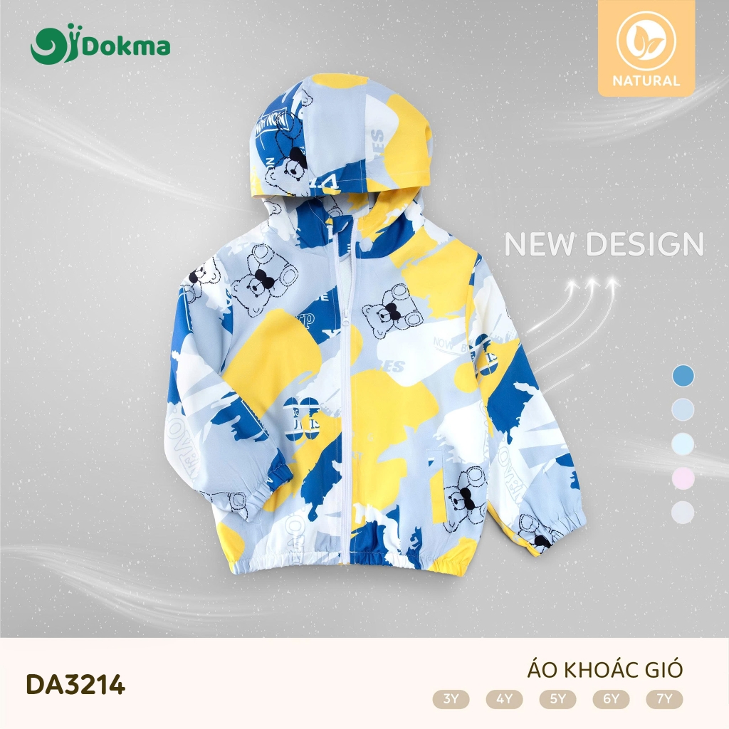 Áo khoác gió Dokma DA3214 được làm từ chất liệu Natural, nhẹ, mềm và thân thiện với làn da của bé. Chất vải giúp cản gió nhẹ, giữ ấm vừa đủ nhưng vẫn đảm bảo độ thoáng khí, phù hợp cho bé mặc khi đi học, đi chơi hoặc hoạt động ngoài trời.