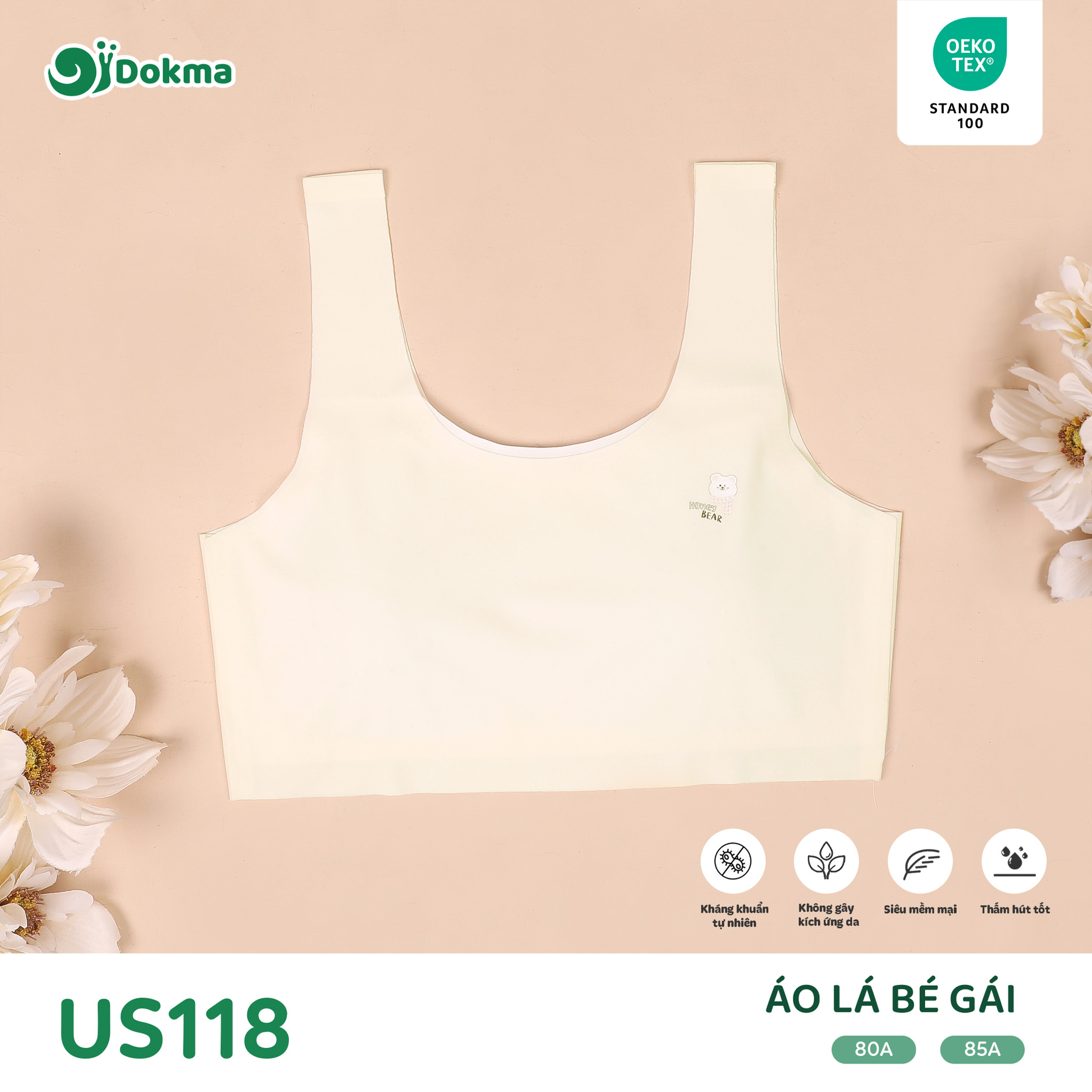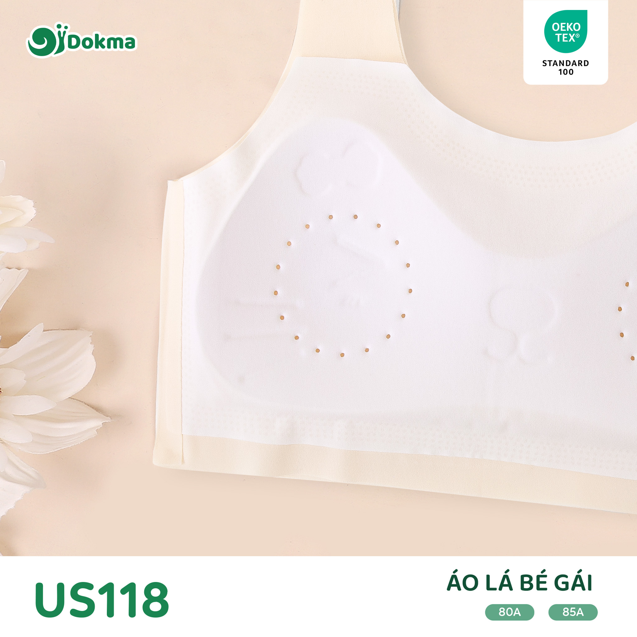 Áo lá bé gái Dokma US118 là mẫu áo ngực không gọng dành cho tuổi dậy thì, được thiết kế để mang lại sự thoải mái tối đa với chất liệu su đúc mềm mại và thoáng khí. Sản phẩm hướng tới trải nghiệm nhẹ nhàng, hạn chế nhăn và thấm hút mồ hôi tốt.