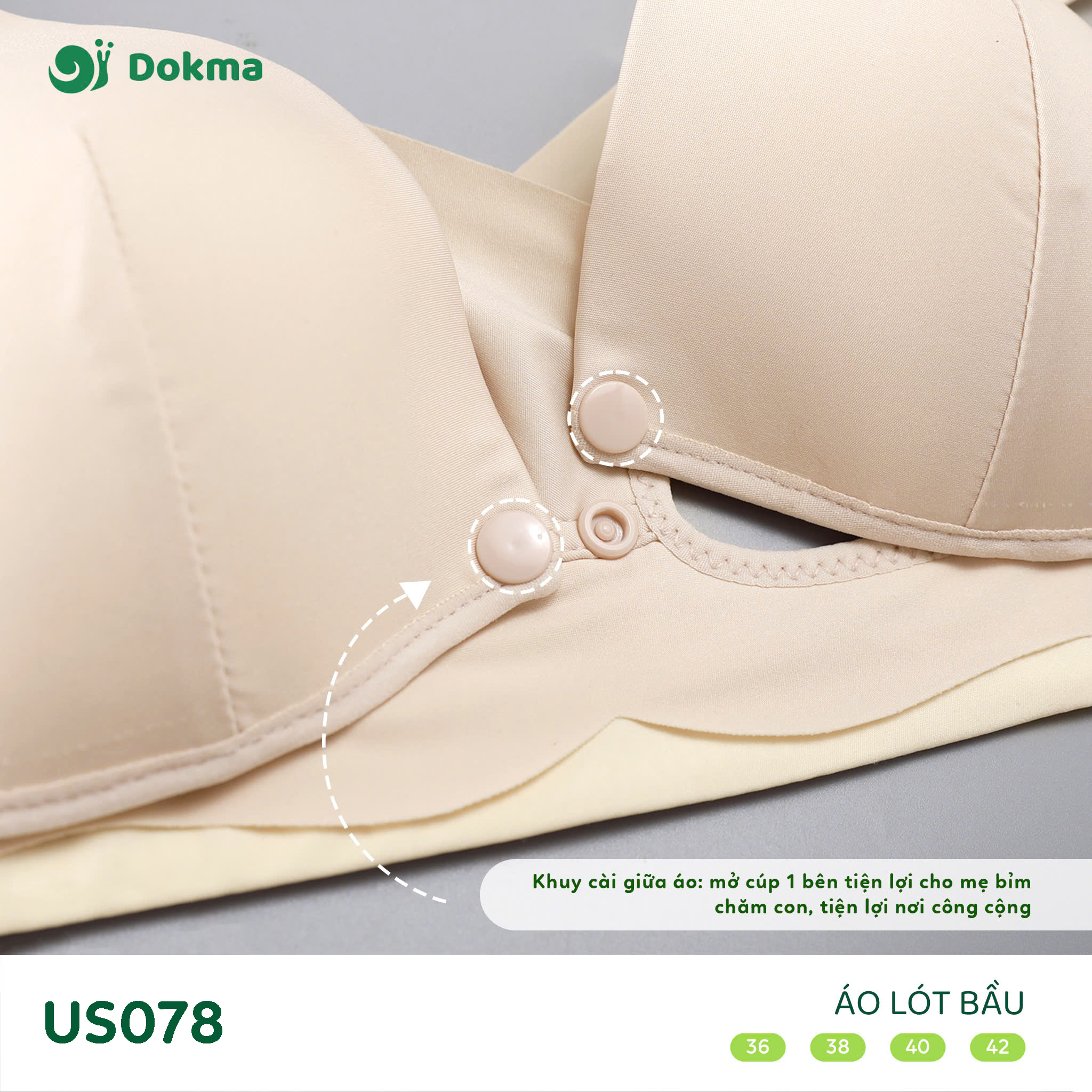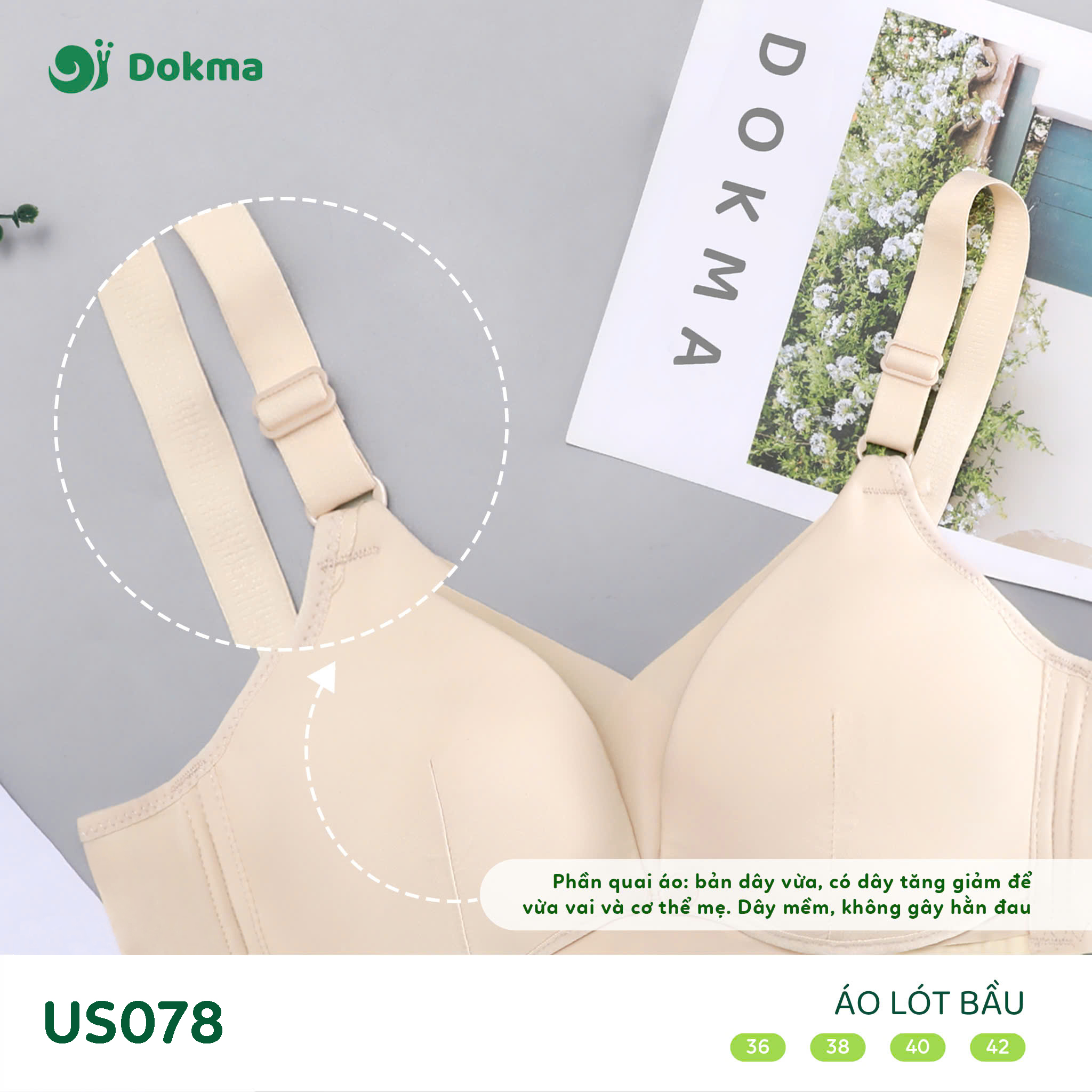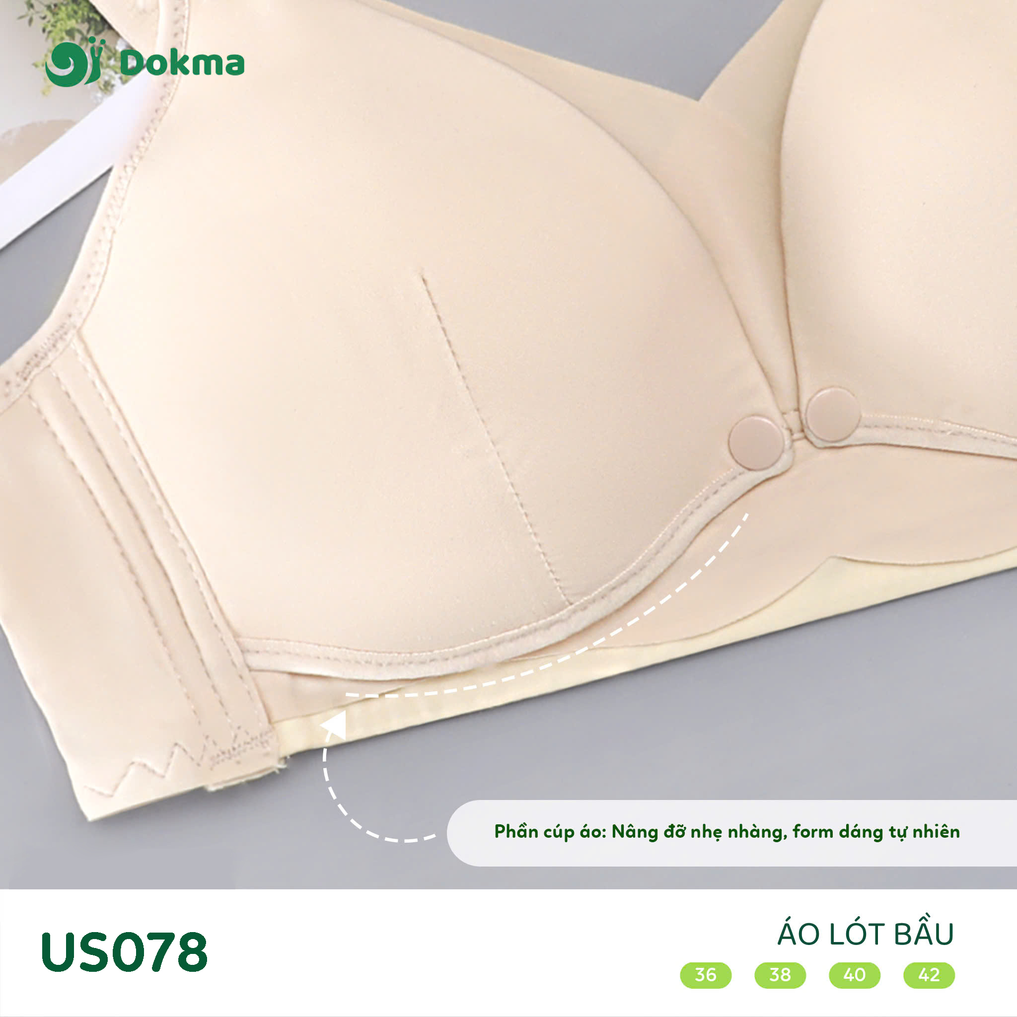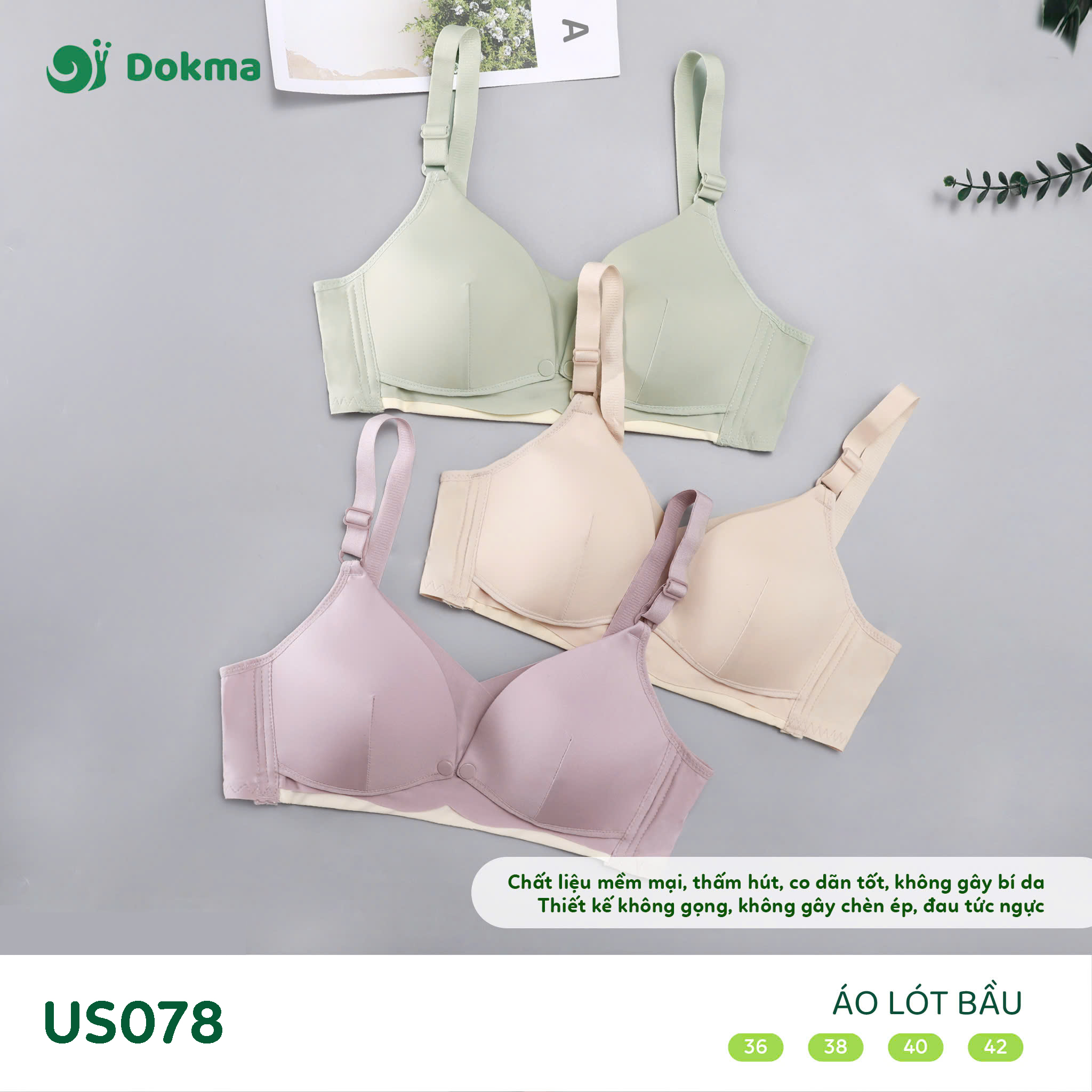 Áo lót bầu Dokma US078 là mẫu áo lót chuyên dụng dành cho phụ nữ mang thai và sau sinh, được thiết kế để mang lại sự thoải mái, nâng đỡ nhẹ nhàng và tiện lợi tối đa. Áo được làm từ chất liệu vải mềm mại, thoáng khí, mang lại cảm giác dễ chịu suốt cả ngày dài. Chất vải mềm mịn, không gọng, giúp định hình vòng một tự nhiên mà không gây áp lực, đau tức hay hằn vết đỏ lên da, phù hợp để mặc cả khi ngủ hoặc ở nhà.