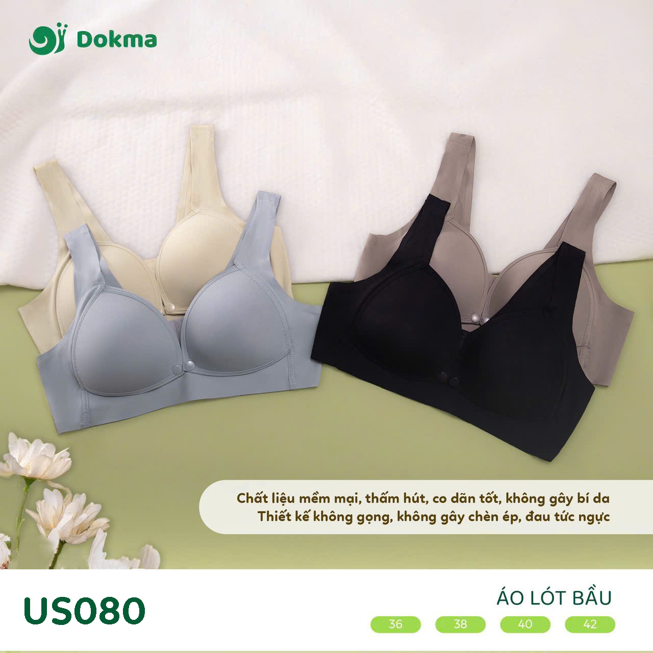 Áo lót bầu Dokma US080 là mẫu áo lót chuyên dụng dành cho phụ nữ mang thai và sau sinh, được thiết kế để mang lại sự thoải mái, nâng đỡ nhẹ nhàng và tiện lợi tối đa. Áo được làm từ chất liệu cotton cao cấp mềm mại, co giãn 4 chiều và thoáng khí, giúp mẹ bầu luôn cảm thấy dễ chịu suốt cả ngày dài. Chất vải mềm mịn, không gọng, giúp định hình vòng một tự nhiên mà không gây áp lực, đau tức hay hằn vết đỏ lên da, phù hợp để mặc cả khi ngủ hoặc ở nhà.