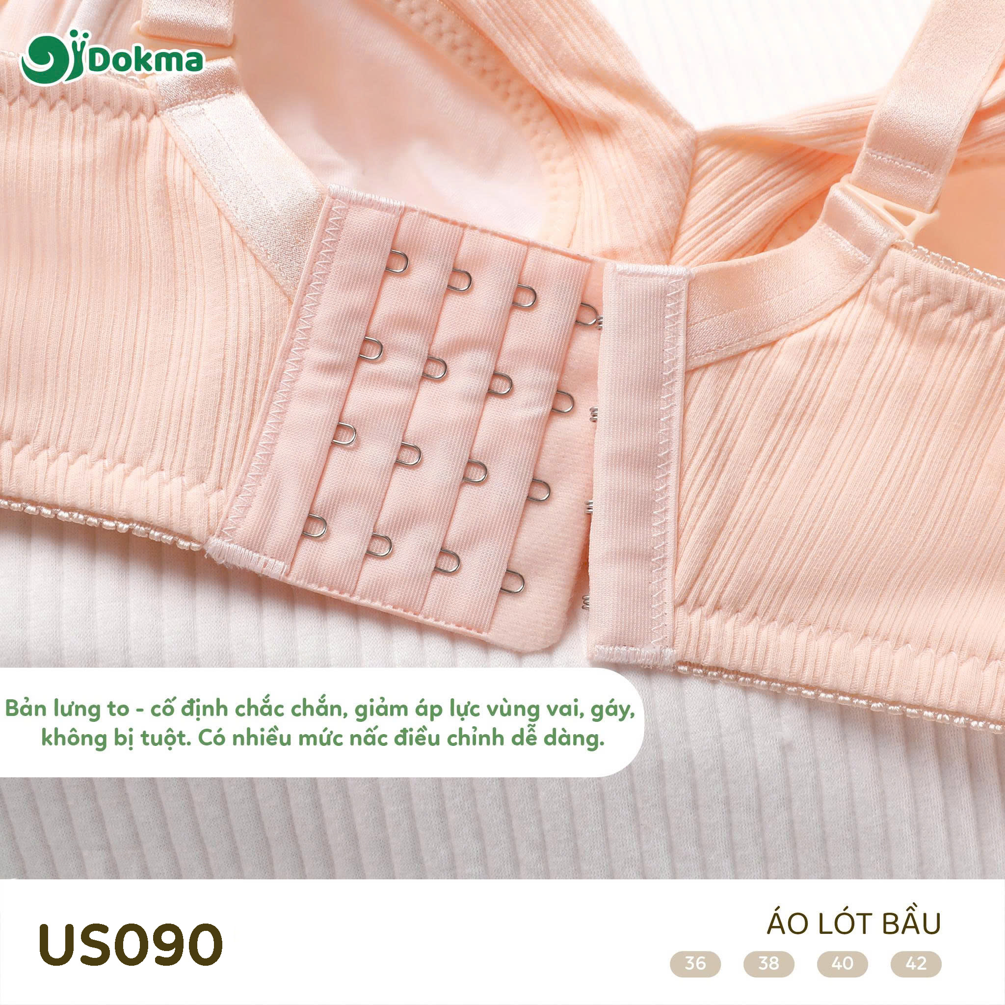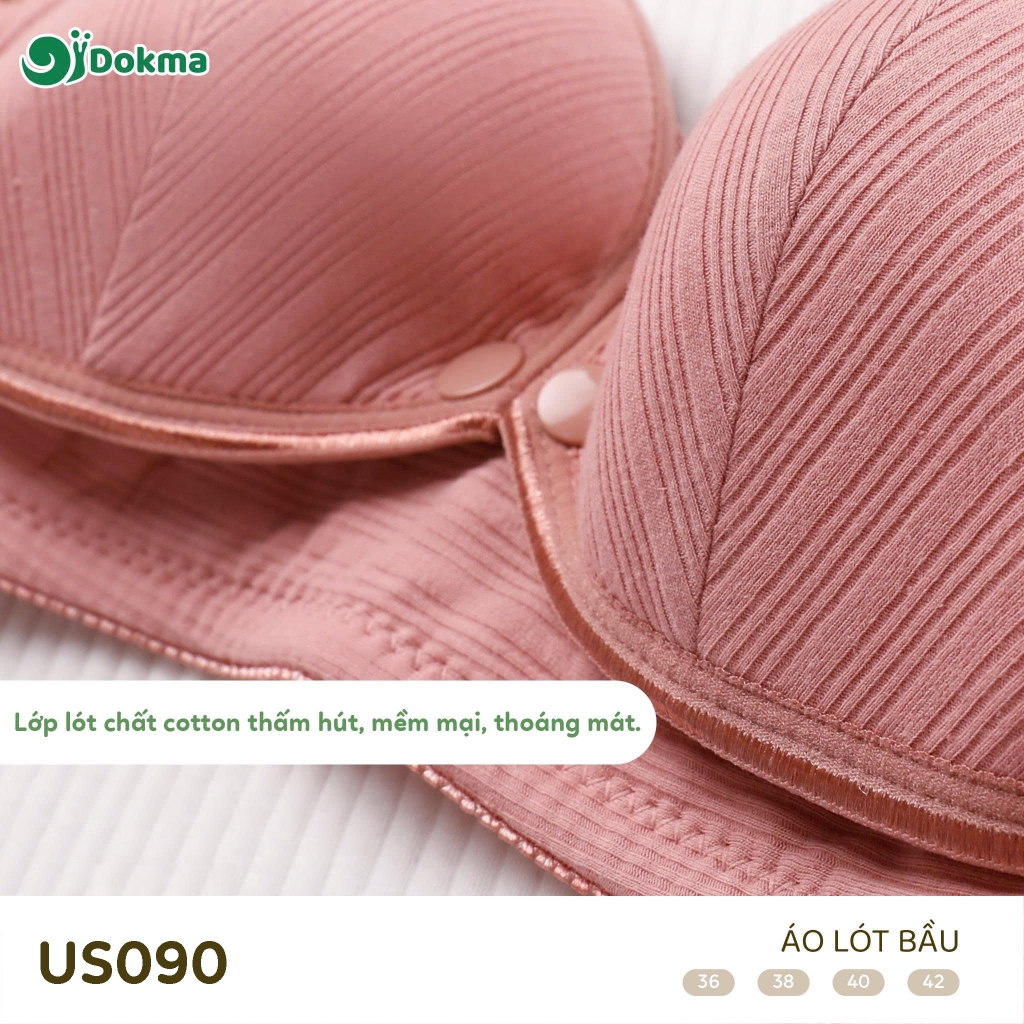Áo lót bầu Dokma US090 là mẫu áo lót chuyên dụng dành cho phụ nữ mang thai và sau sinh, được thiết kế để mang lại sự thoải mái, nâng đỡ nhẹ nhàng và tiện lợi tối đa. Áo được làm từ chất liệu cotton co giãn mềm mại, thoáng khí, giúp mẹ bầu luôn cảm thấy dễ chịu suốt cả ngày dài. Chất vải mềm mịn, không gọng, giúp định hình vòng một tự nhiên mà không gây áp lực, đau tức hay hằn vết đỏ lên da, phù hợp để mặc cả khi ngủ hoặc ở nhà.