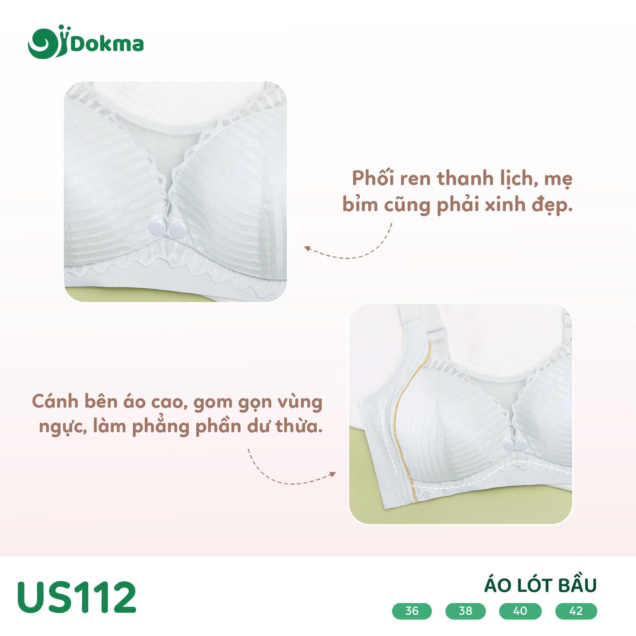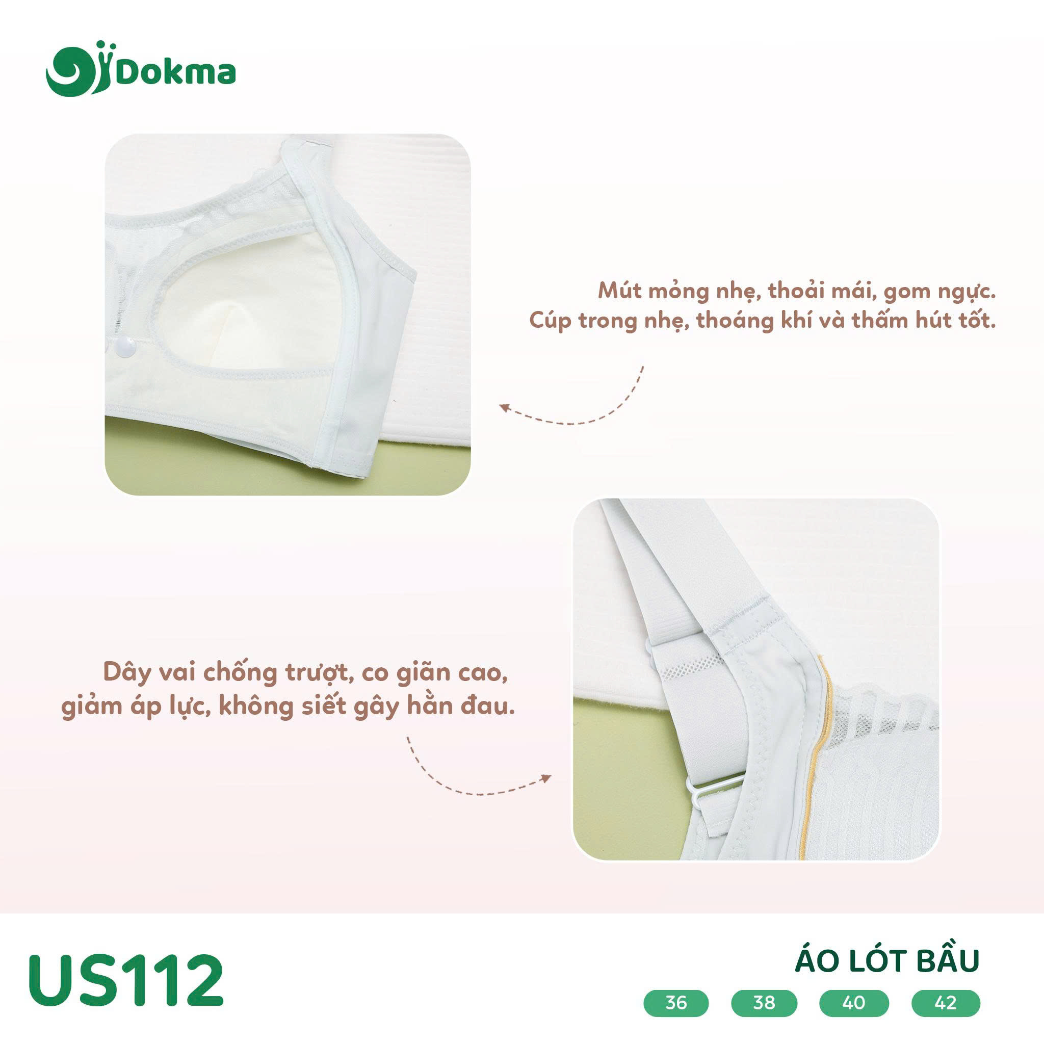 Áo lót bầu Dokma US112 là mẫu áo ngực không gọng được thiết kế đặc biệt cho các bà mẹ trong suốt thai kỳ và giai đoạn cho con bú. Sản phẩm hướng tới sự thoải mái tối đa với chất liệu cotton mềm mại, thoáng khí, bề mặt vải có độ thoáng tự nhiên, giúp mẹ luôn dễ chịu. Chất vải có độ dày vừa phải, đứng form nhưng vẫn co giãn nhẹ, thấm hút mồ hôi tốt, phù hợp cho mẹ mặc cả ngày dài hoặc khi ở nhà.