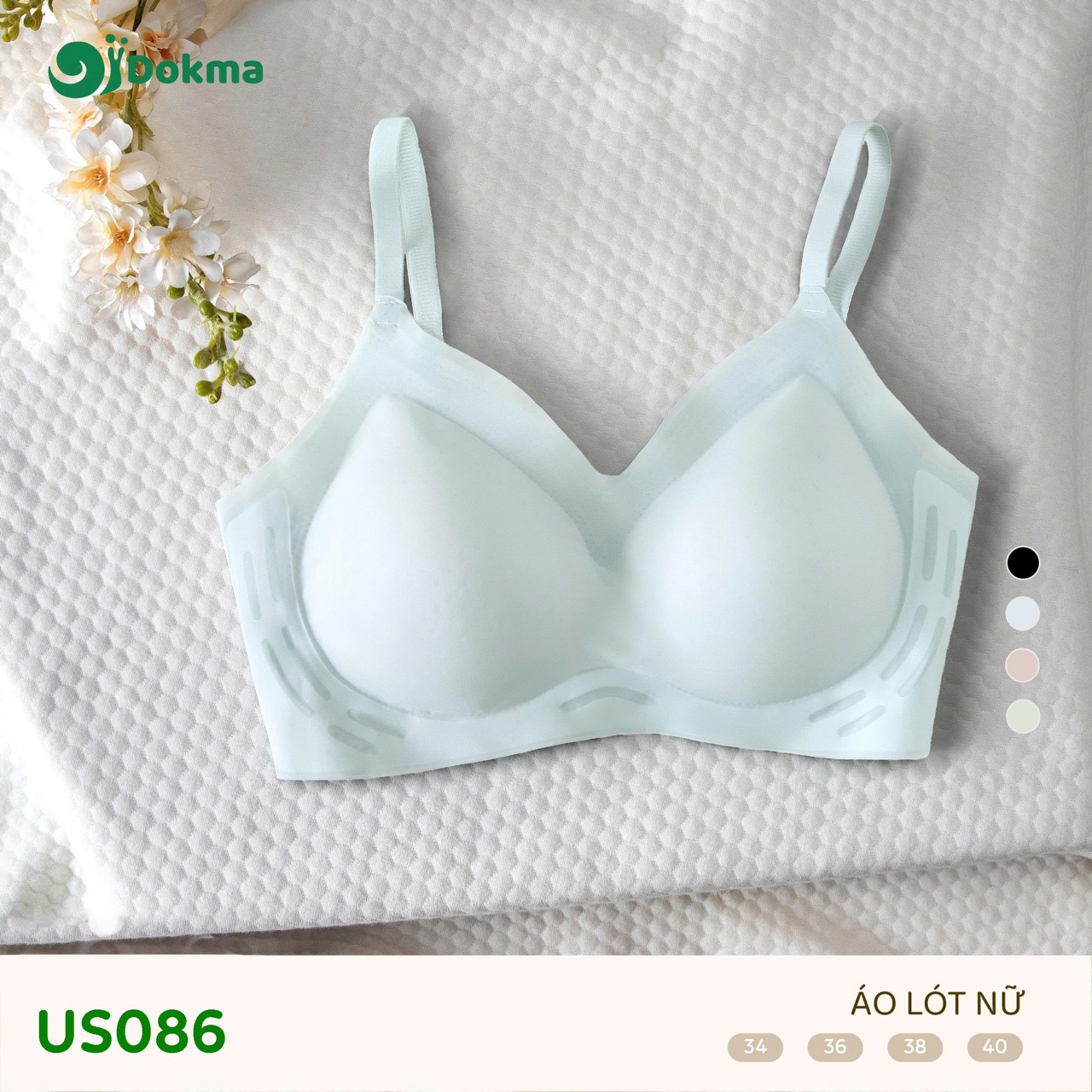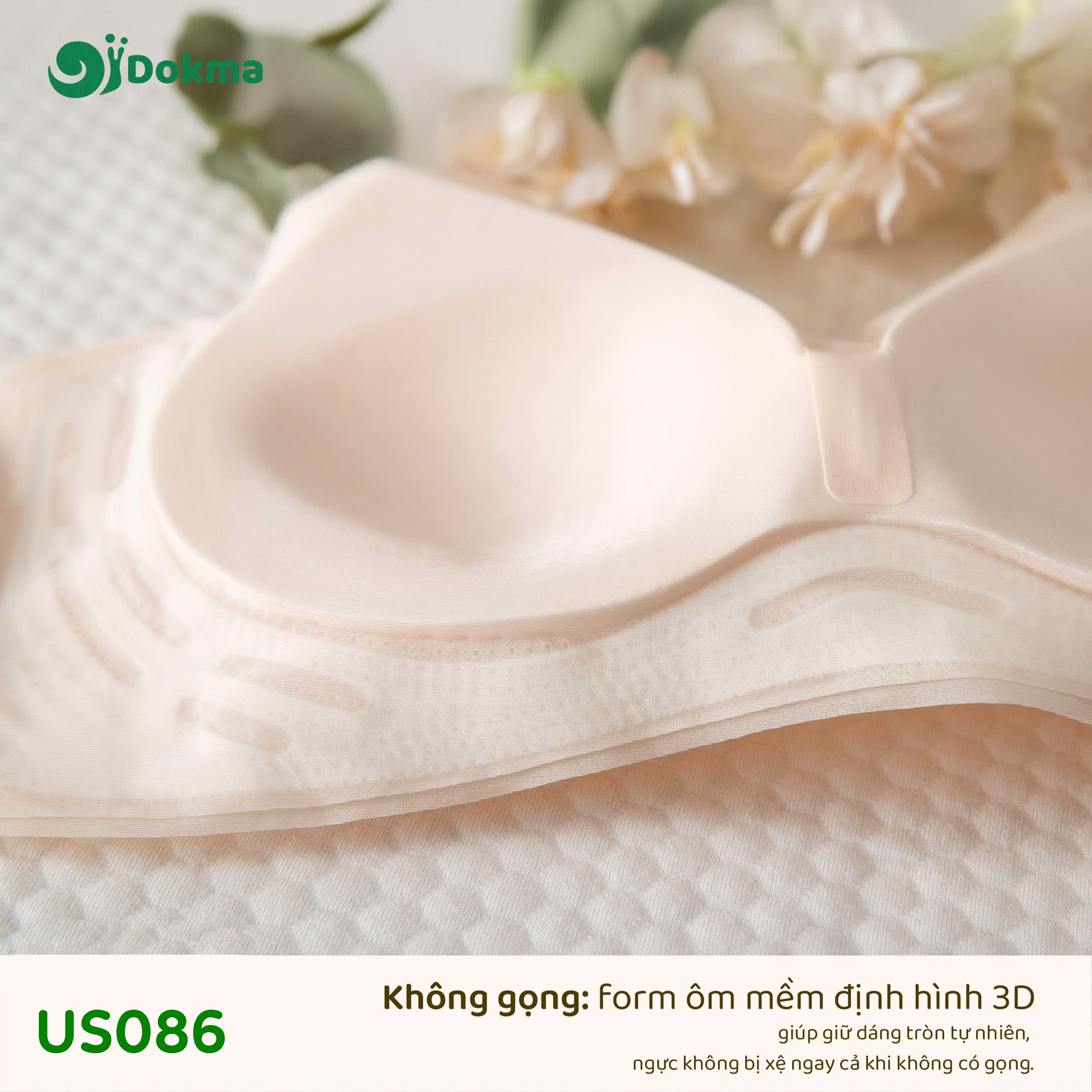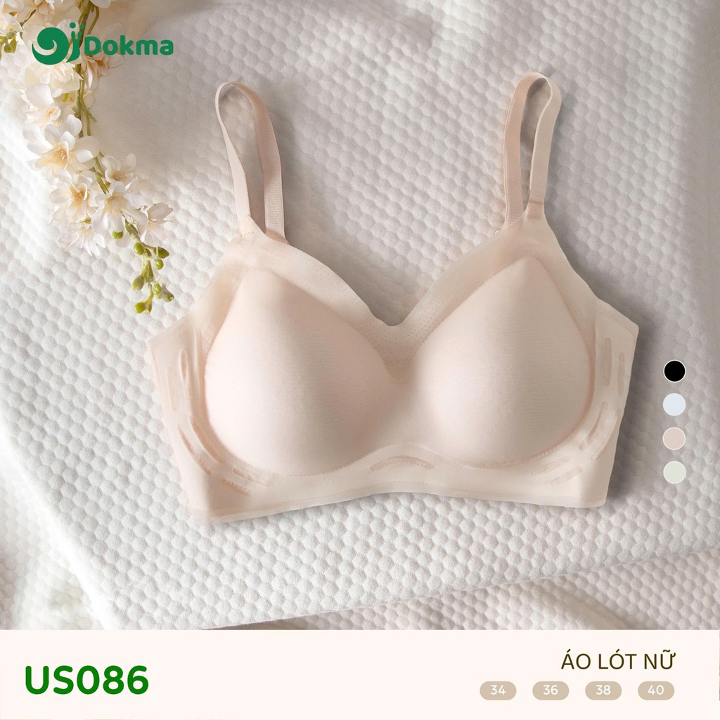 Áo lót nữ Dokma US086 là mẫu áo ngực không gọng, được thiết kế để mang lại sự thoải mái tối đa với chất liệu vải dệt kim mềm mại, thoáng khí. Sản phẩm hướng tới trải nghiệm nhẹ nhàng, hạn chế nhăn và thấm hút mồ hôi tốt.
