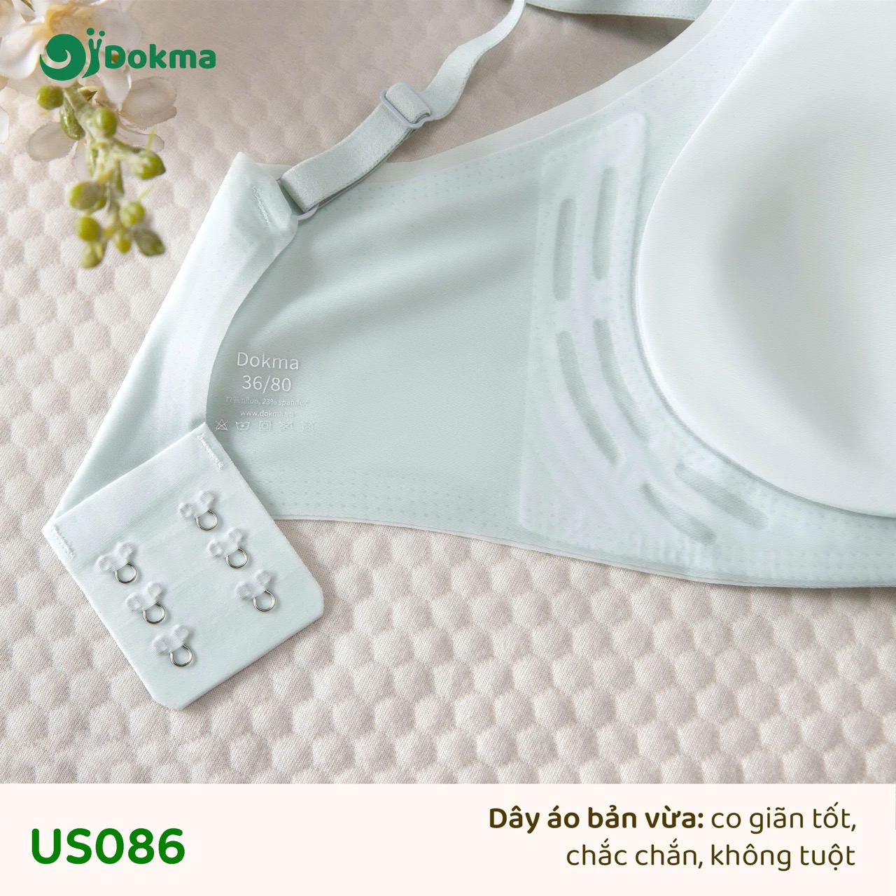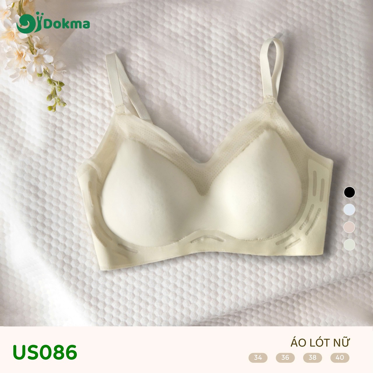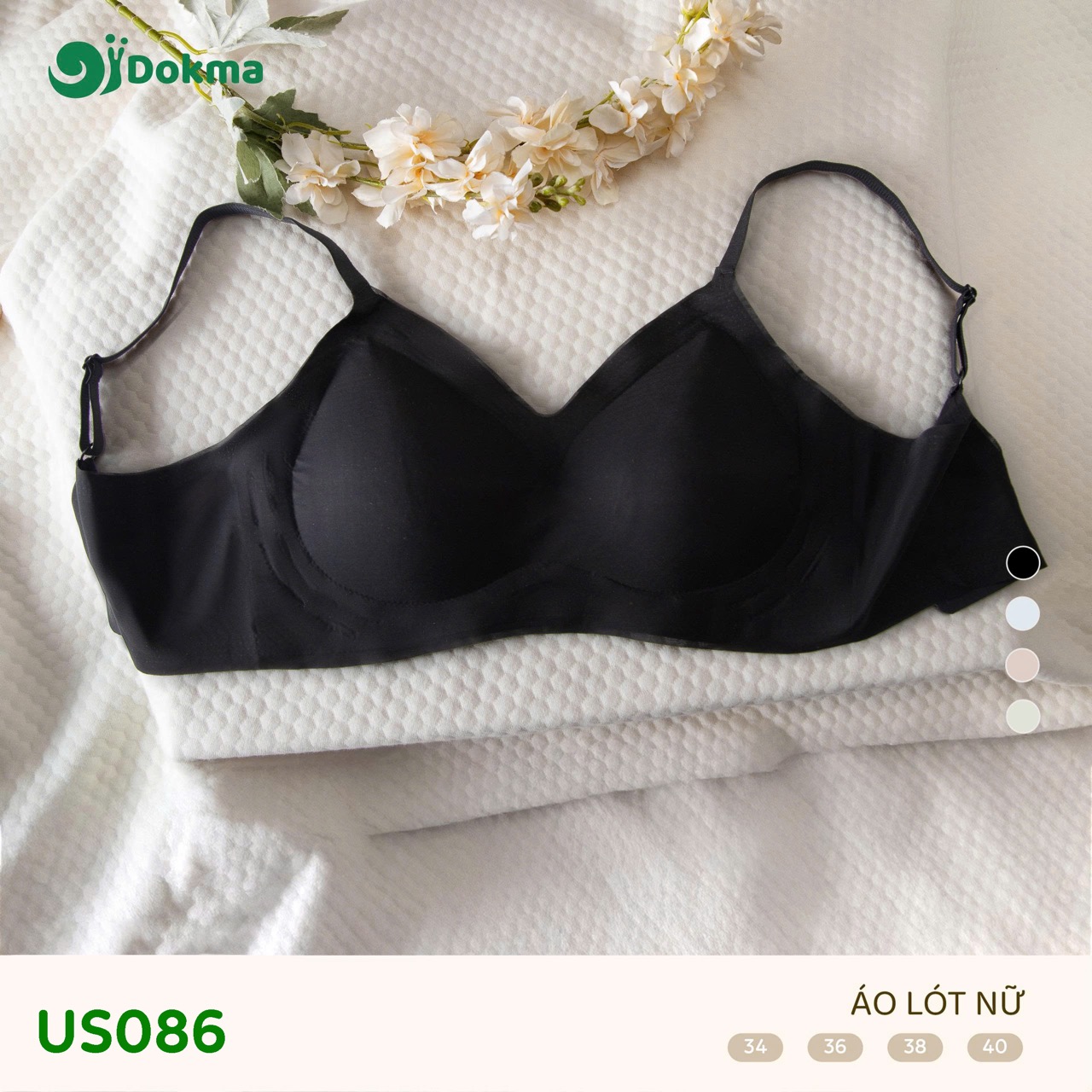 Áo lót nữ Dokma US086 là mẫu áo ngực không gọng, được thiết kế để mang lại sự thoải mái tối đa với chất liệu vải dệt kim mềm mại, thoáng khí. Sản phẩm hướng tới trải nghiệm nhẹ nhàng, hạn chế nhăn và thấm hút mồ hôi tốt.