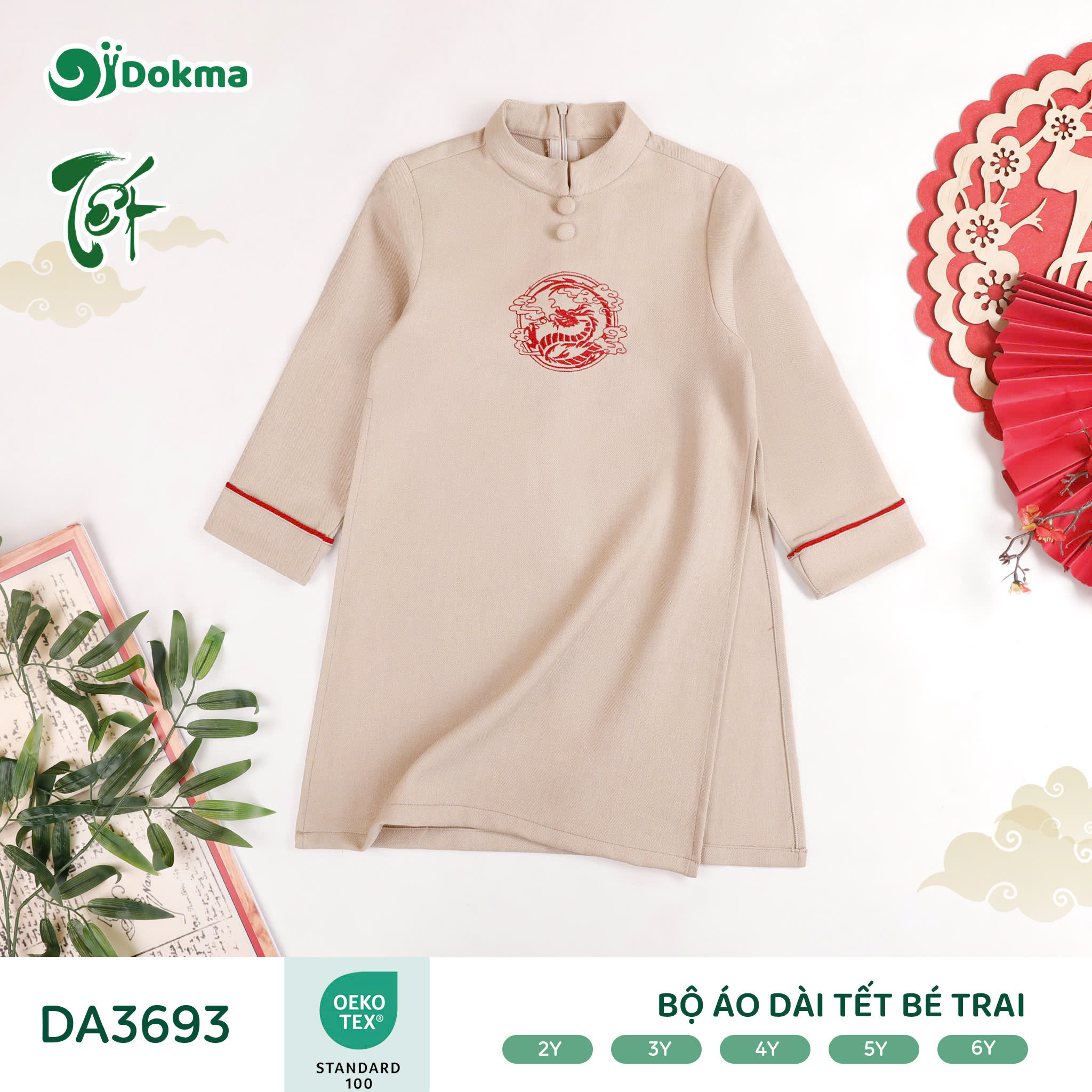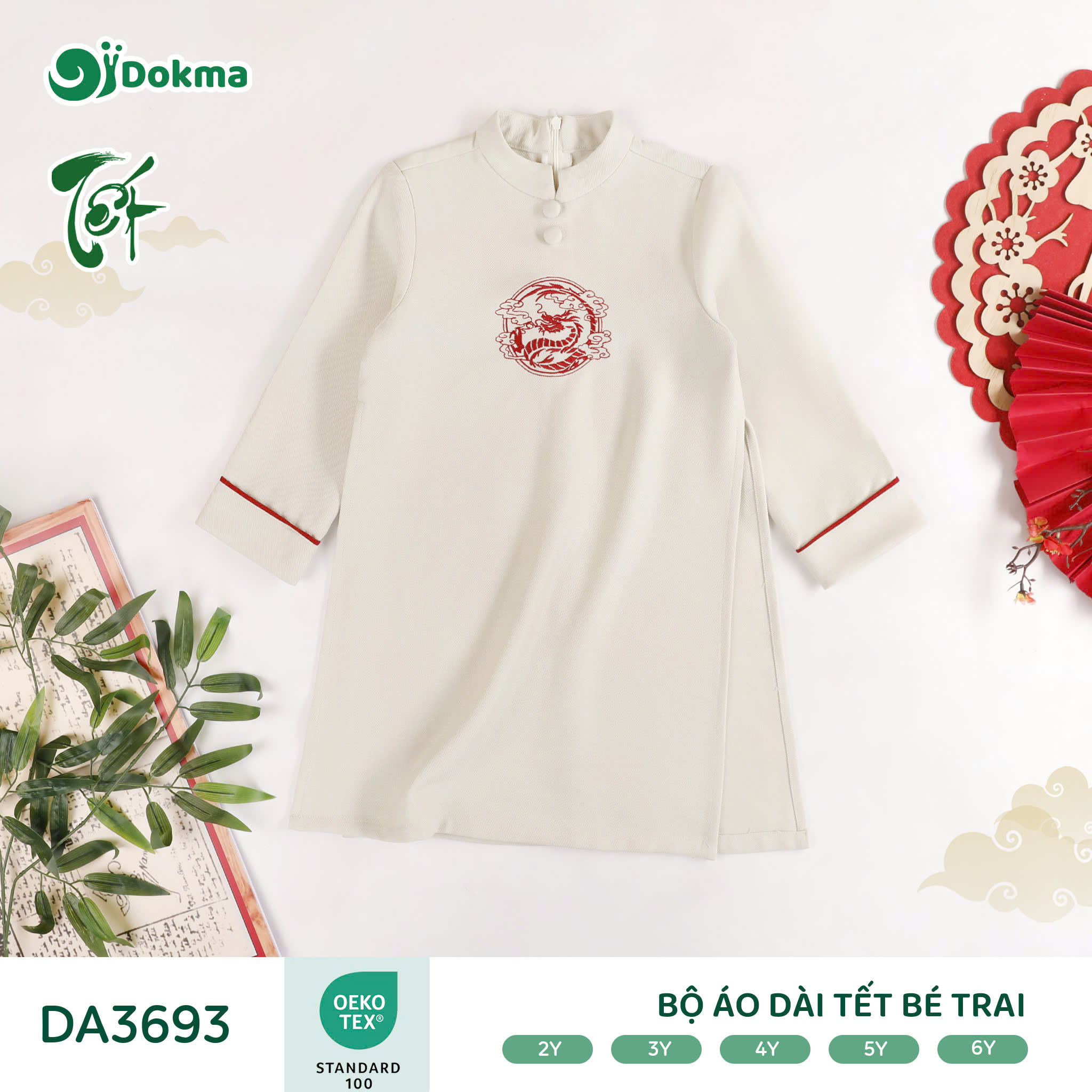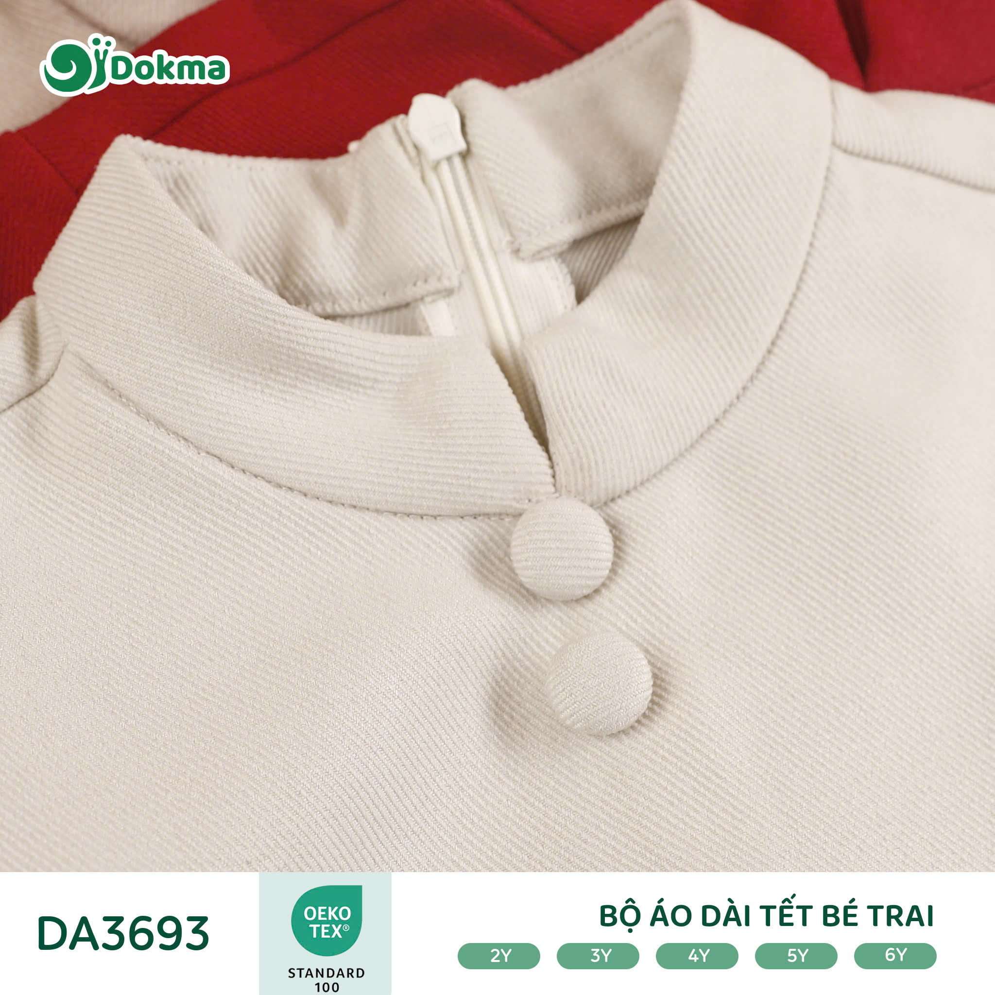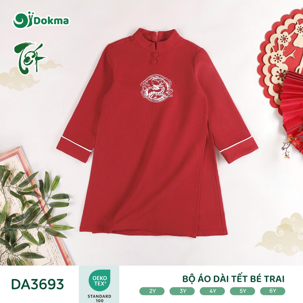 Bộ áo dài Tết bé trai Dokma DA3693 được làm từ chất liệu vải mềm mại, thoáng khí, bề mặt vải có độ thoáng tự nhiên, giúp bé luôn dễ chịu khi mặc trong những ngày Tết hoặc khi vận động nhiều. Chất vải có độ dày vừa phải, đứng form nhưng vẫn co giãn nhẹ, phù hợp cho bé mặc đi chúc Tết, đi chơi hay sinh hoạt hằng ngày.