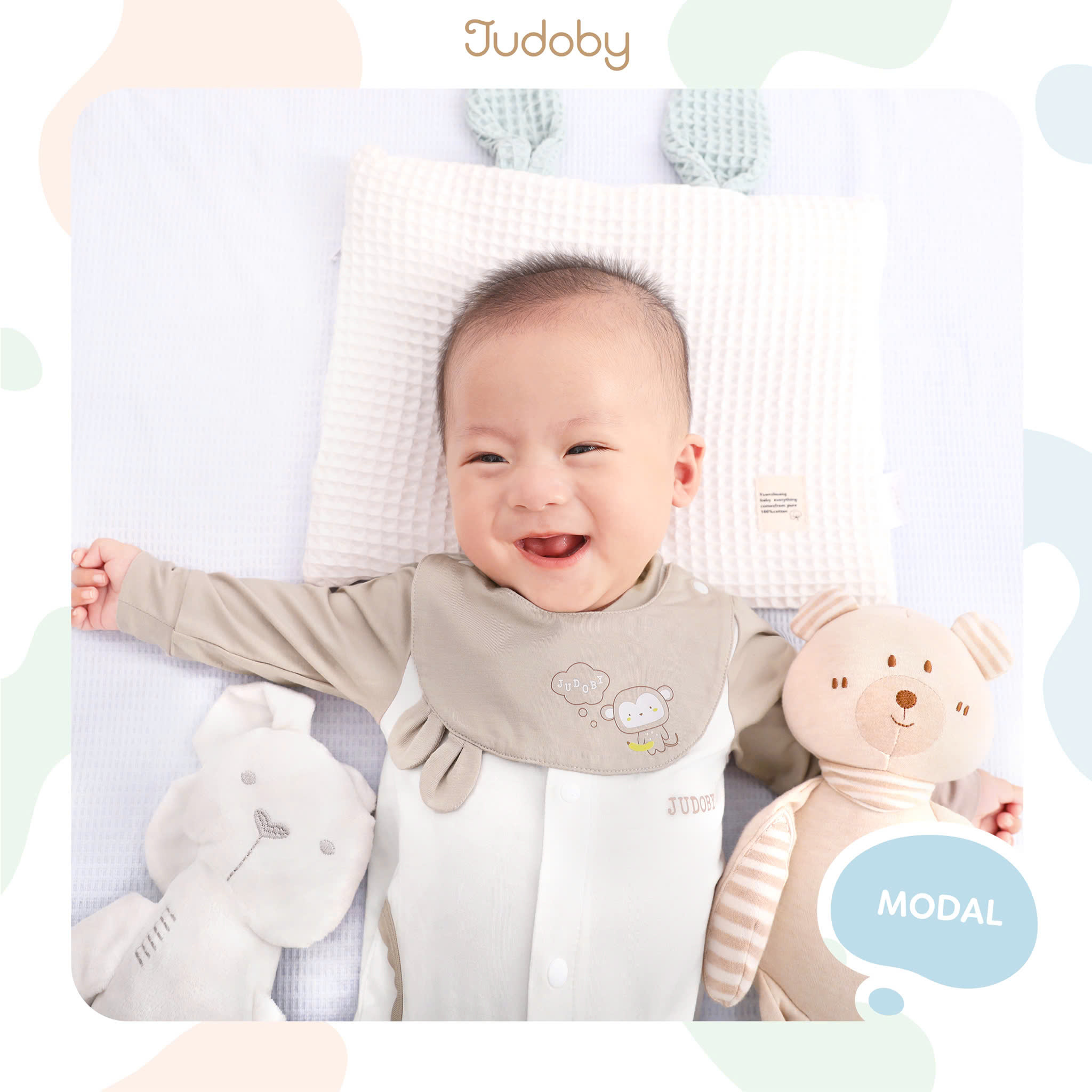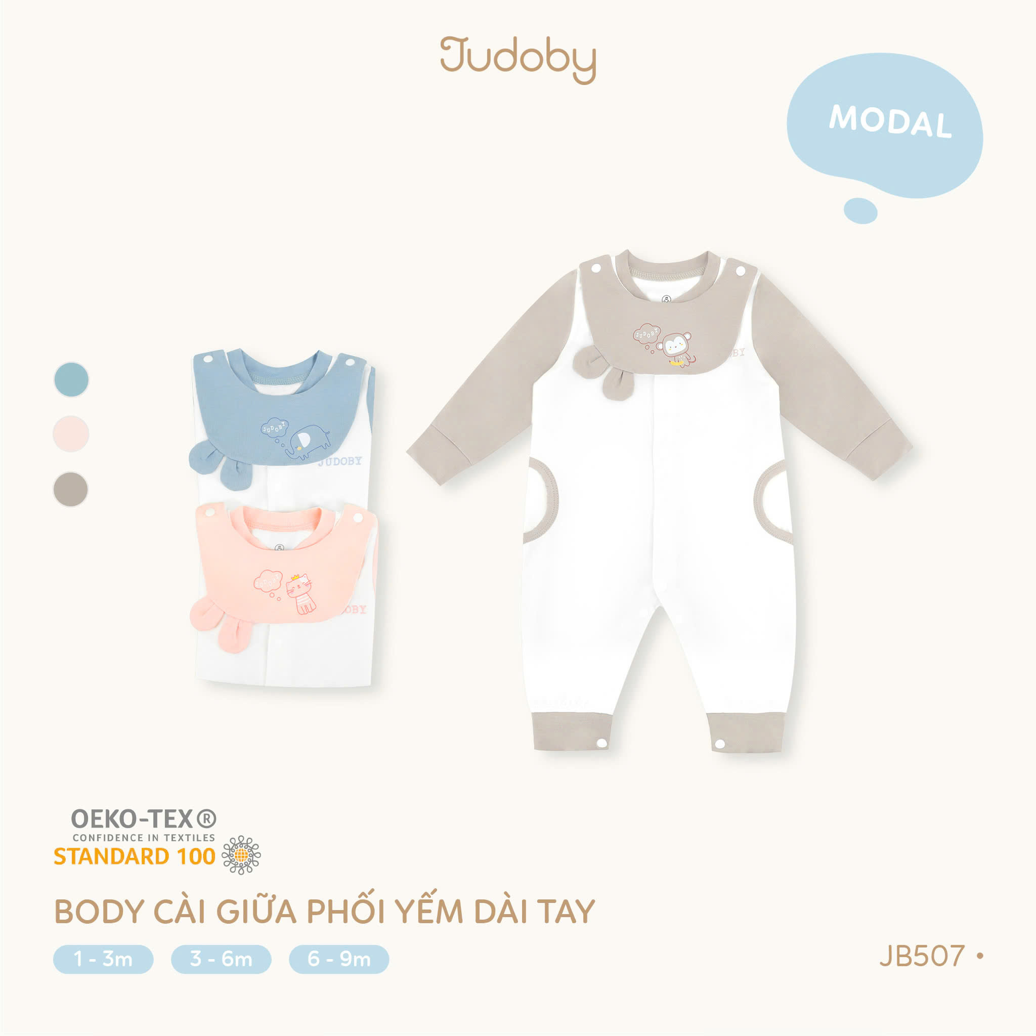 Chất vải Modal cao cấp siêu mềm mại, co giãn tốt, thấm hút và thoáng khí tuyệt vời – lý tưởng cho da nhạy cảm của bé.