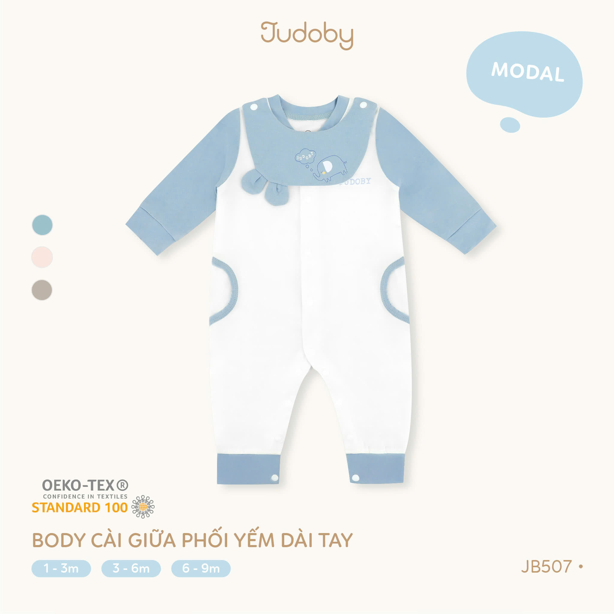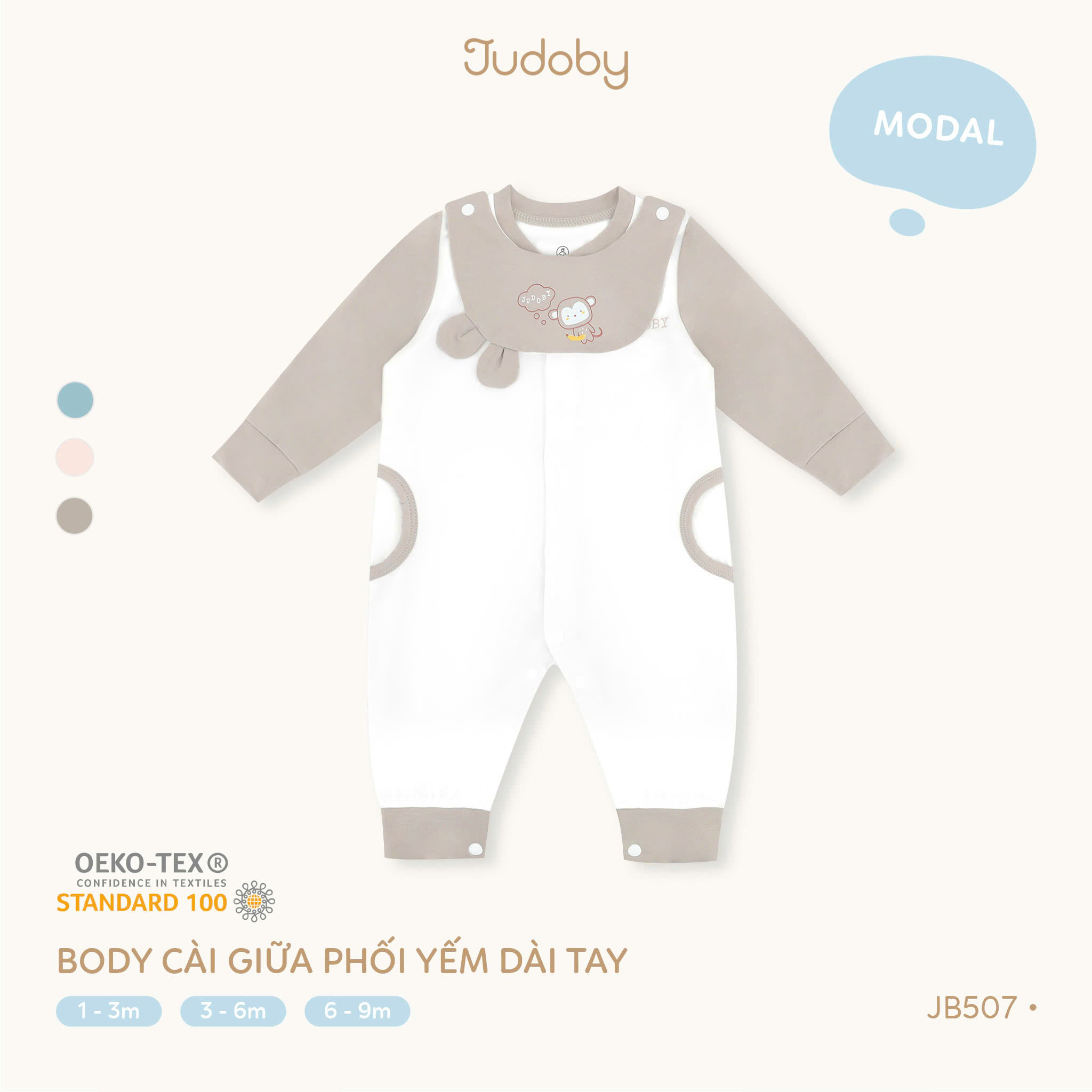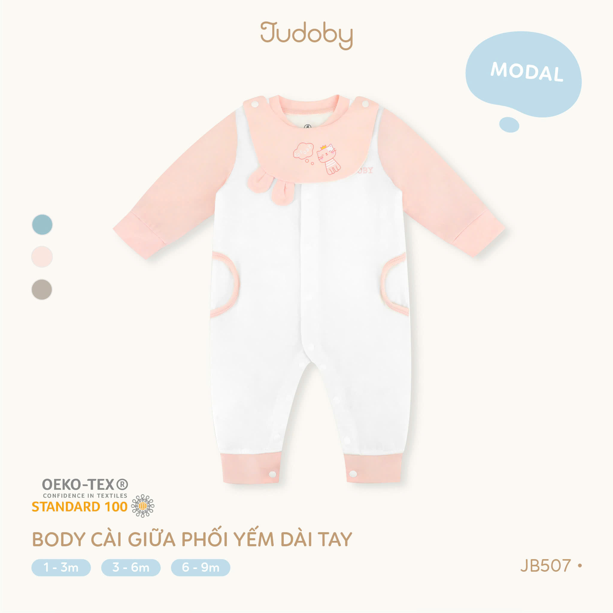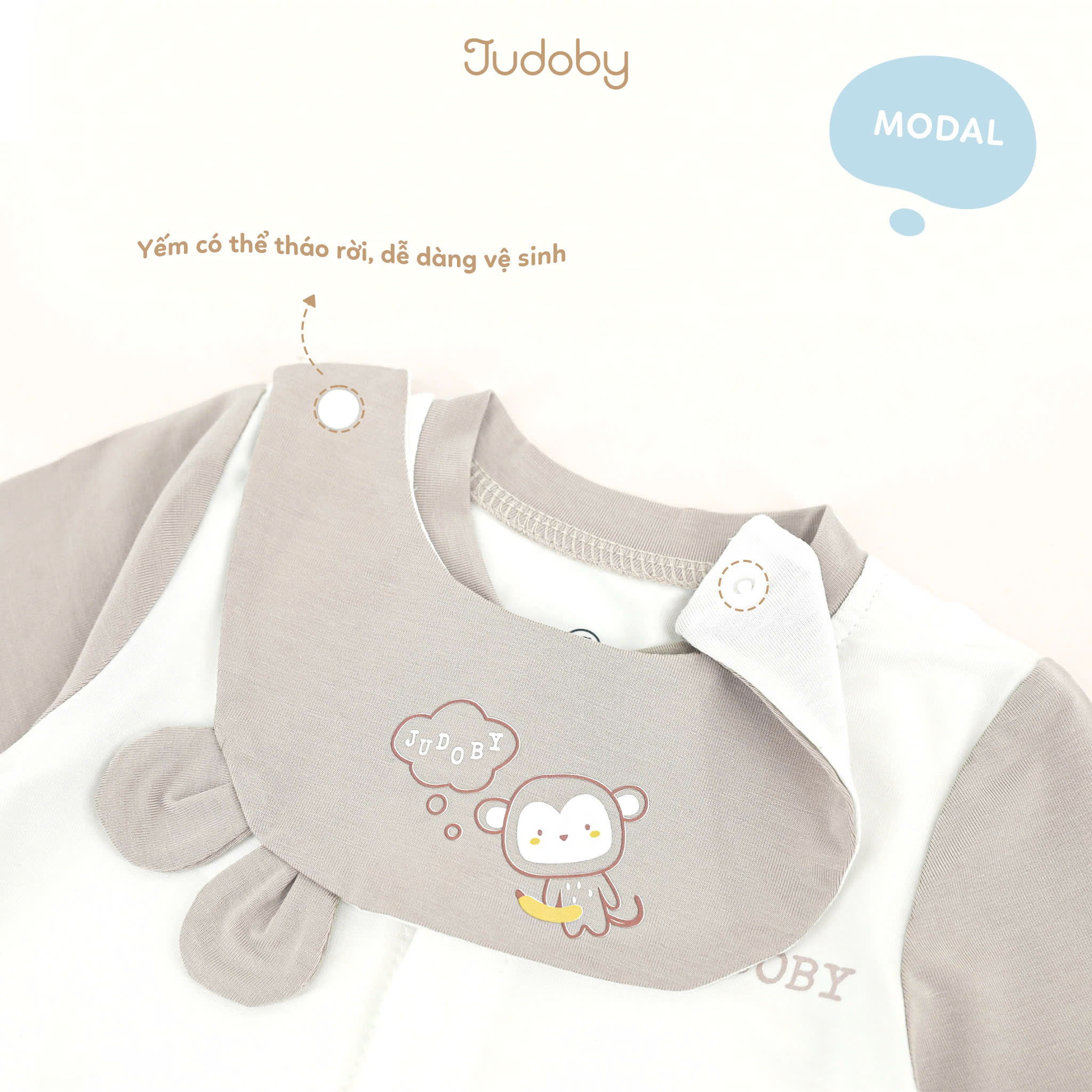Body cài giữa phối yếm dài tay Judoby là thiết kế tiện lợi 2 trong 1, vừa giữ ấm cho bé, vừa phối yếm xinh xắn như một bộ đồ đi chơi dễ thương. Cúc cài giữa giúp mẹ thay đồ cho bé nhanh chóng mà không làm bé khó chịu.