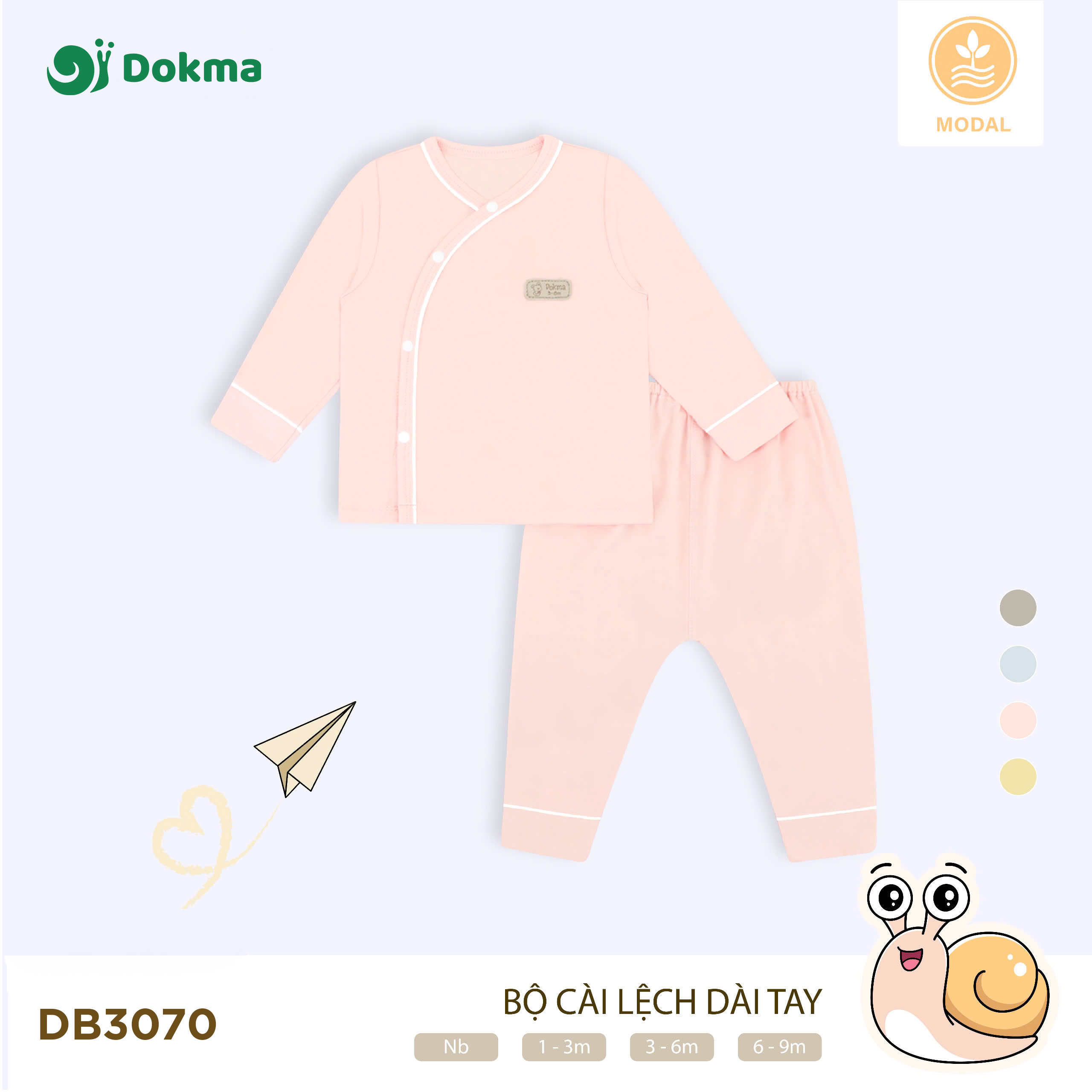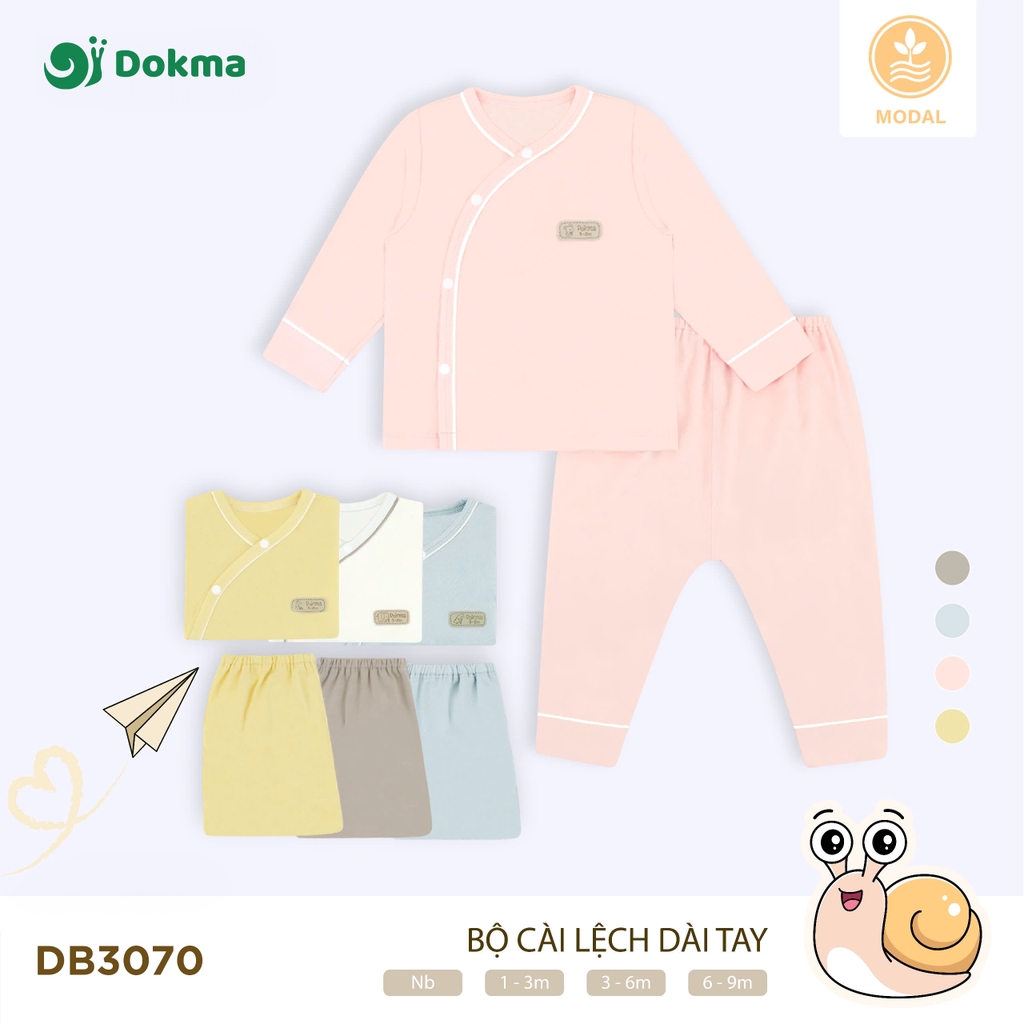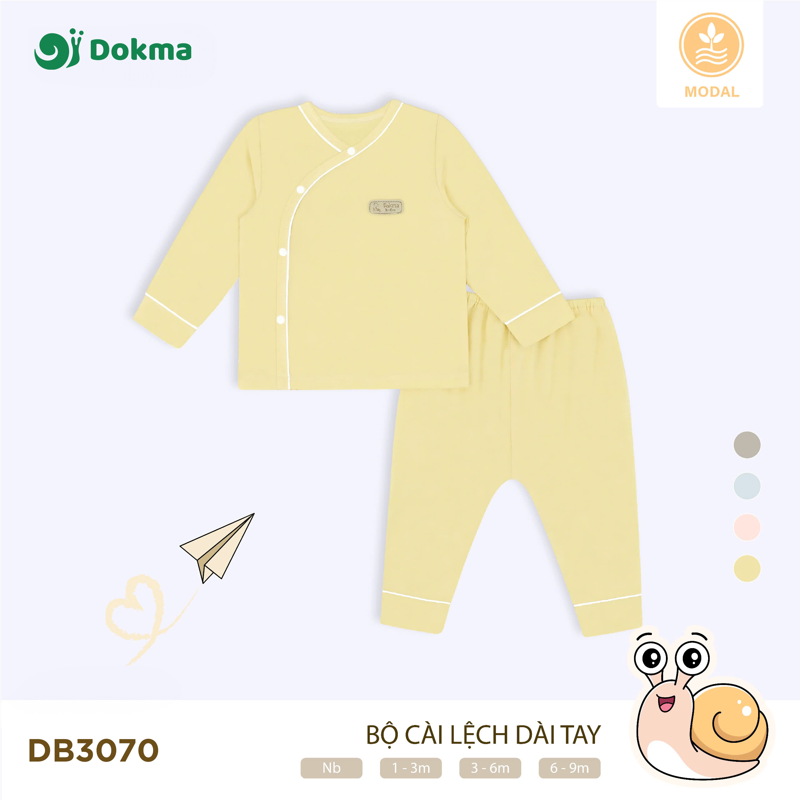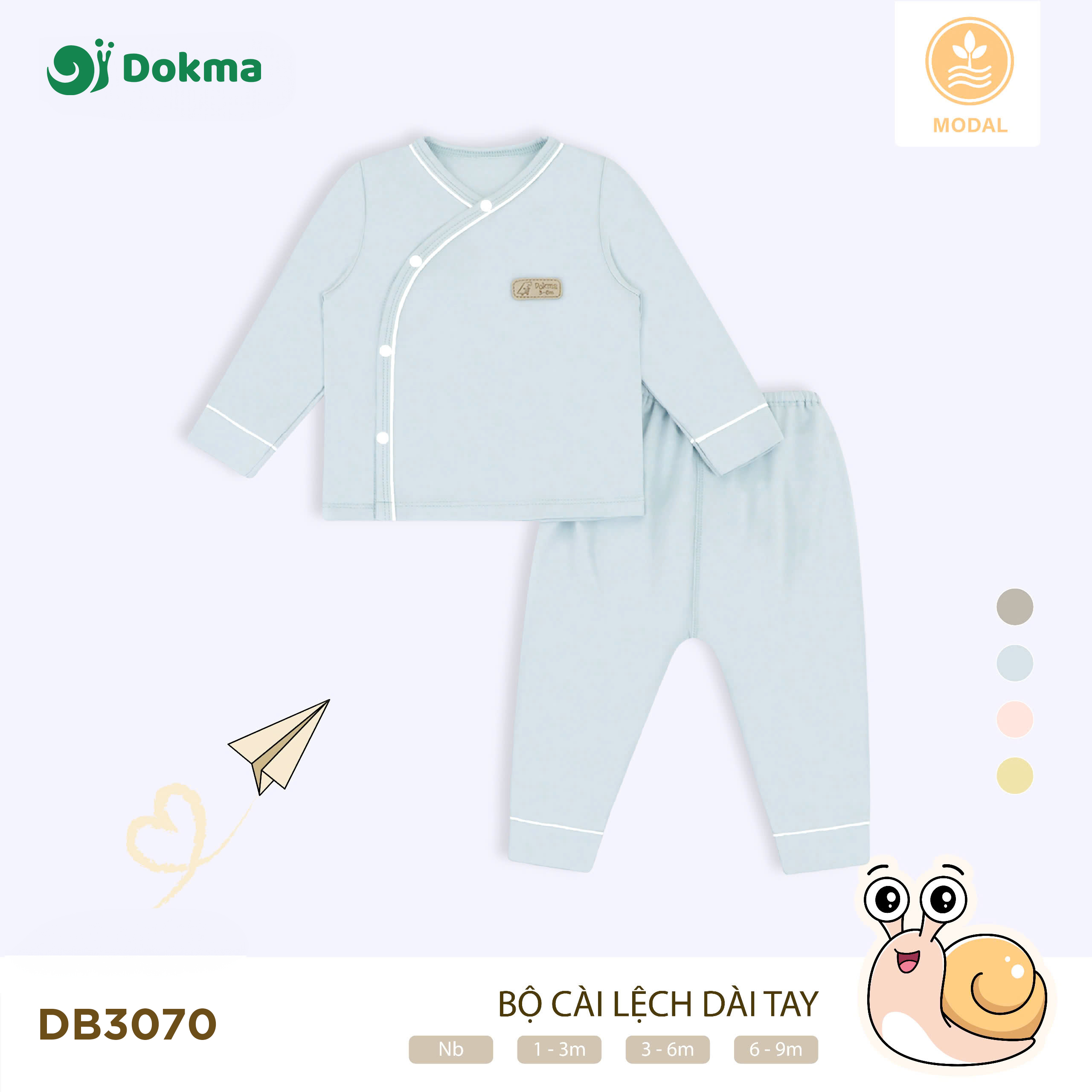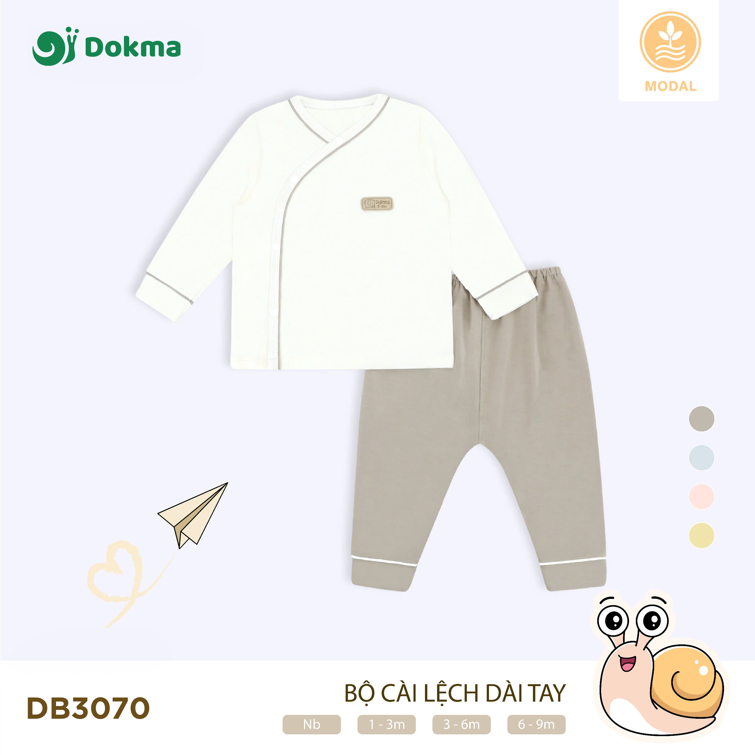 Bộ cài lệch dài tay Dokma DB3070 được làm từ chất liệu Modal cao cấp, mềm mại, thoáng khí, thấm hút mồ hôi tốt, mang lại sự dễ chịu tuyệt đối cho làn da nhạy cảm của bé sơ sinh. Thiết kế áo cài lệch tiện lợi, dễ mặc – dễ tháo, kết hợp quần dài lưng thun co giãn, cho bé thoải mái vận động cả ngày. Gam màu trơn nhã nhặn, viền trắng tinh tế, phù hợp với cả bé trai và bé gái.