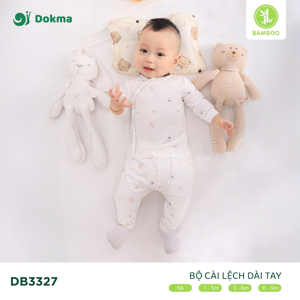 Bộ cài lệch dài tay Dokma DB3327 được làm từ sợi Bamboo thiên nhiên, mềm mại, thoáng mát, thấm hút mồ hôi vượt trội, giúp bé luôn dễ chịu trong mọi hoạt động. Thiết kế cài lệch tiện lợi, hạn chế cọ xát vào rốn bé, đồng thời giữ ấm cơ thể và giúp ba mẹ dễ dàng thay mặc.