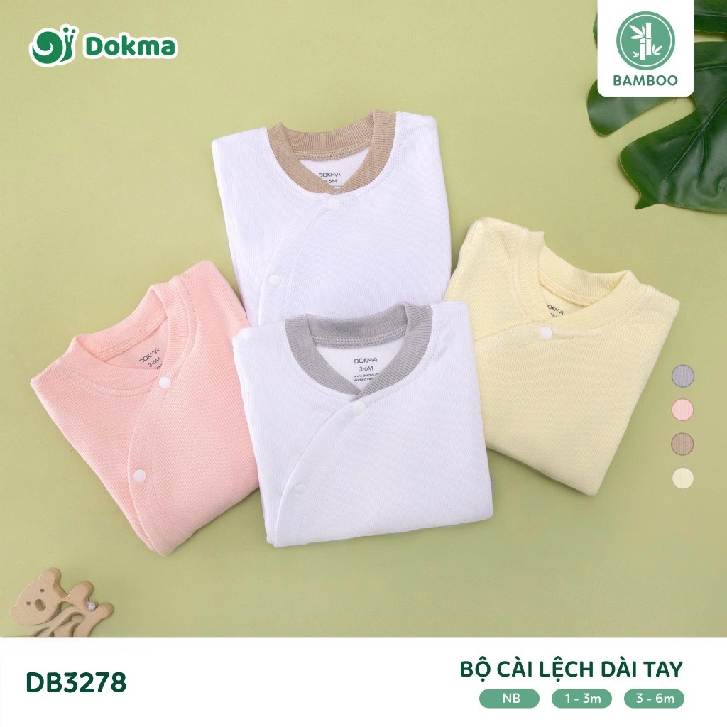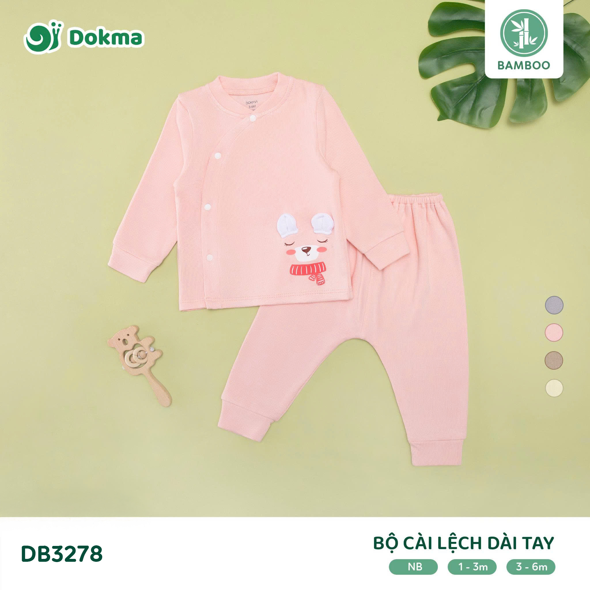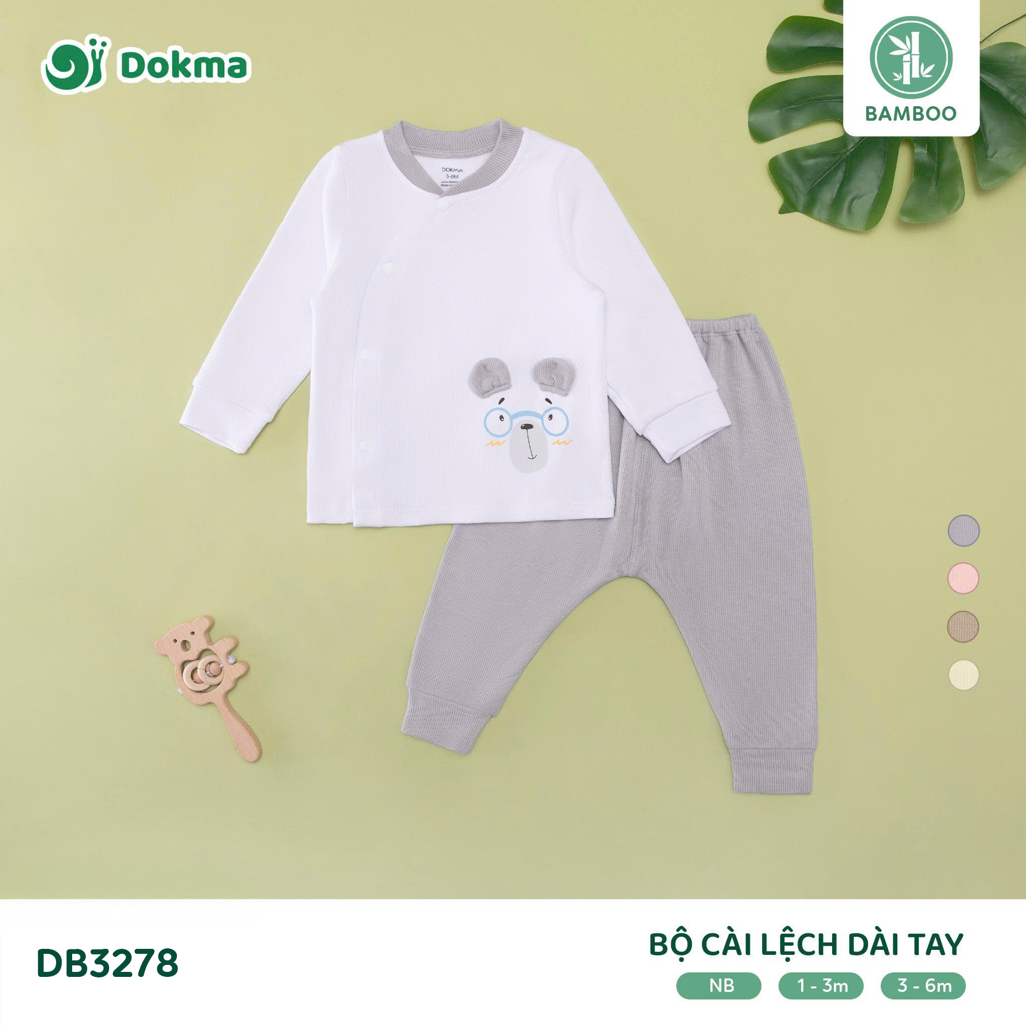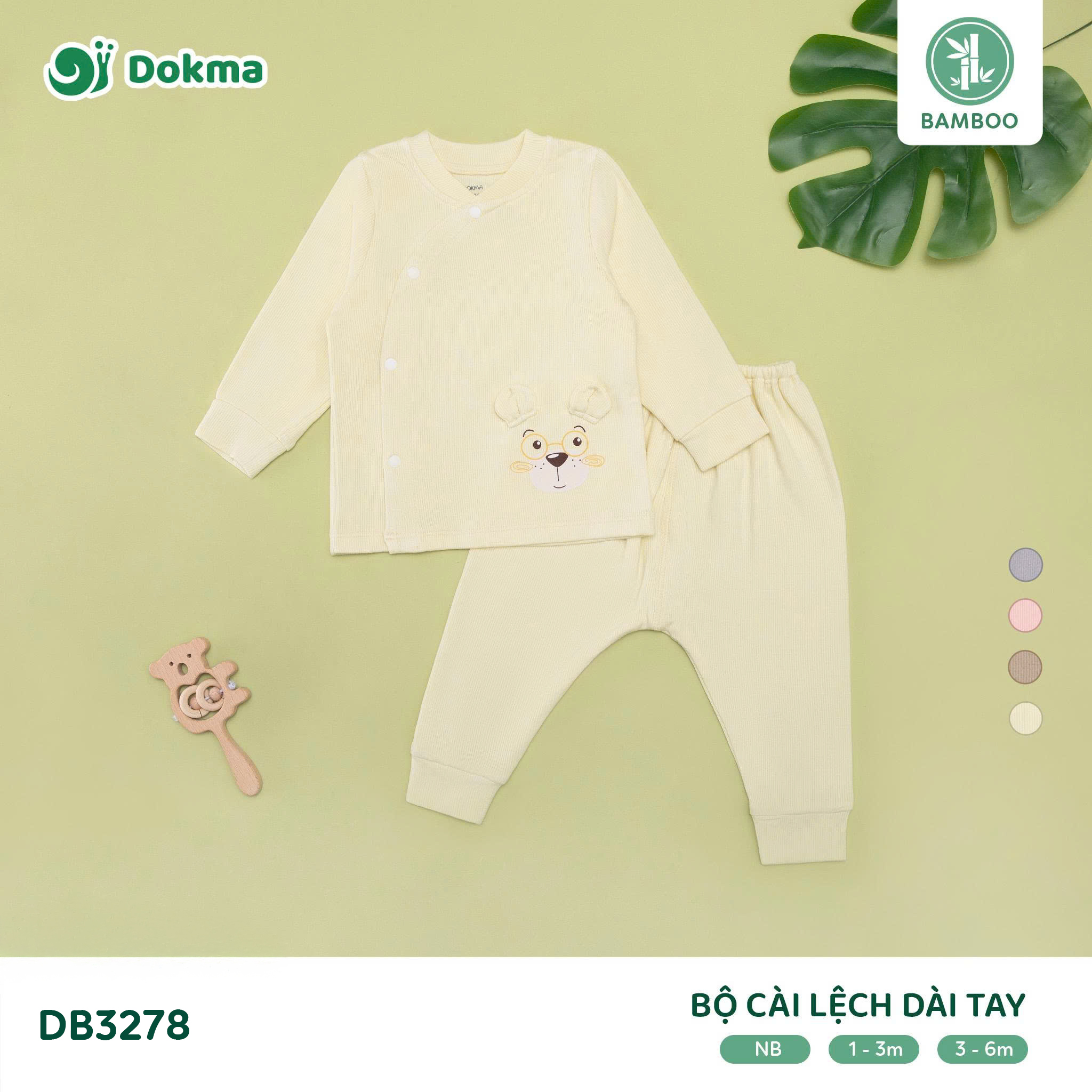 Bộ cài lệch dài tay Dokma DB3278 được làm từ chất liệu Bamboo, mềm mịn tự nhiên, thoáng khí và an toàn cho làn da nhạy cảm của bé sơ sinh. Sợi bamboo có khả năng thấm hút tốt, giúp bé luôn khô thoáng, dễ chịu khi mặc cả ngày.