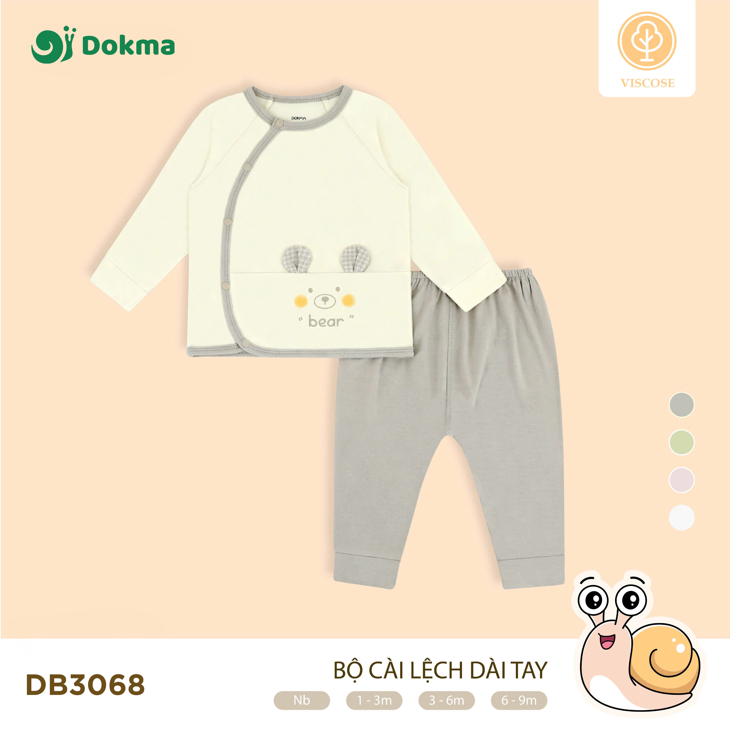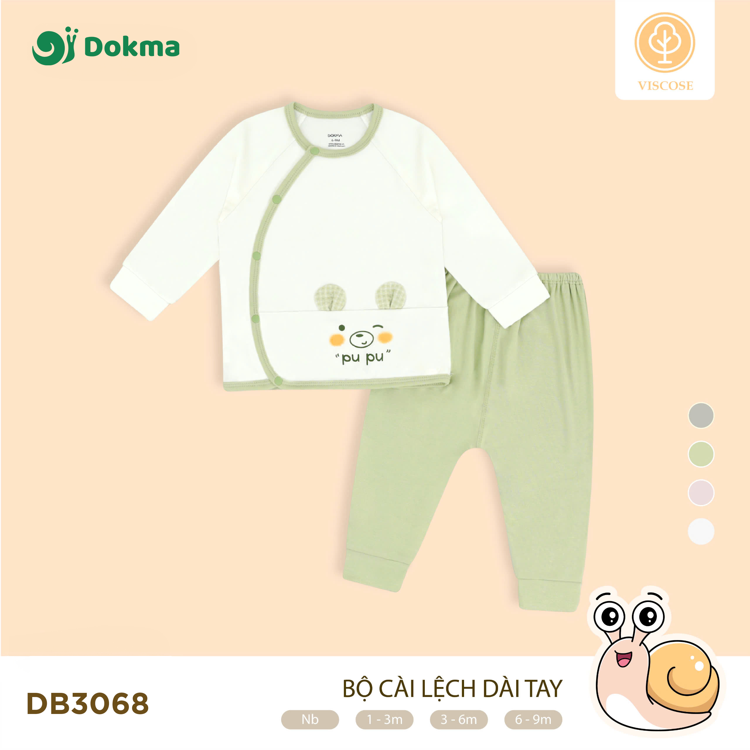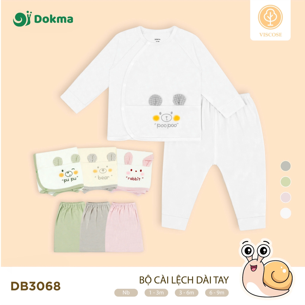 Bộ cài lệch dài tay Dokma DB3068 được làm từ chất liệu Viscose cao cấp, mềm mịn, thoáng mát, an toàn tuyệt đối cho làn da nhạy cảm của bé. Thiết kế áo cài lệch dễ mặc – dễ tháo, kết hợp quần dài lưng thun co giãn thoải mái. Họa tiết in hình thú cưng pu pu, bear, rabbit ngộ nghĩnh, đáng yêu, mang lại sự dễ thương cho bé mỗi ngày.