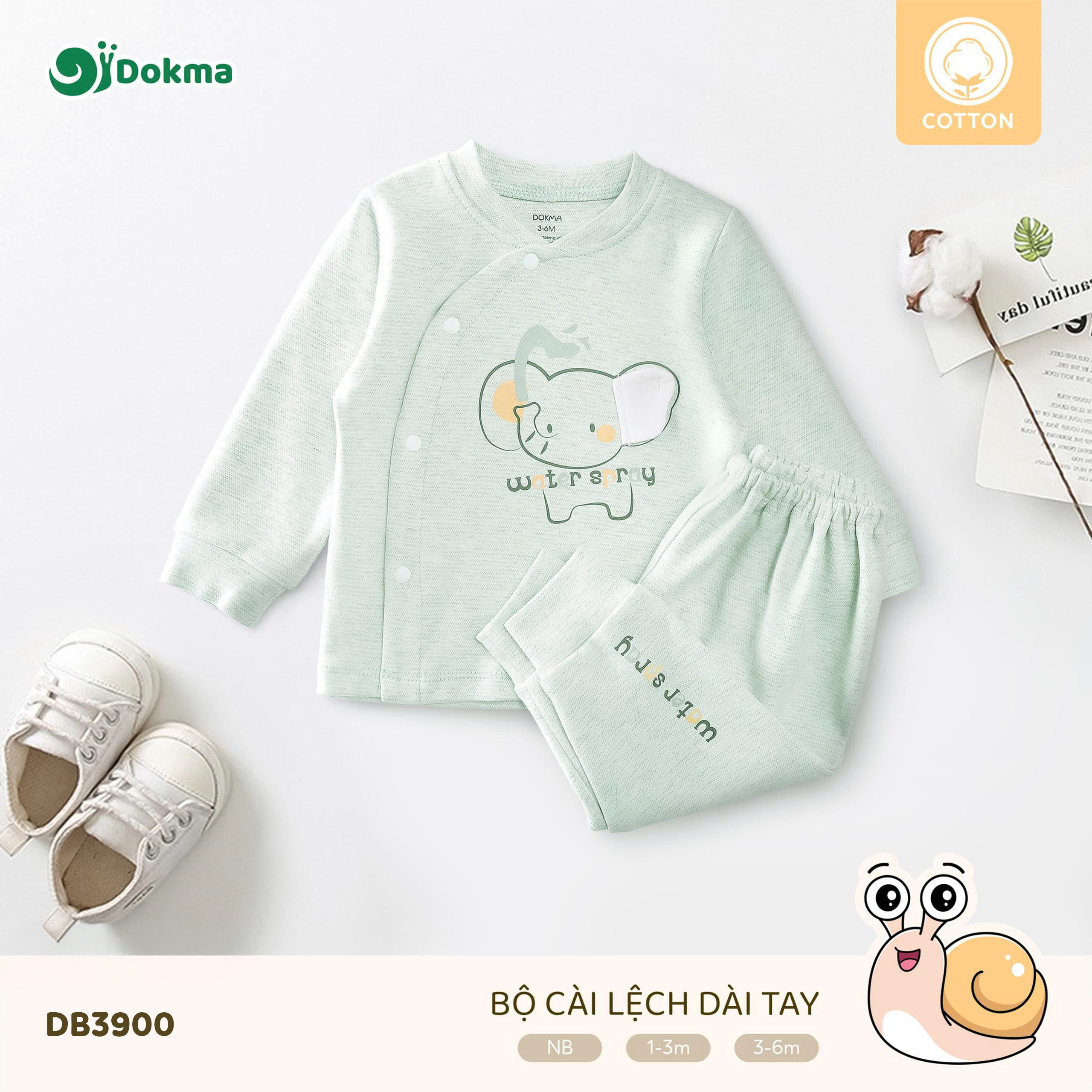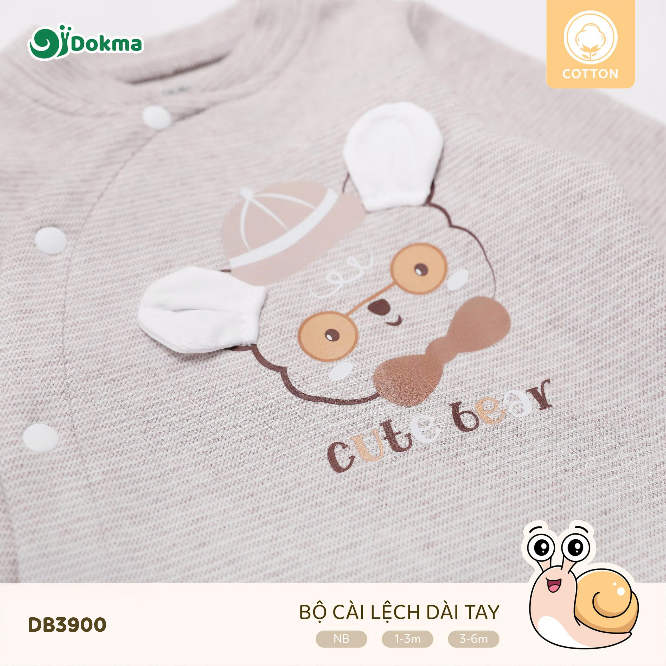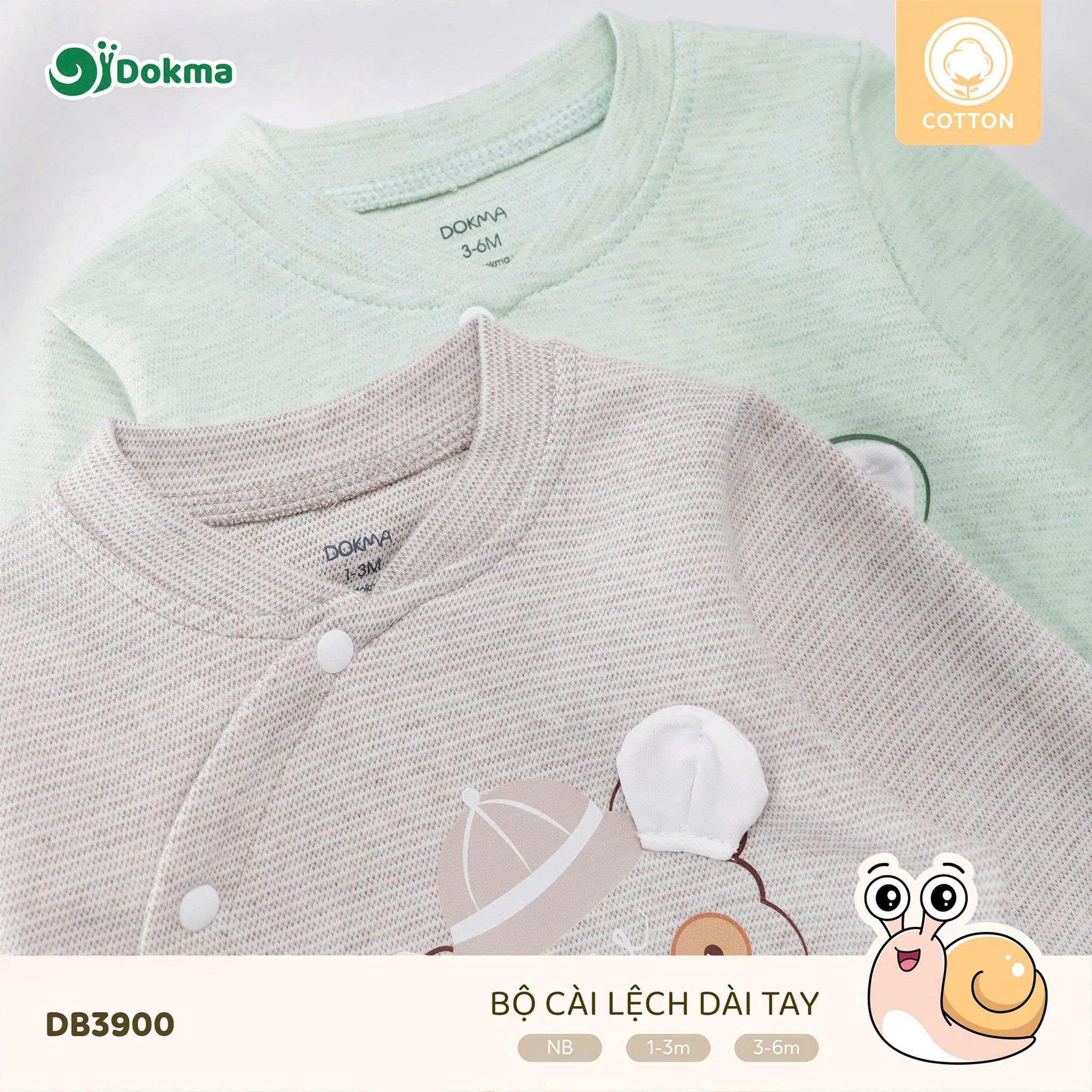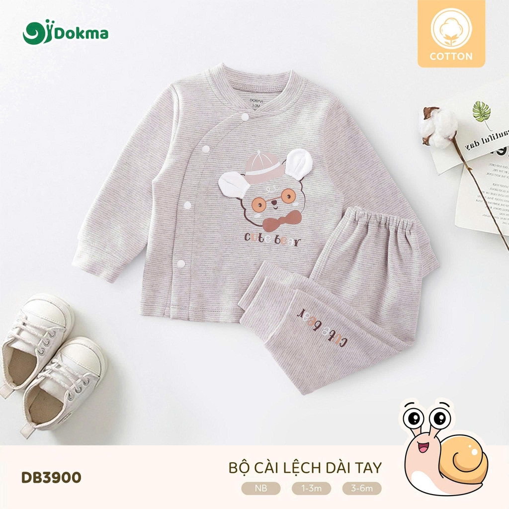 Bộ body liền thân cài lệch dài tay bé sơ sinh Dokma DB3900 được làm từ chất liệu cotton mềm mại, thoáng khí, an toàn tuyệt đối cho làn da nhạy cảm của bé. Bề mặt vải có các vân sọc nhỏ, mang lại cảm giác dễ chịu tối đa khi bé mặc trong mọi điều kiện thời tiết. Chất vải có độ dày vừa phải, co giãn tốt, thấm hút mồ hôi hiệu quả, giúp bé luôn khô thoáng và thoải mái khi ngủ hay vận động nhẹ nhàng.