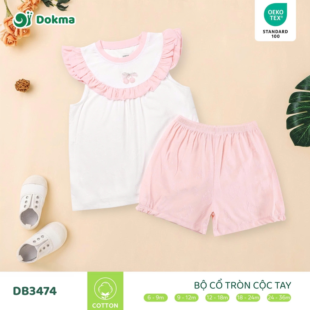 Bộ cổ tròn cộc tay Dokma DB3474 mang phong cách nhẹ nhàng, nữ tính với thiết kế phối màu tinh tế cùng chi tiết bèo cổ duyên dáng, giúp bé luôn xinh xắn và thoải mái trong những ngày hè.