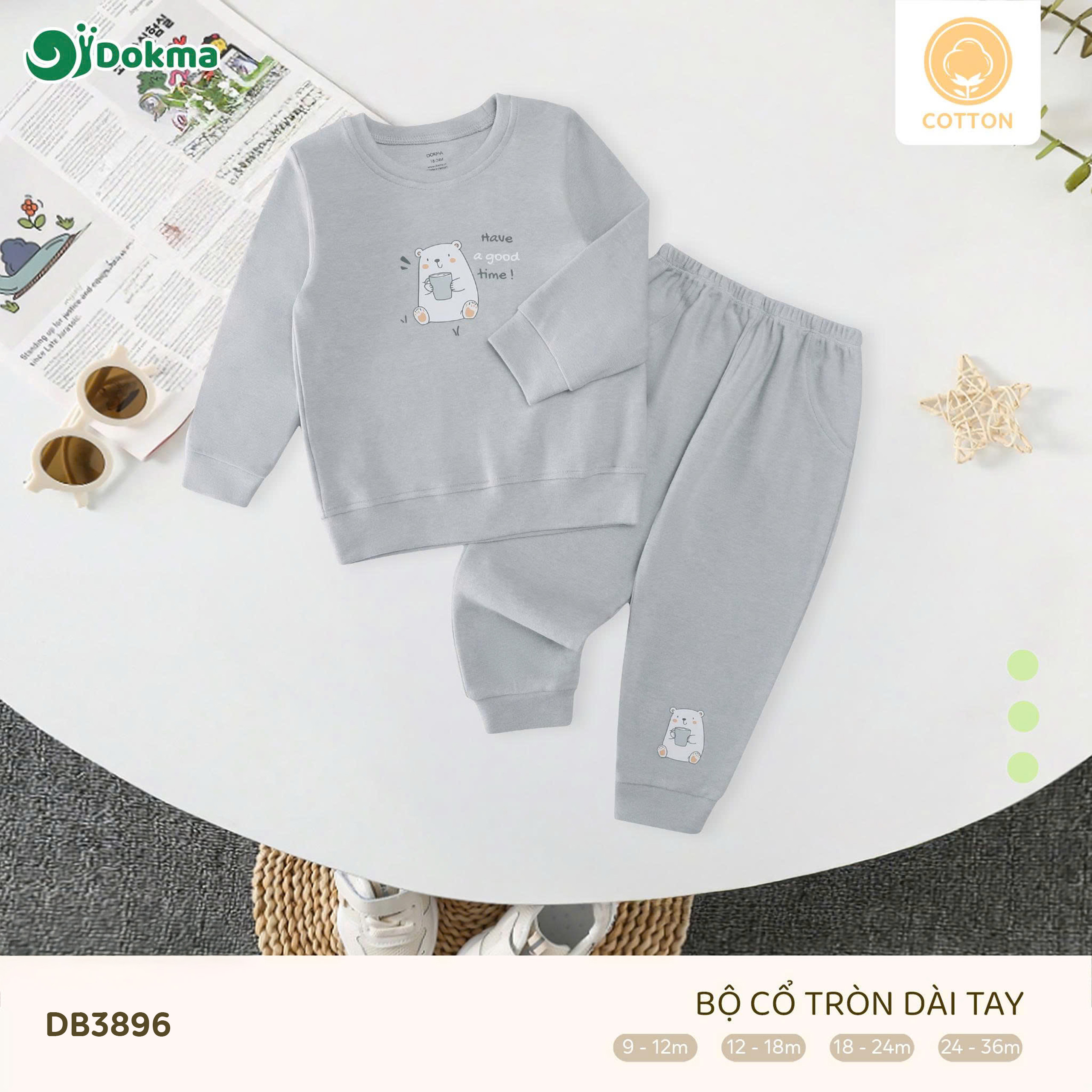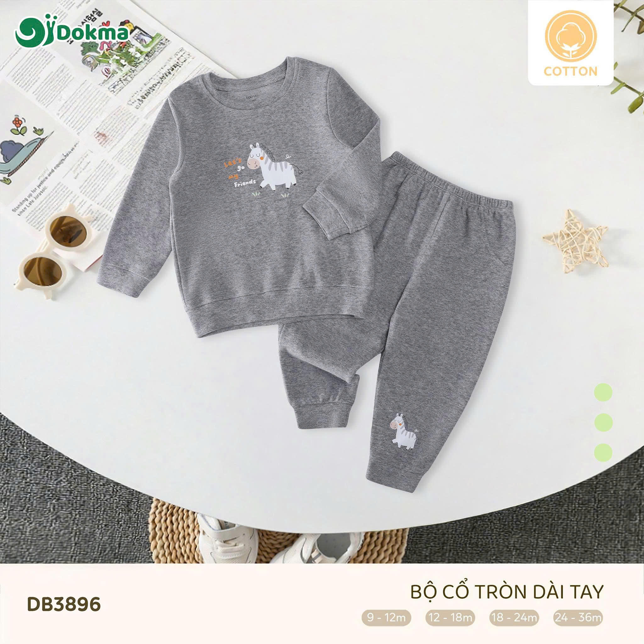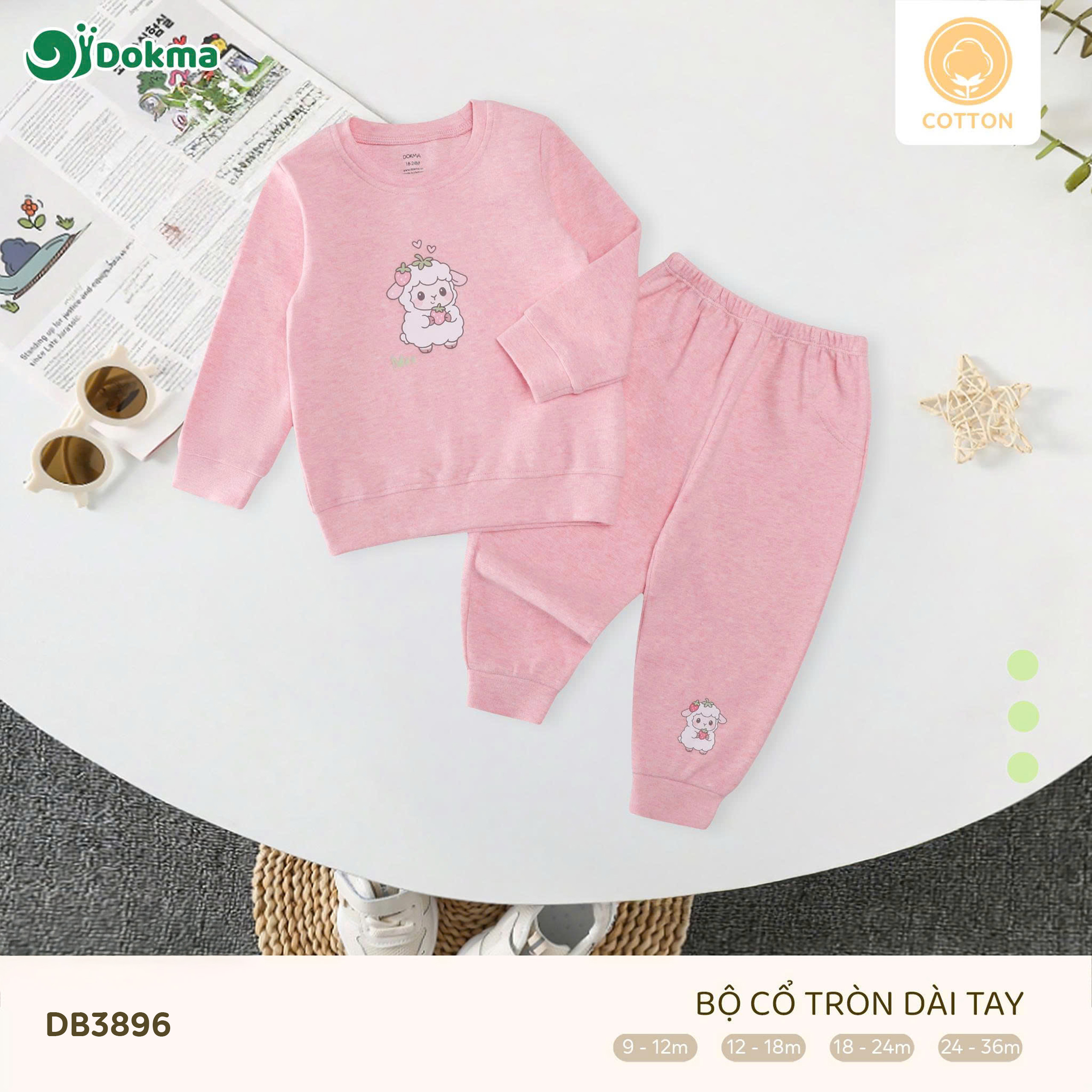 Bộ quần áo cổ tròn dài tay Dokma DB3896 được làm từ chất liệu cotton mềm mại, thoáng khí, an toàn cho làn da nhạy cảm của bé. Bề mặt vải mịn màng, mang lại cảm giác dễ chịu tối đa khi bé mặc, phù hợp cho thời tiết se lạnh hoặc nằm phòng điều hòa. Chất vải có độ dày vừa phải, đứng form nhưng vẫn co giãn nhẹ, thấm hút mồ hôi tốt, phù hợp cho bé mặc đi học, đi chơi hay sinh hoạt hằng ngày.