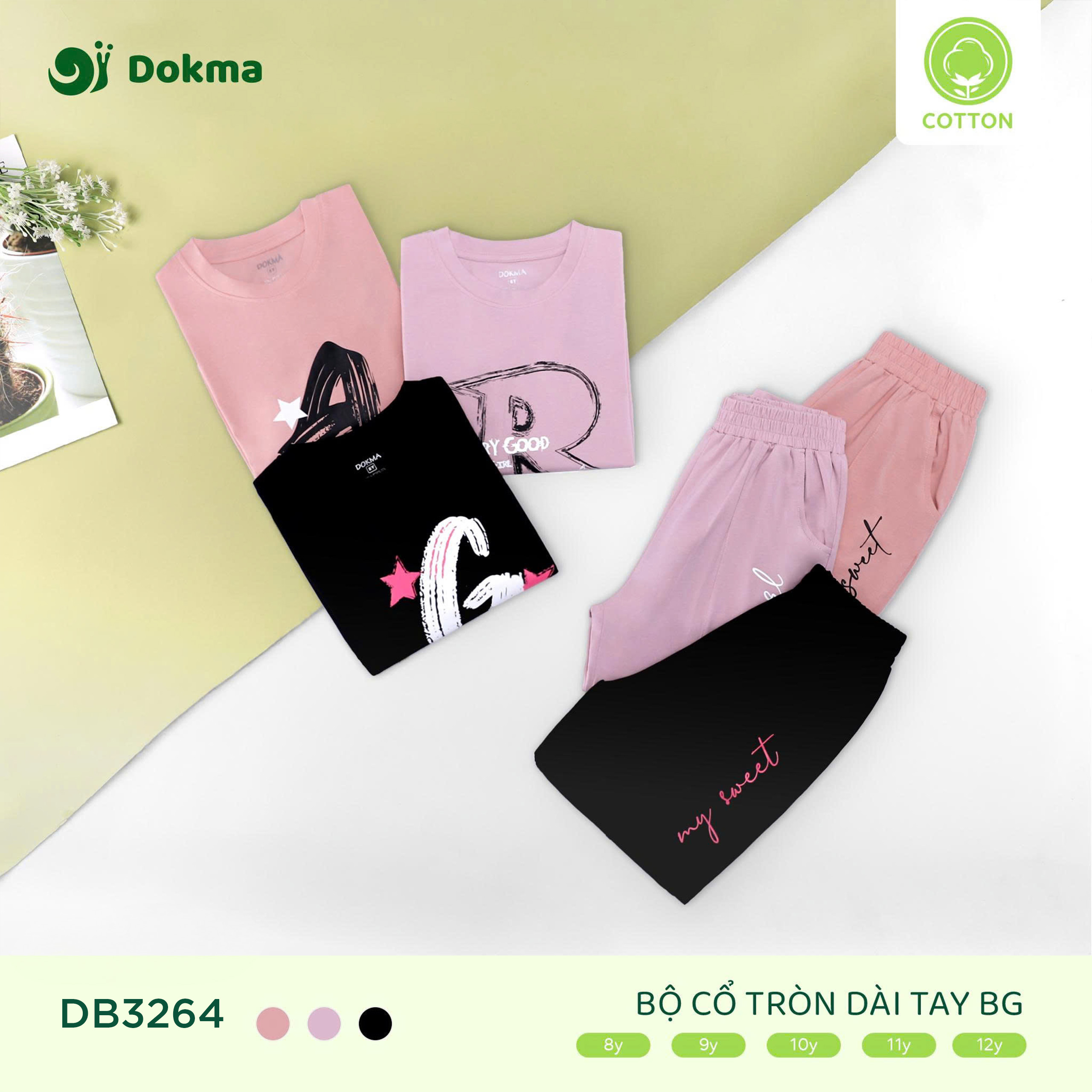 Bộ quần áo dài tay bé gái Dokma DB3264 được thiết kế với kiểu dáng đơn giản nhưng cực kỳ đáng yêu. Áo cổ tròn in chữ cái cách điệu nổi bật cùng chi tiết ngôi sao dễ thương, kết hợp với quần jogger bo gấu cá tính. Chất liệu cotton mềm mại, co giãn thoải mái, an toàn cho da bé, thích hợp cho bé mặc đi học, đi chơi hay vận động hàng ngày.