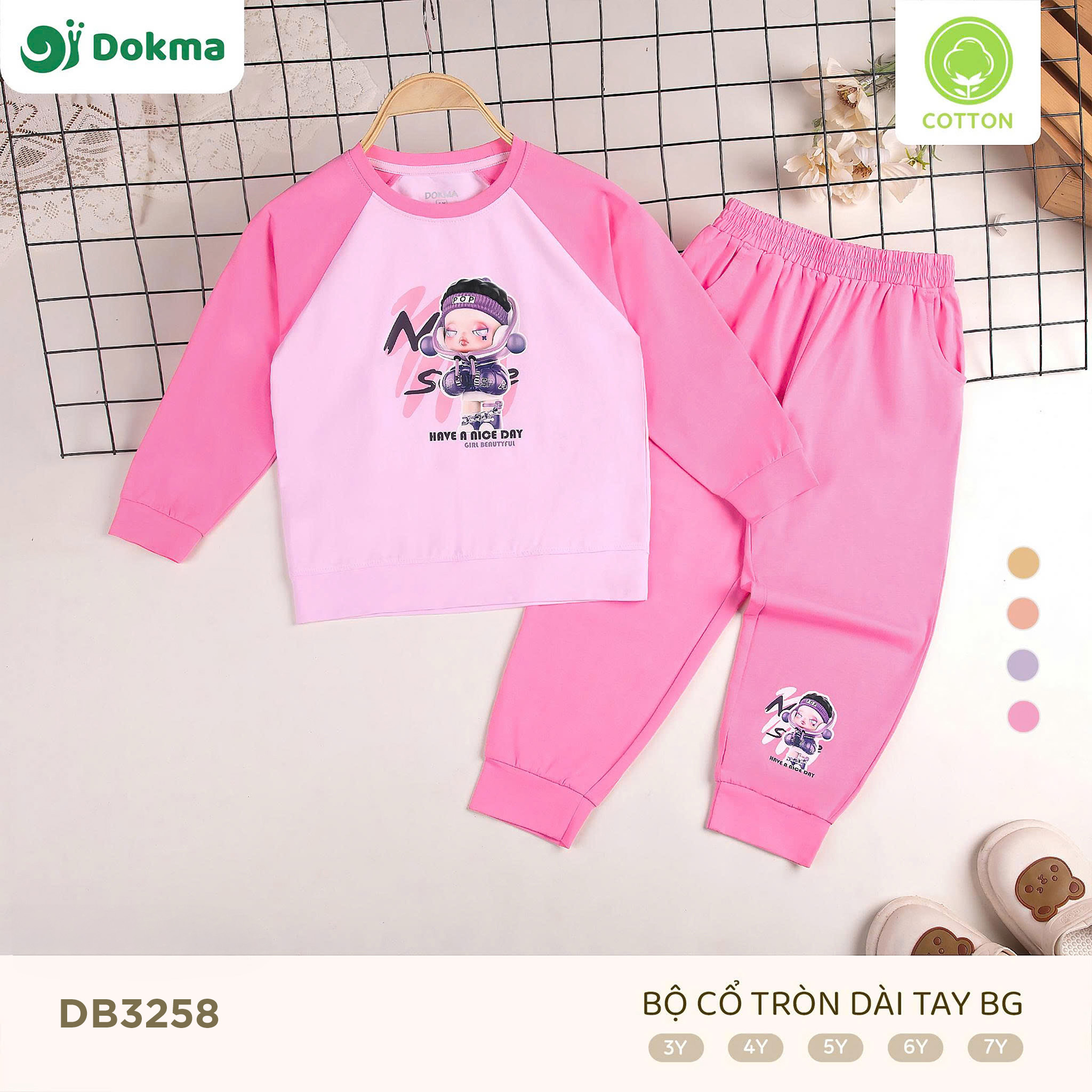 Bộ dài tay bé gái Dokma DB3258 với thiết kế cổ tròn, tay raglan khỏe khoắn kết hợp hình in nhân vật ngộ nghĩnh đáng yêu. Chất liệu cotton cao cấp mềm mịn, thấm hút tốt, an toàn cho da bé, mang lại cảm giác thoải mái khi mặc cả ngày.