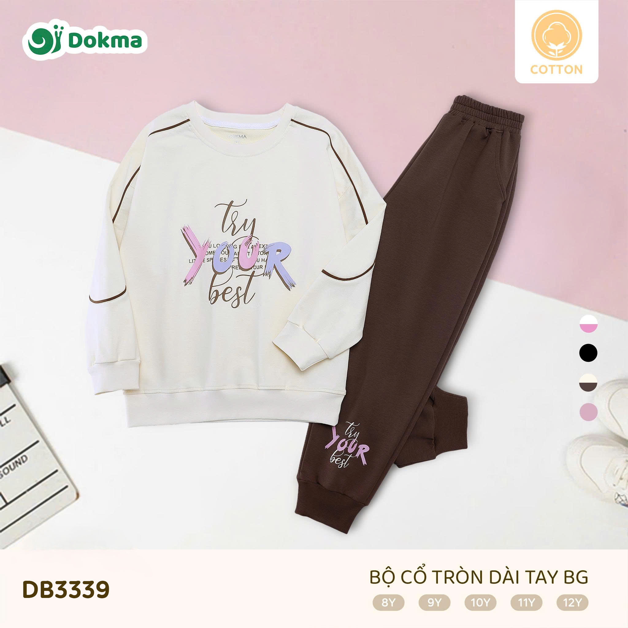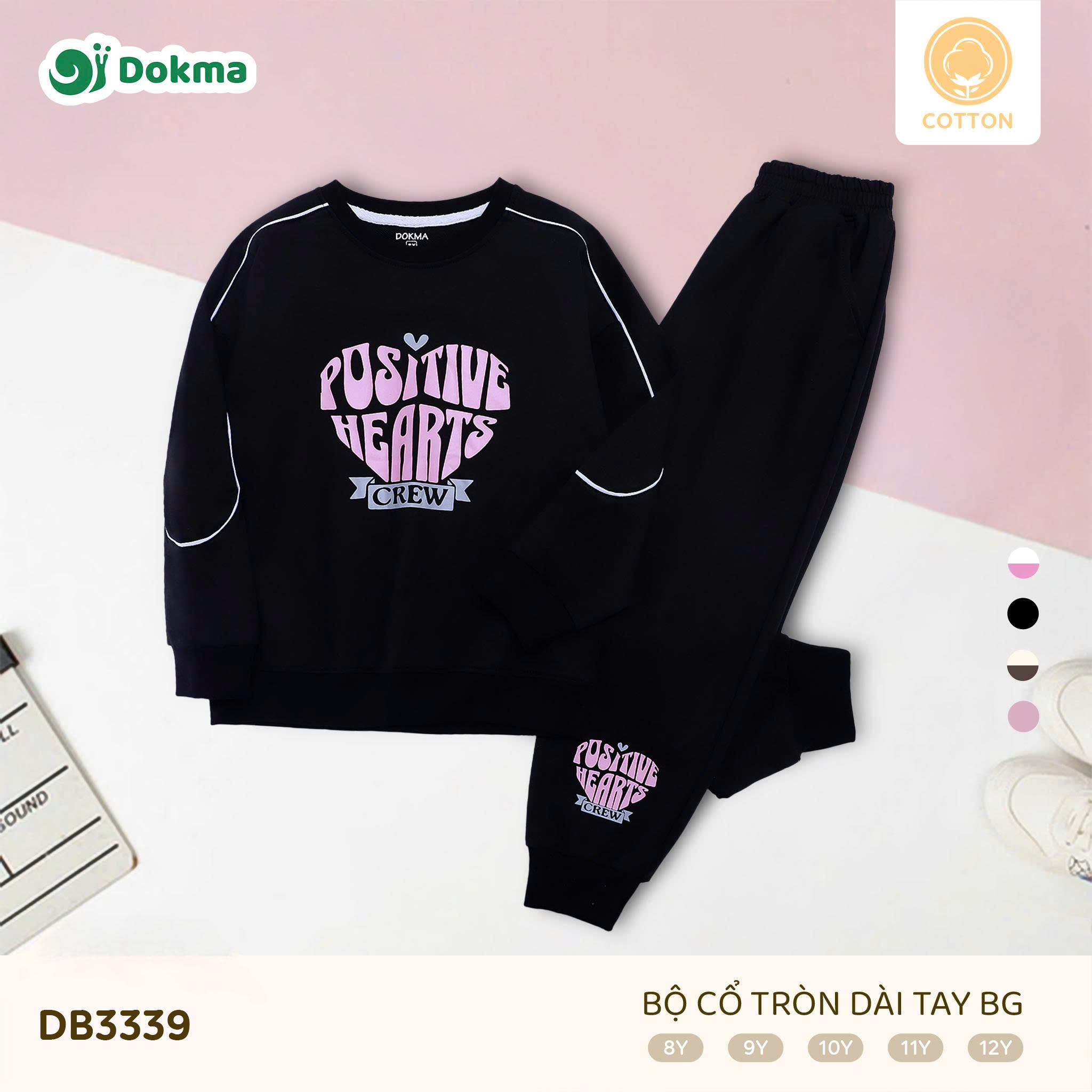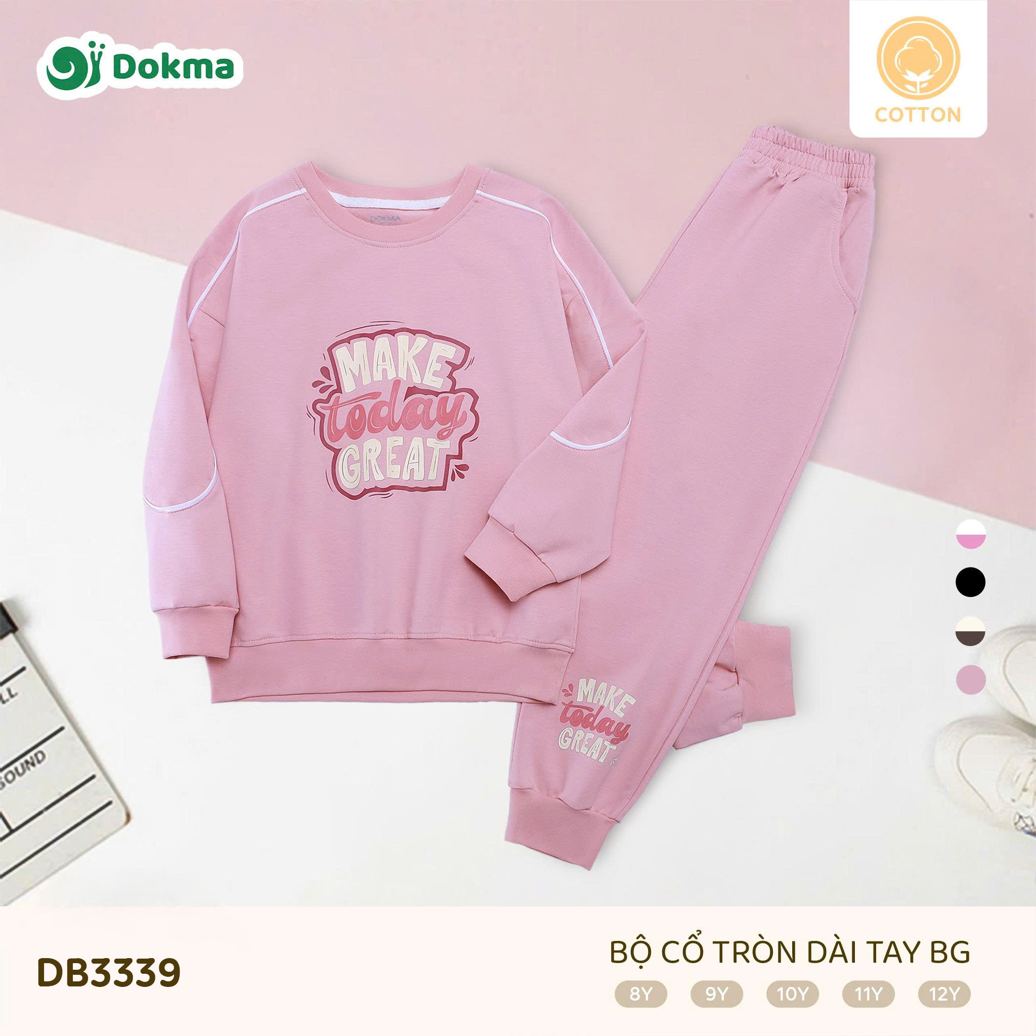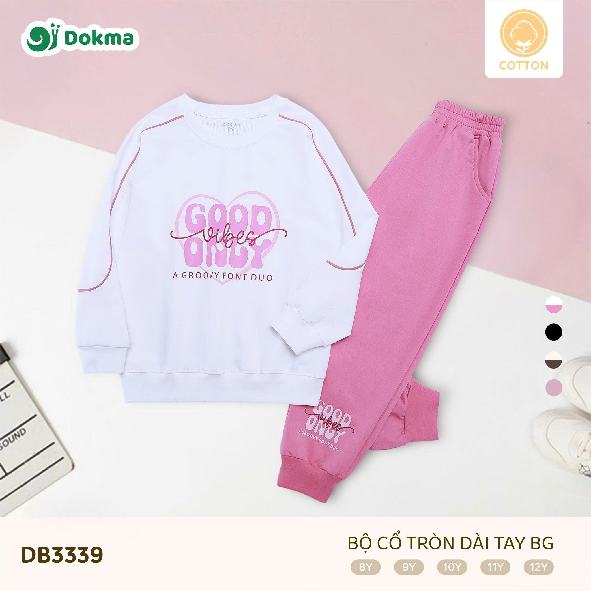 Bộ cổ tròn dài tay bé gái Dokma DB3339 được làm từ chất liệu Cotton, mềm mại, thoáng khí và thấm hút mồ hôi tốt, phù hợp cho bé mặc hằng ngày hoặc đi học. Chất vải dày vừa phải, giữ ấm nhẹ nhưng vẫn đảm bảo sự thoải mái khi vận động.