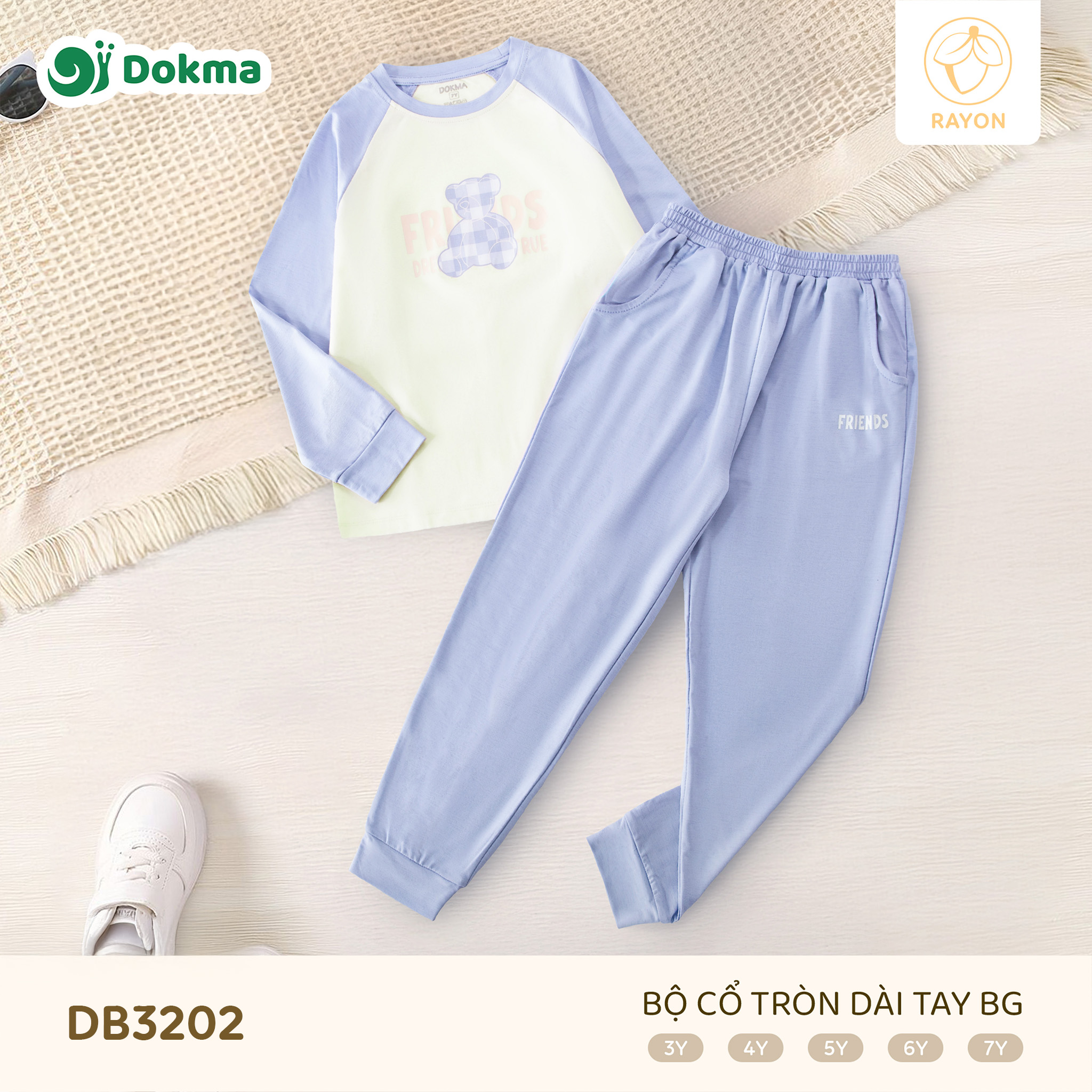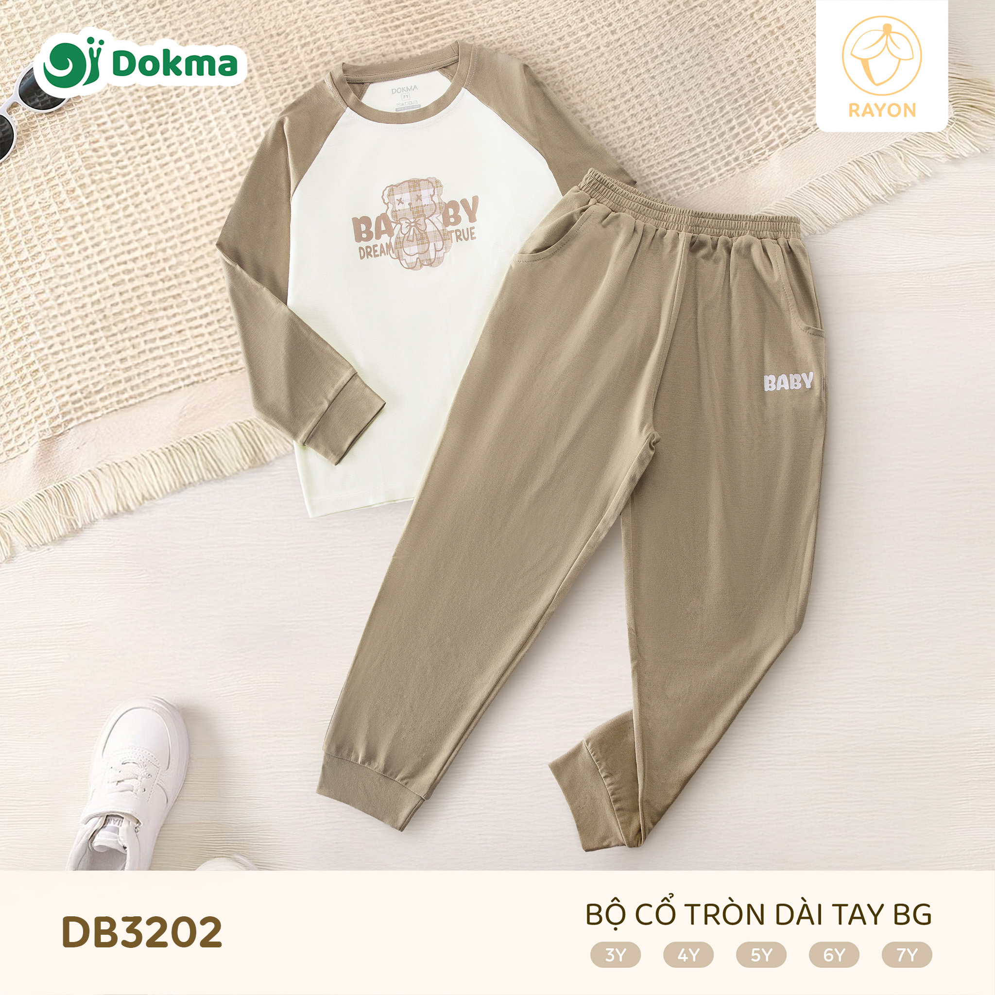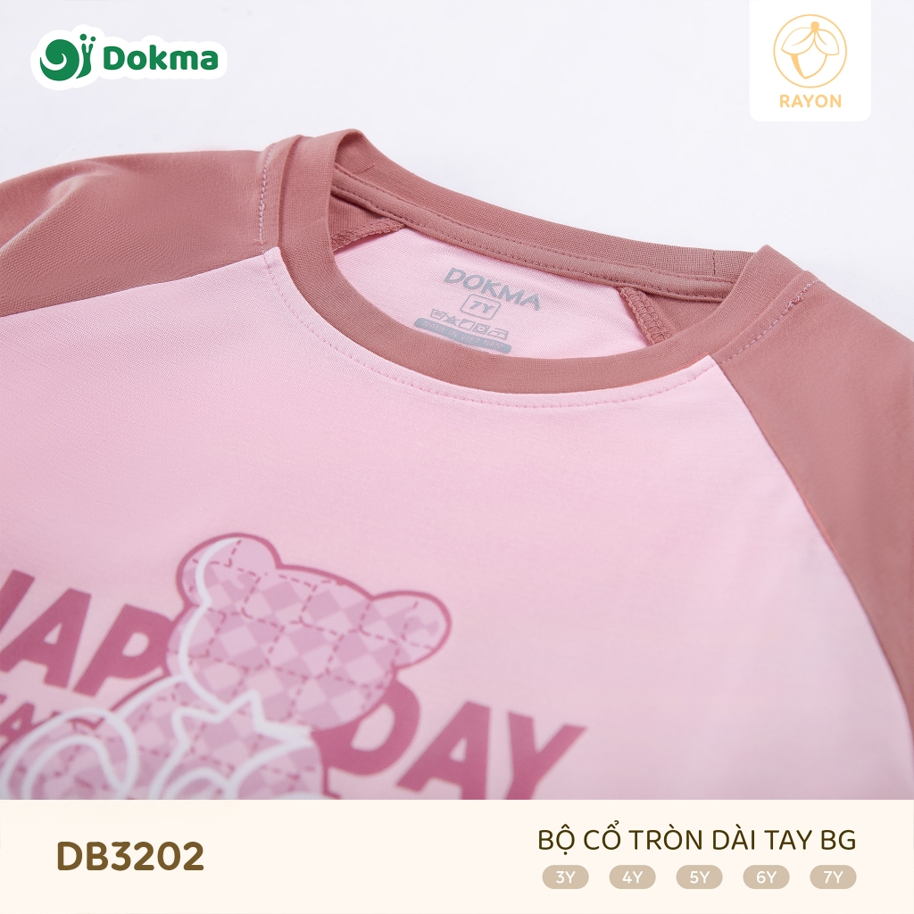 Bộ cổ tròn dài tay Dokma DB3202 được làm từ chất liệu Rayon mềm mịn, có độ rũ nhẹ, thoáng mát và thân thiện với làn da nhạy cảm của bé. Chất vải mát tay, không thô cứng, giúp bé luôn dễ chịu khi mặc cả ngày dài.