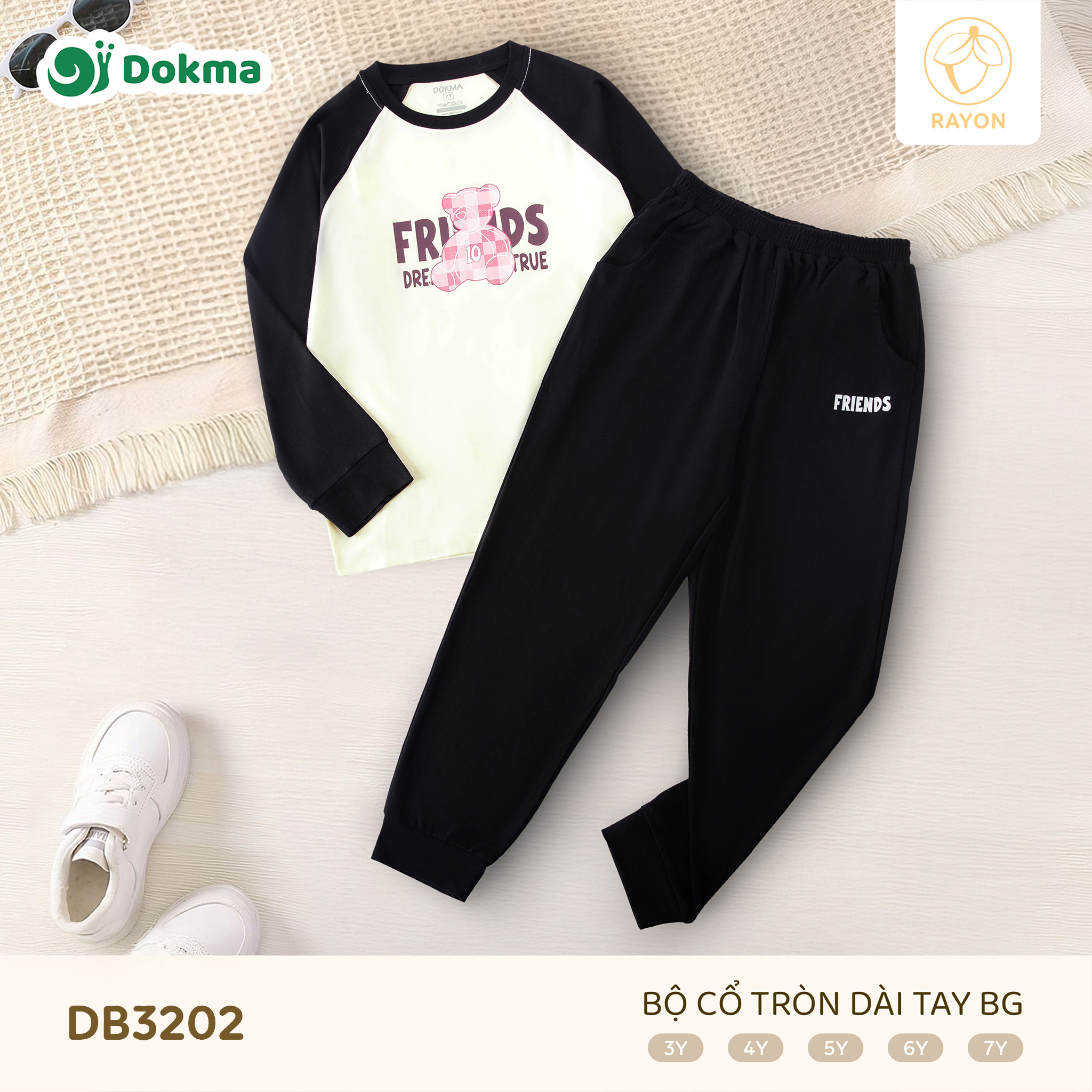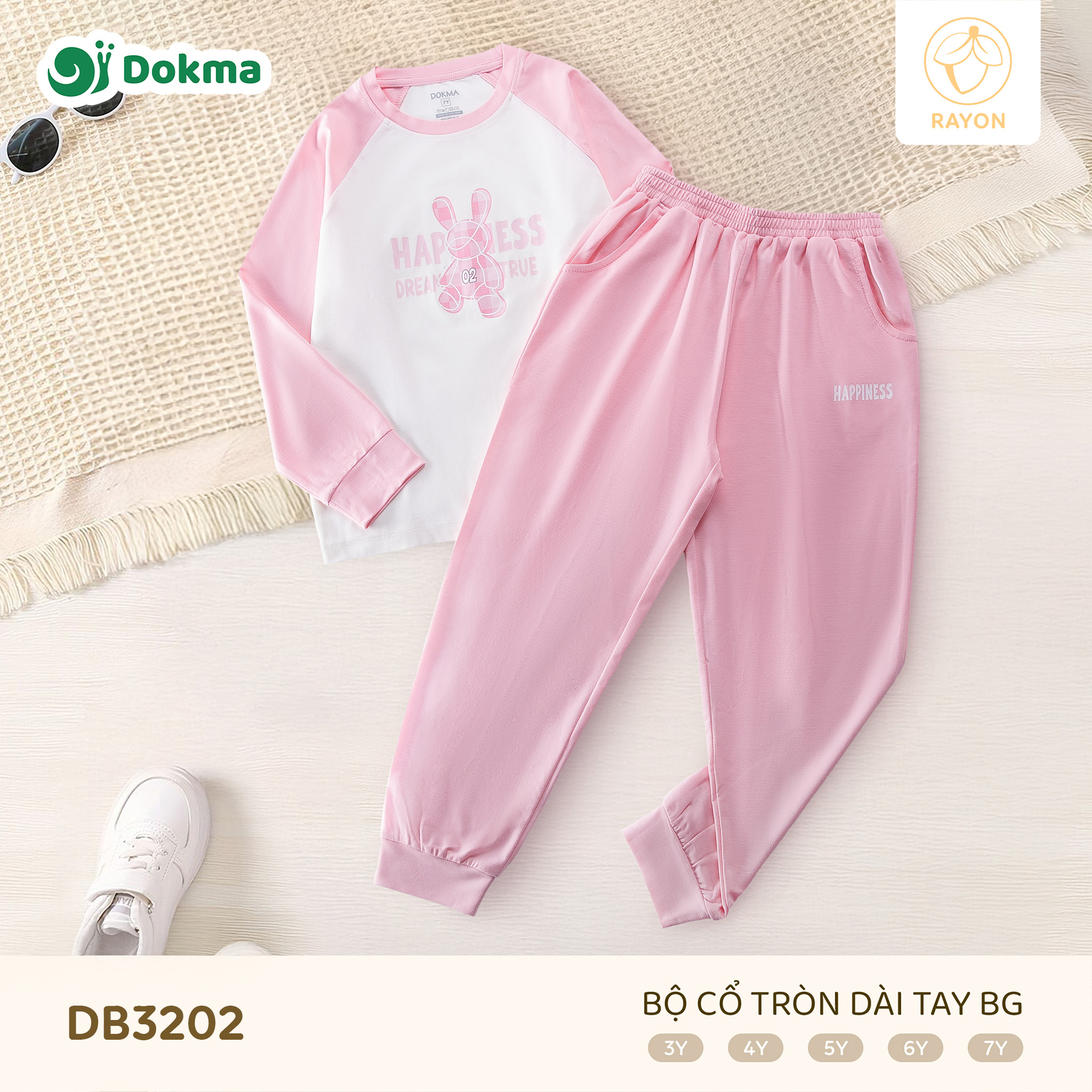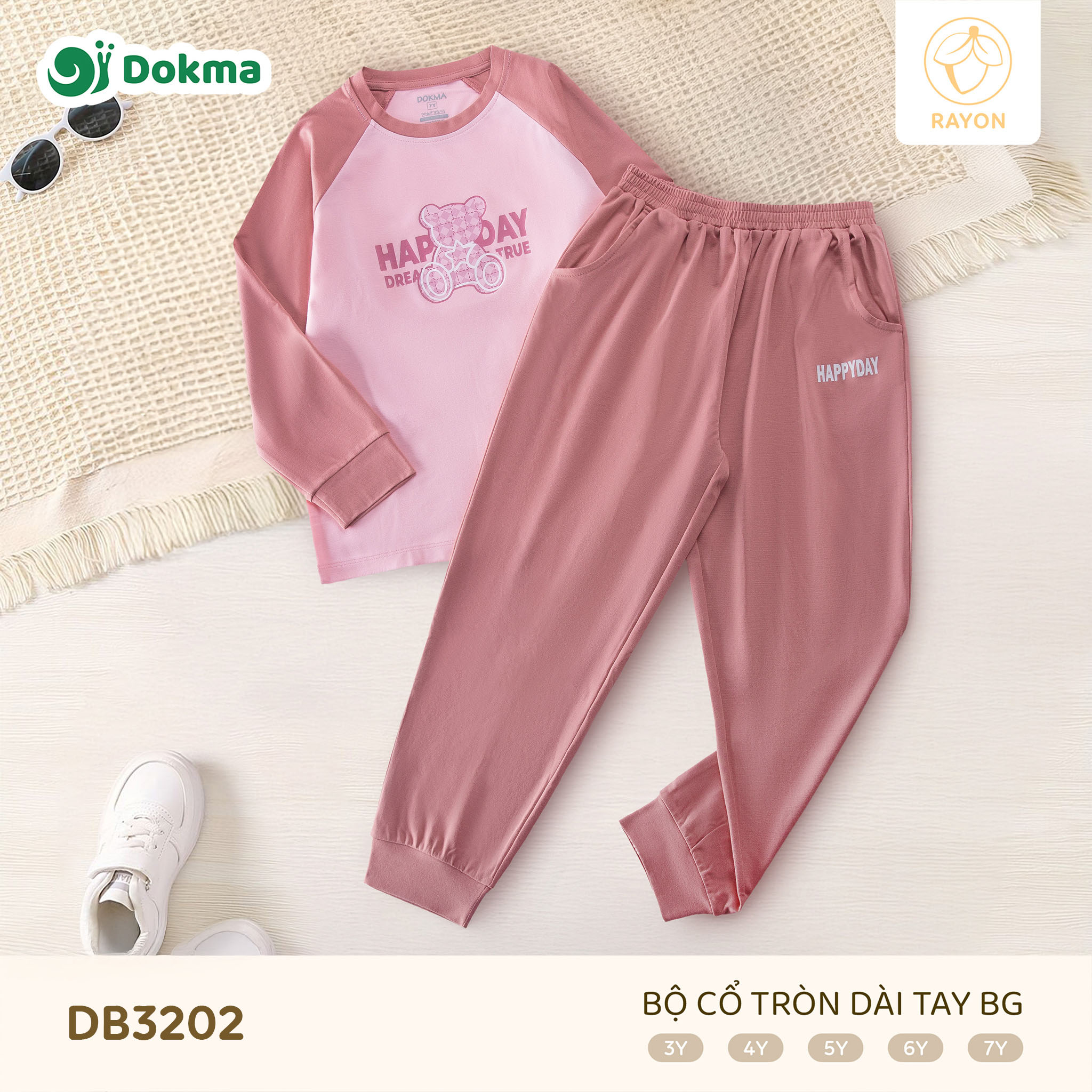 Bộ cổ tròn dài tay Dokma DB3202 được làm từ chất liệu Rayon mềm mịn, có độ rũ nhẹ, thoáng mát và thân thiện với làn da nhạy cảm của bé. Chất vải mát tay, không thô cứng, giúp bé luôn dễ chịu khi mặc cả ngày dài.