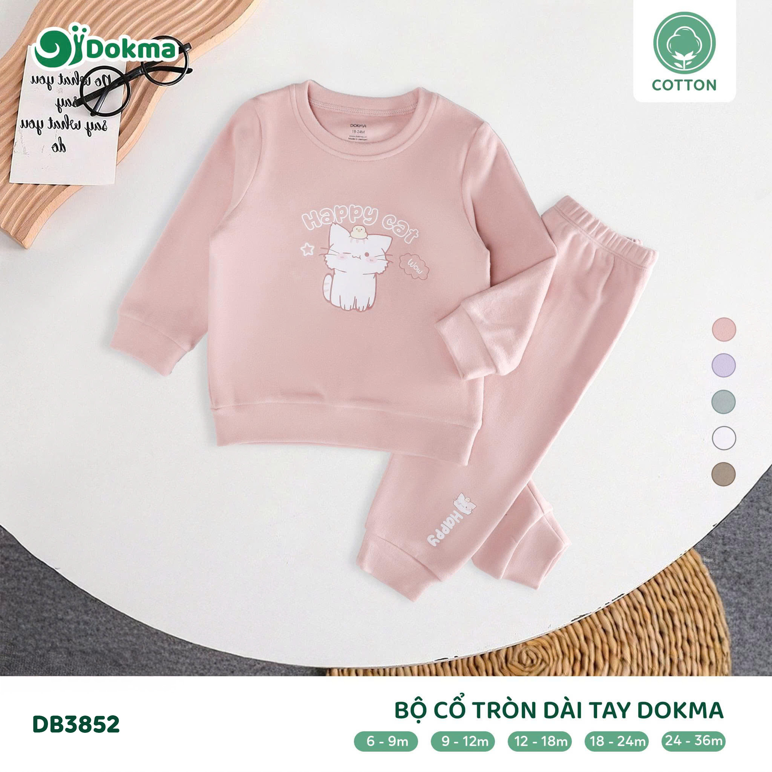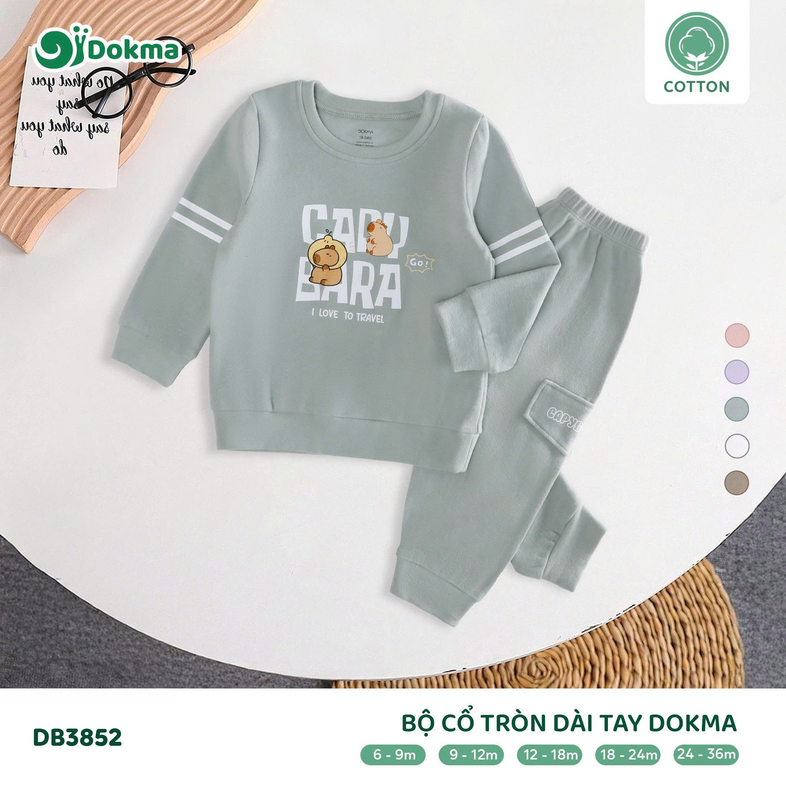 Bộ quần áo Cổ tròn dài tay Dokma DB3852 được làm từ chất liệu cotton cao cấp, mềm mịn và thoáng khí, giúp bé luôn dễ chịu và thoải mái khi mặc. Bề mặt vải mềm mại, an toàn với làn da nhạy cảm của bé. Chất vải có độ dày vừa phải, đứng form nhưng vẫn co giãn nhẹ, thấm hút mồ hôi tốt, phù hợp cho bé mặc đi học, đi chơi hay sinh hoạt hằng ngày.