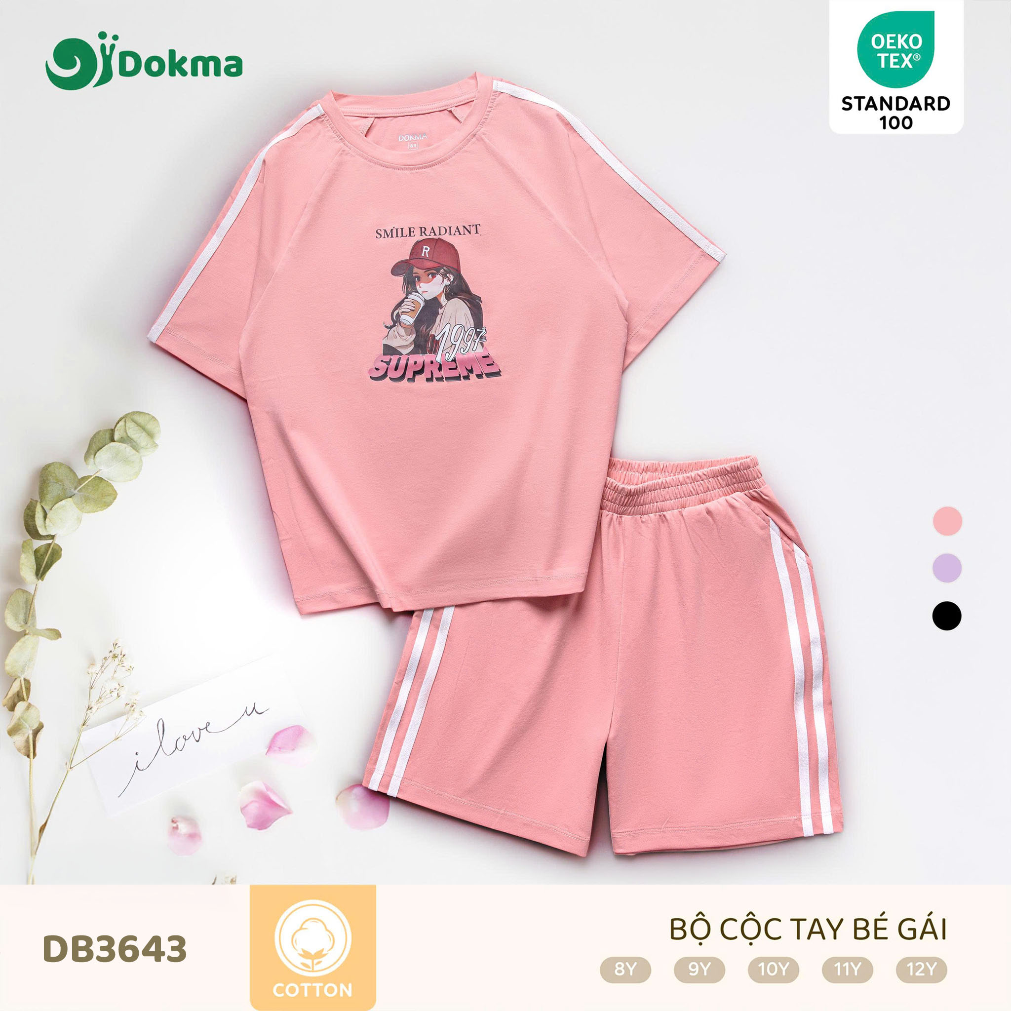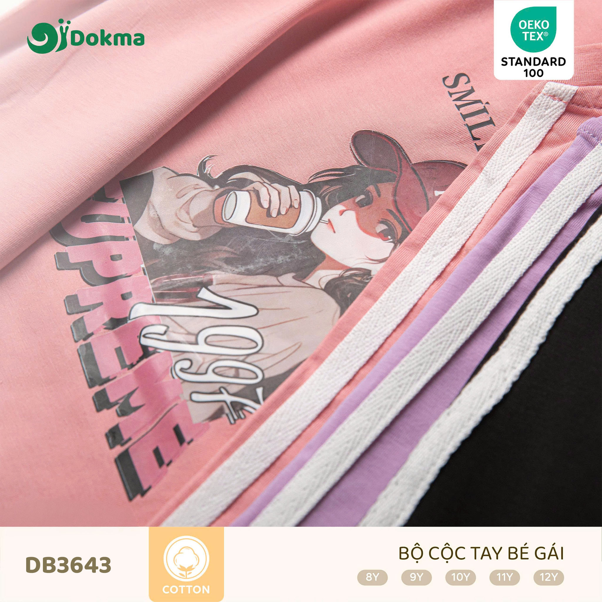Bộ cộc tay bé gái Dokma DB3643 mang phong cách năng động pha chút nữ tính với gam màu tím pastel trendy cùng họa tiết in hình dễ thương, giúp bé luôn nổi bật và tự tin khi diện.