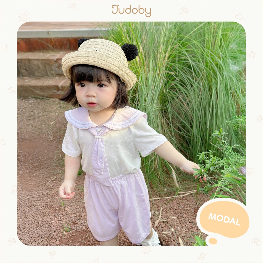 Bộ cộc tay thủy thủ với thiết kế áo thun phối cổ thủy thủ độc đáo, đi kèm quần short mềm mại, mang lại sự mát mẻ và dễ chịu suốt cả ngày.
