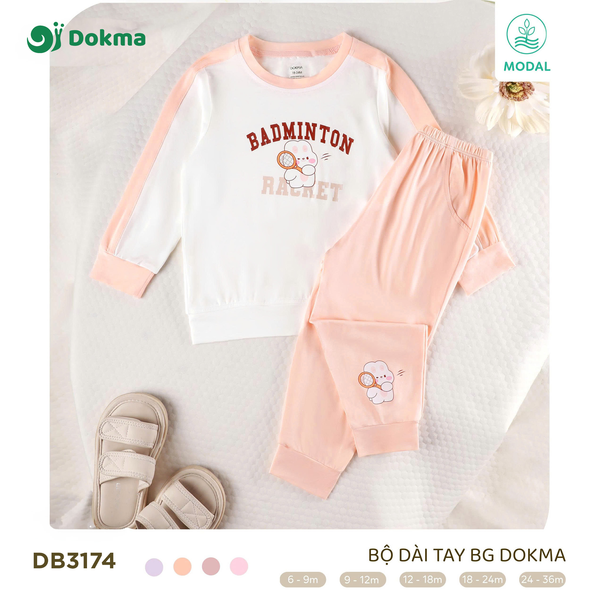 Bộ dài tay bé gái Dokma DB3174 được thiết kế năng động, dễ thương với họa tiết thể thao đáng yêu (tennis, bóng đá, cầu lông…), giúp bé thêm phần khỏe khoắn và tự tin. Chất liệu Modal mềm mịn, thoáng mát, an toàn cho da, mang lại cảm giác dễ chịu khi mặc cả ngày.