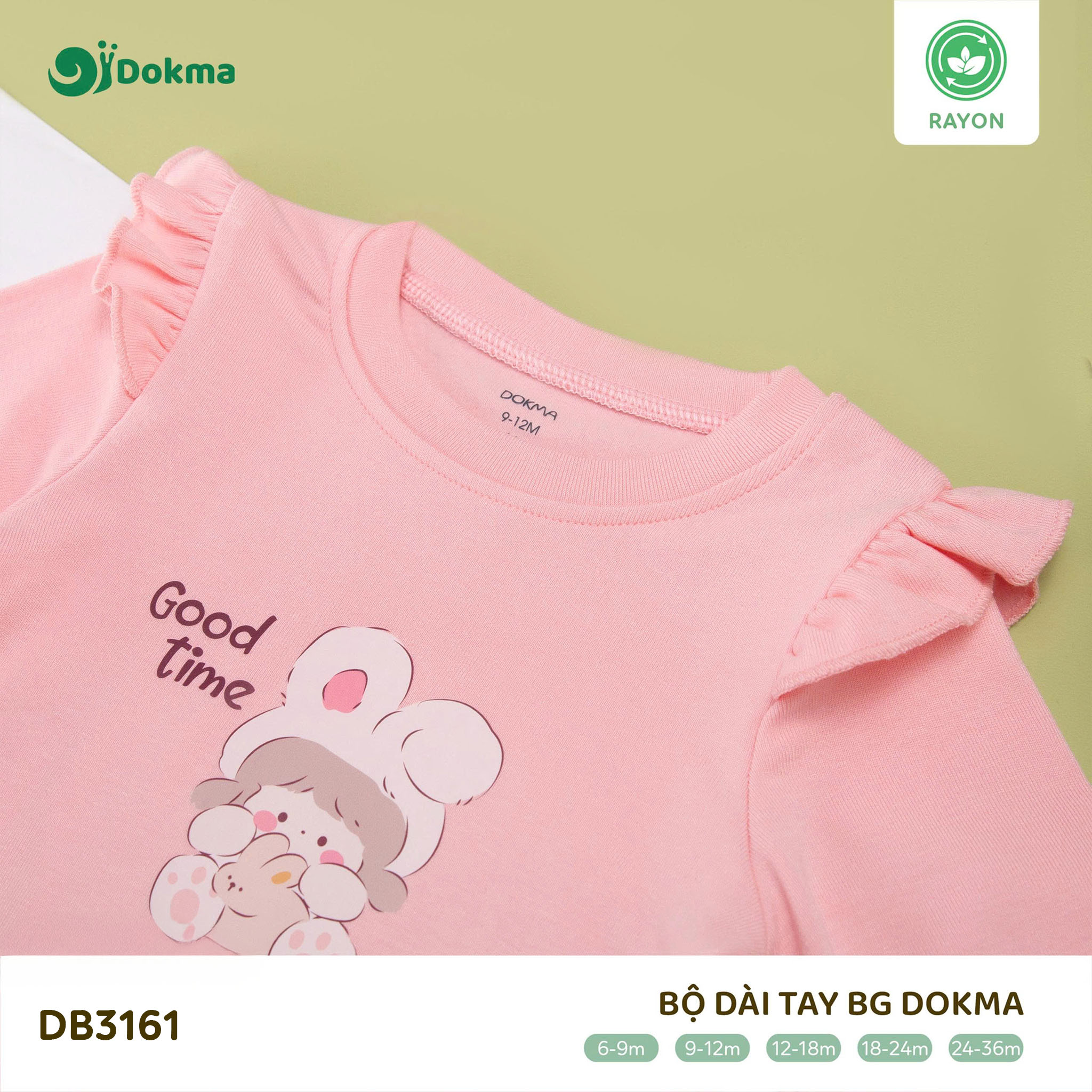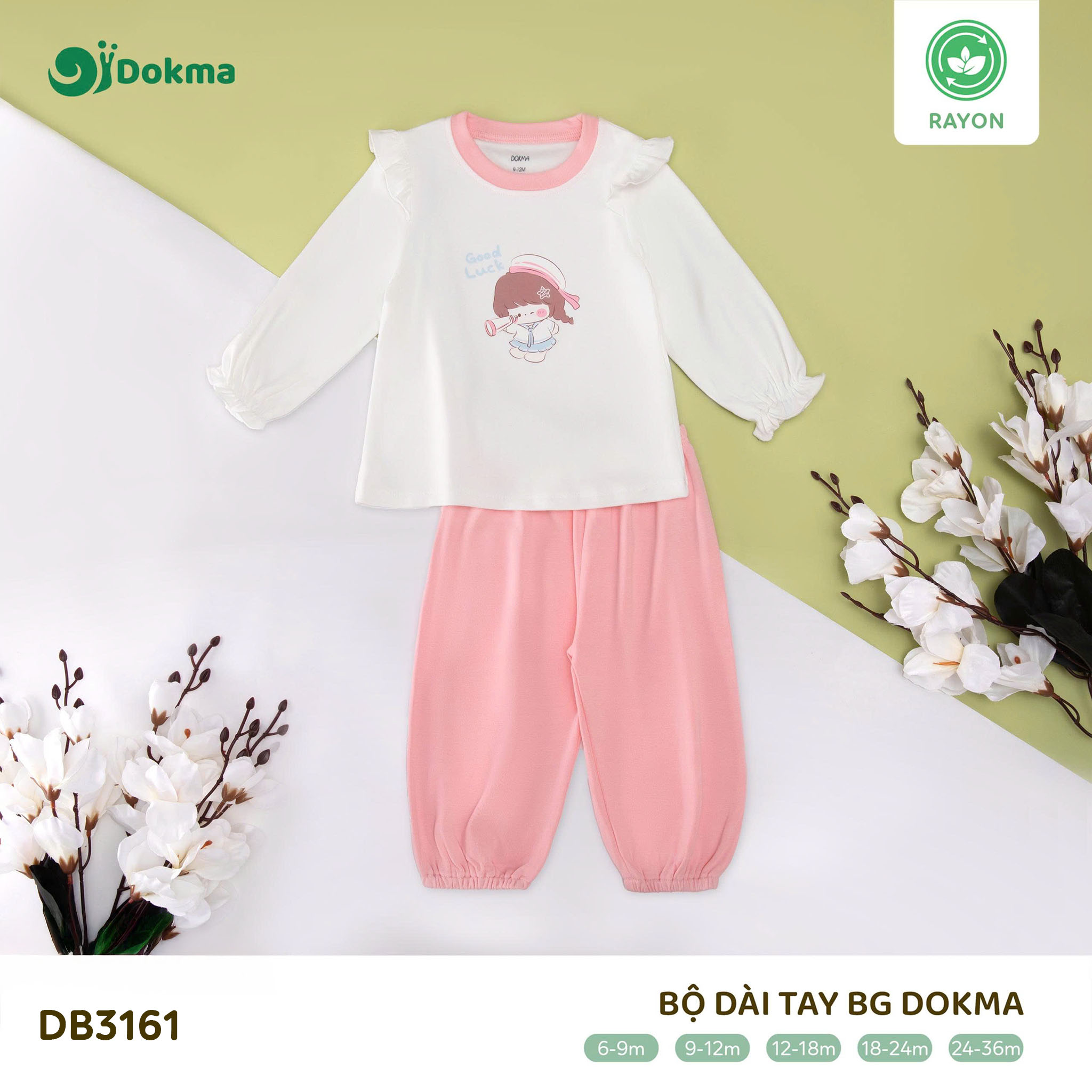 Bộ dài tay bé gái Dokma DB3161 được làm từ chất liệu Rayon cao cấp, mềm mại, an toàn và thân thiện với làn da nhạy cảm của bé. Chất vải có độ thoáng mát tự nhiên, thấm hút mồ hôi tốt, giúp bé luôn dễ chịu khi mặc trong mọi thời tiết mà không gây bí bách hay khó chịu.