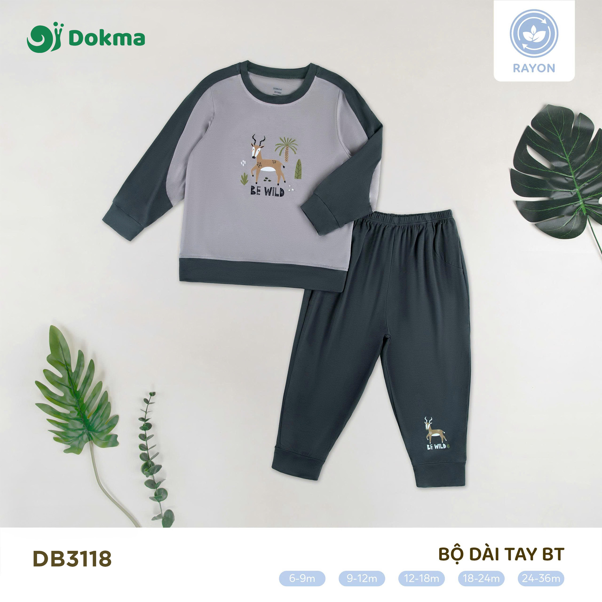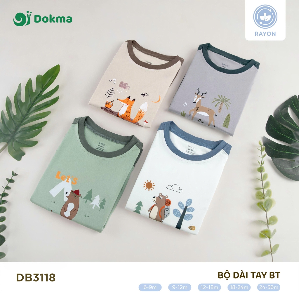 Bộ dài tay bé trai Dokma DB3118 được thiết kế với phong cách năng động, hình in động vật rừng sinh động, tạo cảm giác gần gũi và đáng yêu. Chất liệu rayon mềm mịn, thoáng mát, co giãn nhẹ, giúp bé luôn thoải mái trong mọi hoạt động hàng ngày.