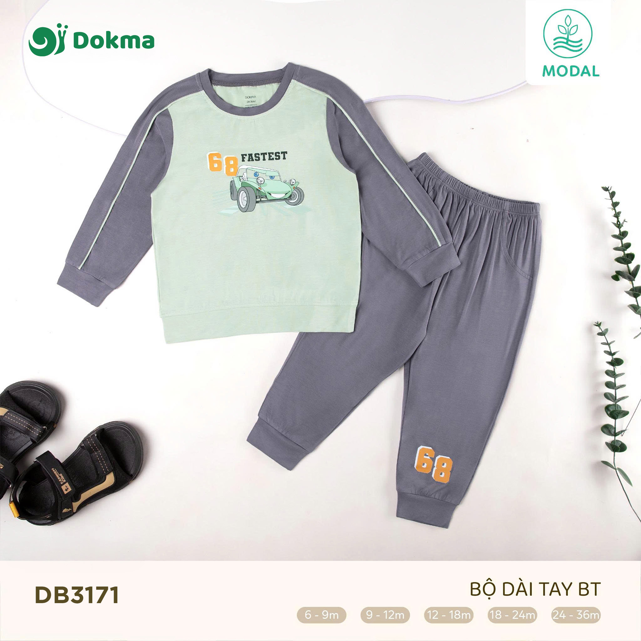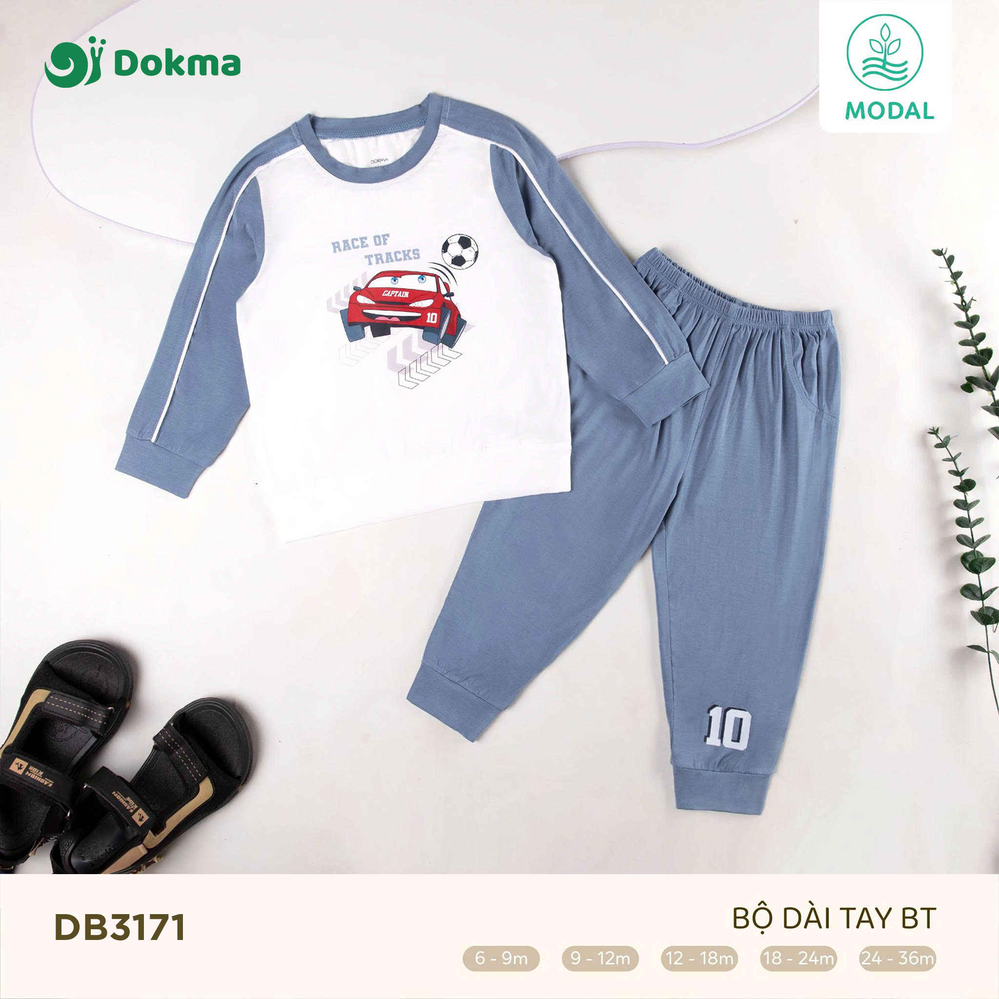 Bộ dài tay bé trai Dokma DB3171 mang phong cách thể thao năng động với họa tiết xe đua nổi bật, giúp bé thêm cá tính và khỏe khoắn. Thiết kế tay raglan phối màu hiện đại, tạo điểm nhấn nổi bật cho trang phục. Chất liệu Modal cao cấp mềm mại, thoáng mát, co giãn nhẹ, an toàn tuyệt đối cho làn da bé, thích hợp cho mọi hoạt động hàng ngày.