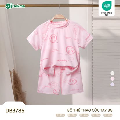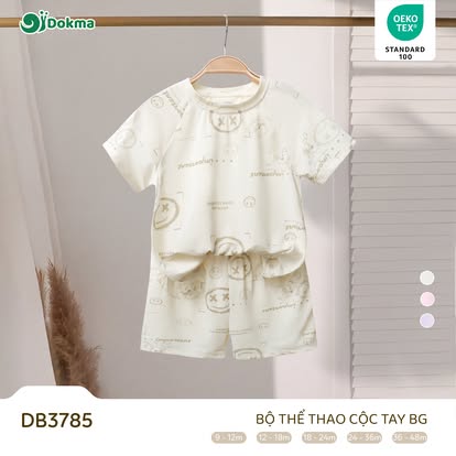 Bộ thể thao cộc tay Dokma DB3785 được làm từ chất liệu vải mềm mại, nhẹ và thoáng khí, mang lại cảm giác dễ chịu cho làn da nhạy cảm của bé. Bề mặt vải mịn, thấm hút mồ hôi tốt giúp bé luôn khô thoáng và thoải mái trong suốt quá trình vui chơi, vận động hằng ngày. Chất liệu có độ co giãn nhẹ, tạo sự linh hoạt, giúp bé dễ dàng di chuyển mà không bị gò bó.