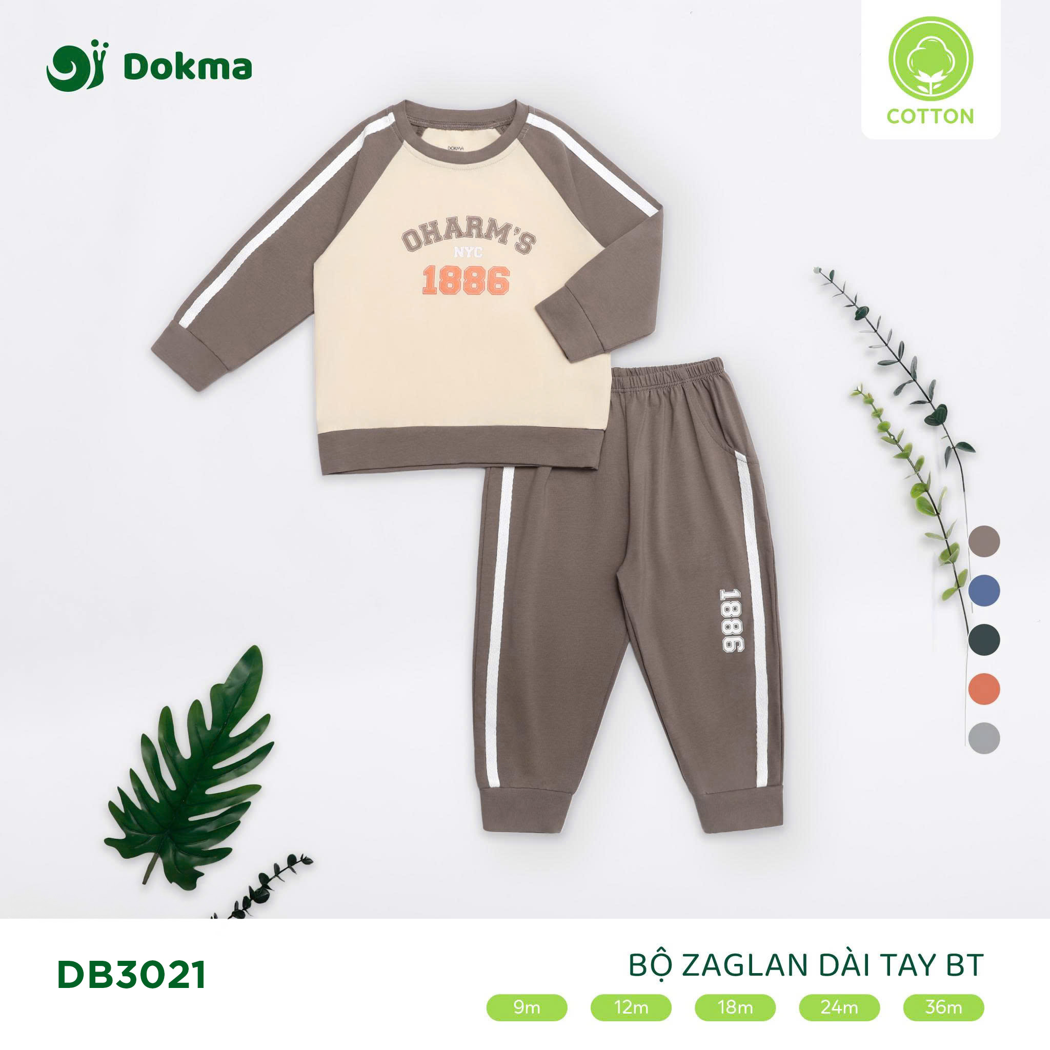 Bộ dài tay bé trai Dokma DB3021 thiết kế kiểu dáng thể thao năng động với áo raglan phối màu cá tính và quần dài bo gấu khỏe khoắn. Họa tiết chữ số in nổi bật mang đậm phong cách sporty, giúp bé trai thêm phần tự tin và phong cách khi đi chơi, đi học hoặc ở nhà.