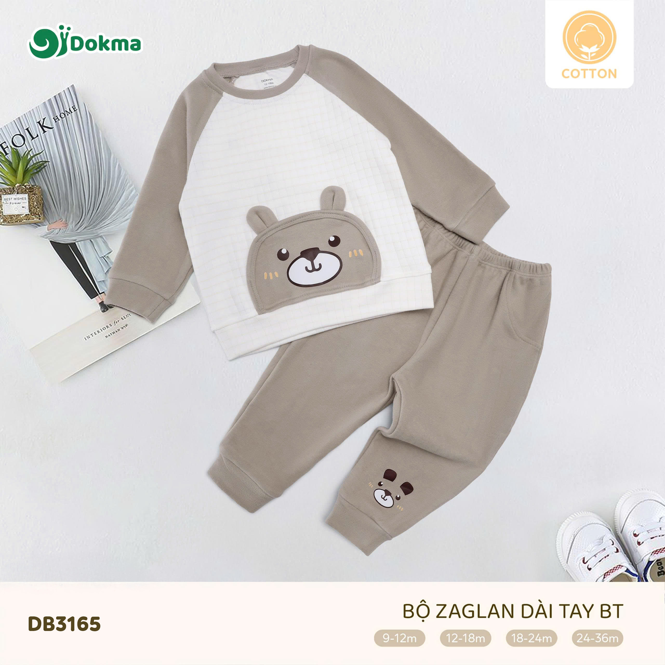 Bộ quần áo Zaglan dài tay bé trai Dokma DB3165 được làm từ chất liệu nỉ cotton dày dặn, mềm mịn và thoáng khí, giúp bé luôn dễ chịu và giữ ấm tốt trong những ngày thời tiết se lạnh. Bề mặt vải mềm mại, an toàn với làn da nhạy cảm của bé. Chất vải có độ dày vừa phải, co giãn nhẹ, thấm hút mồ hôi tốt, phù hợp cho bé mặc đi học, đi chơi hay sinh hoạt hằng ngày.