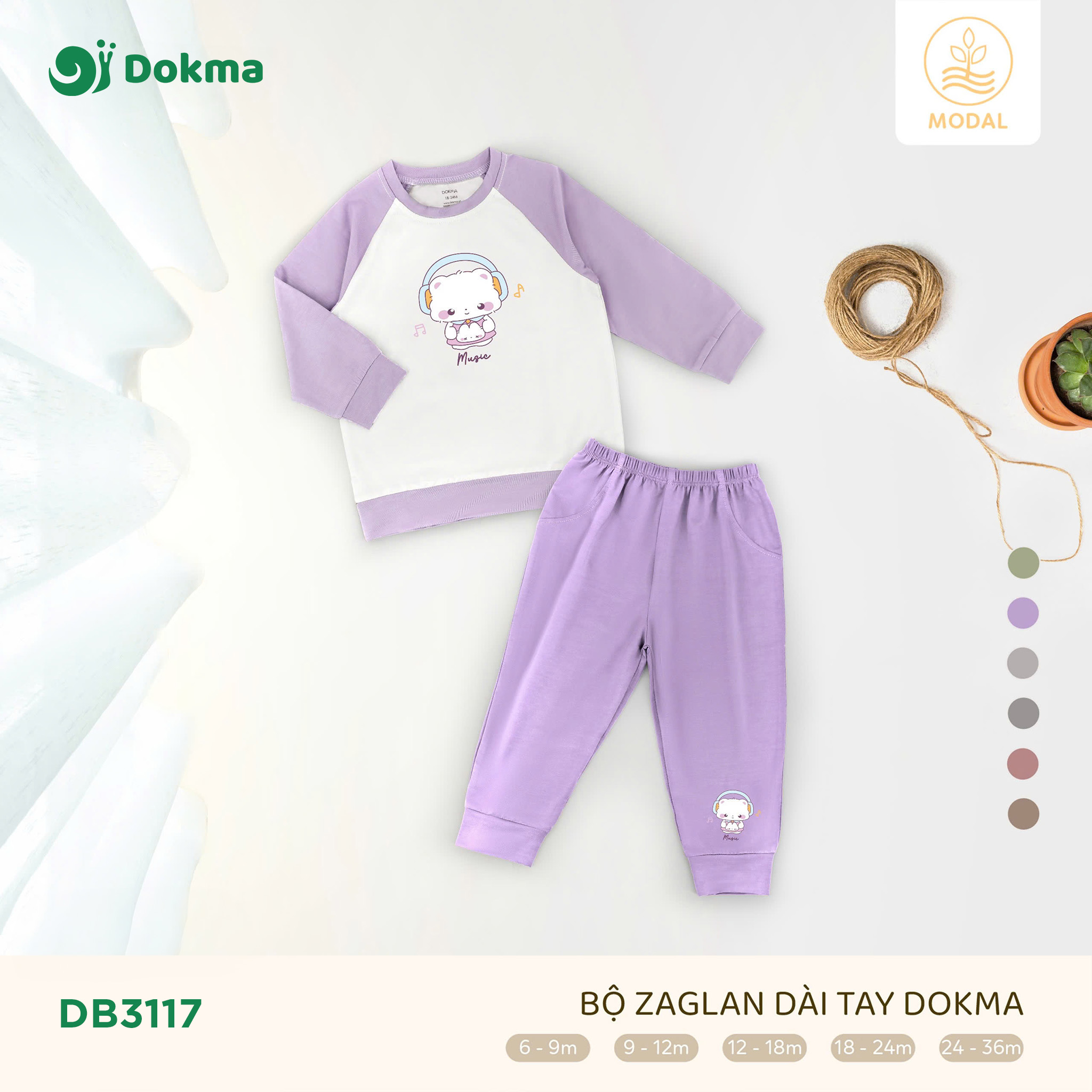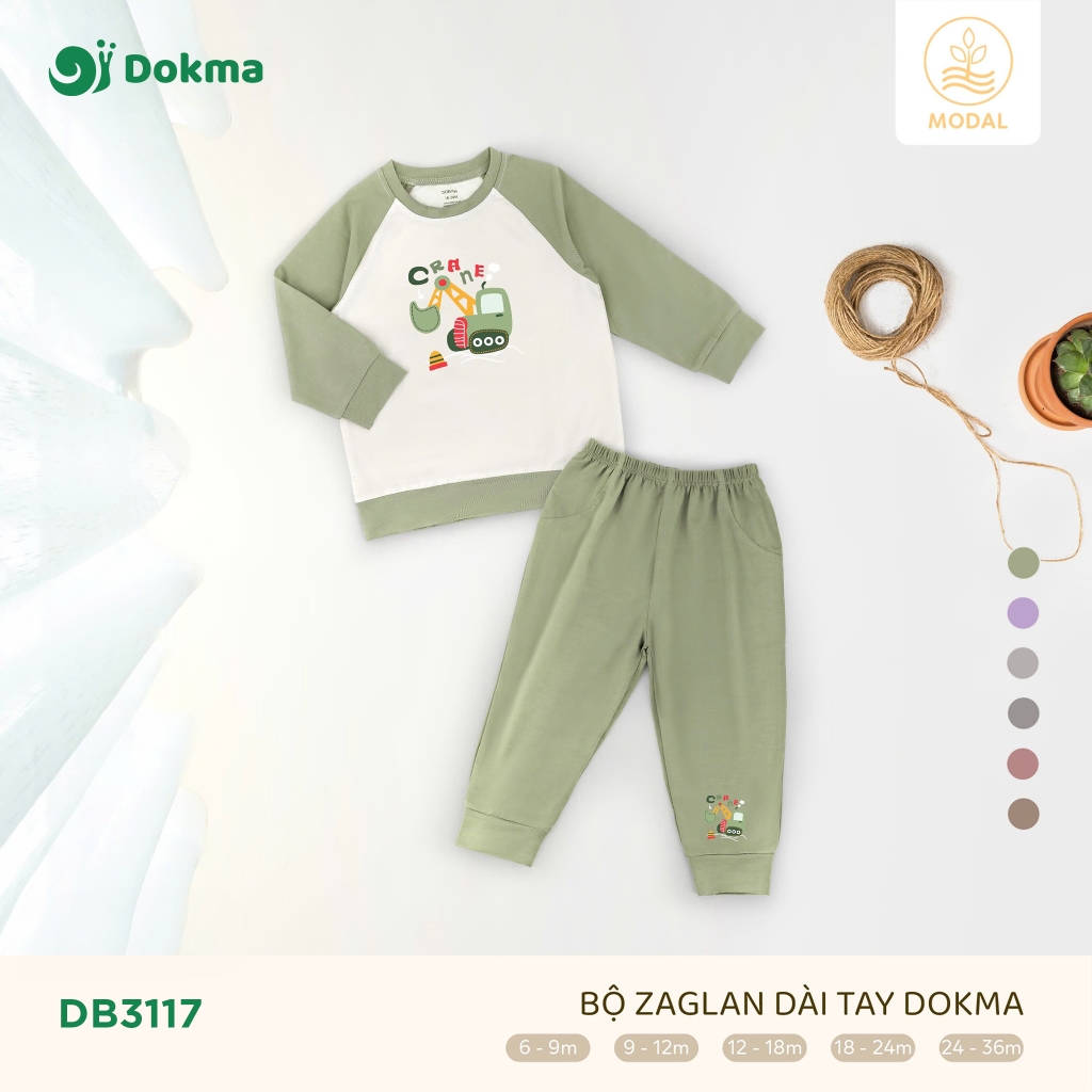 Bộ dài tay Dokma DB3117 thiết kế tay raglan phối màu nhã nhặn, in hình hoạt họa dễ thương, mang lại phong cách đáng yêu và năng động cho bé. Chất liệu modal cao cấp mềm mại, thoáng mát, an toàn cho da, giúp bé luôn dễ chịu trong mọi hoạt động hằng ngày.