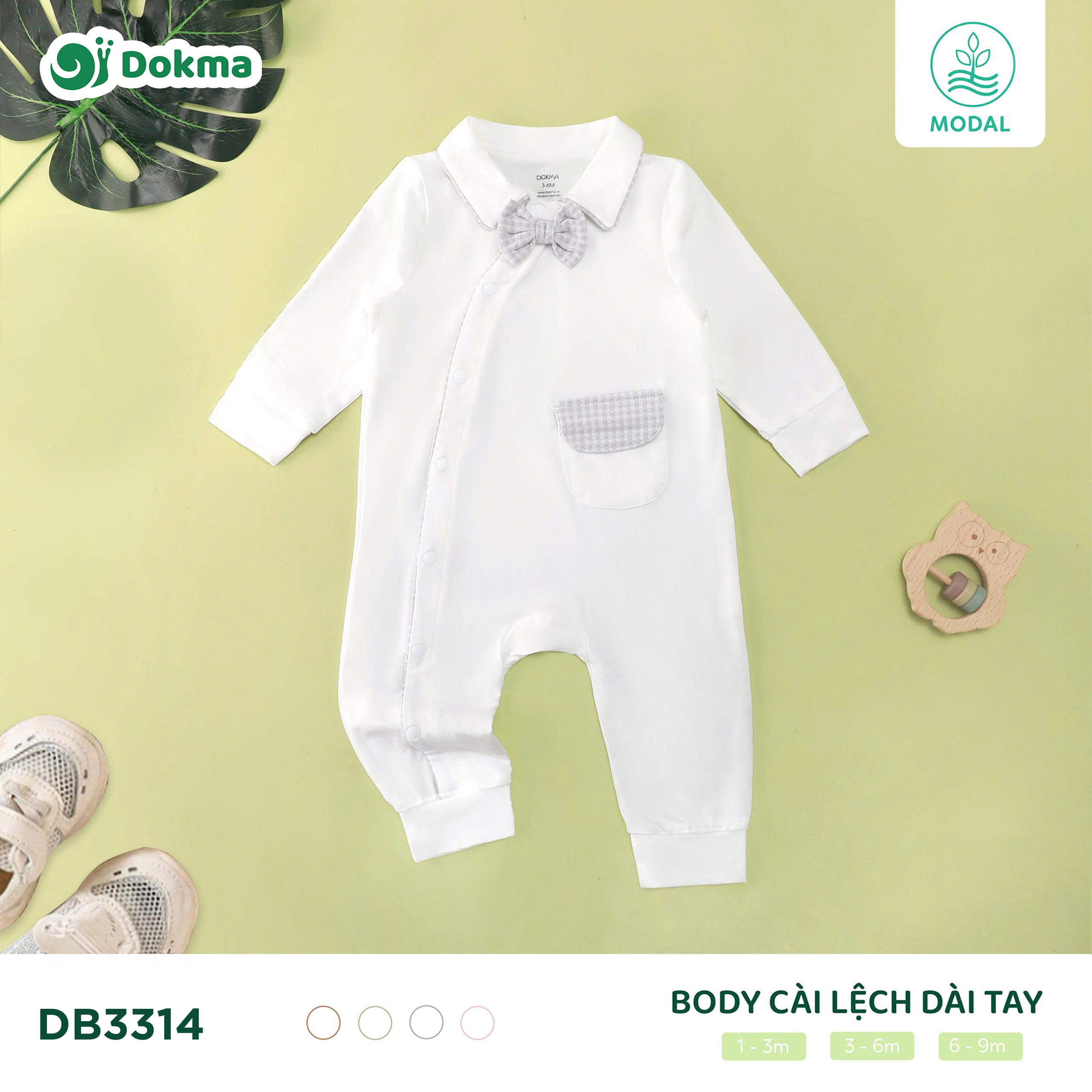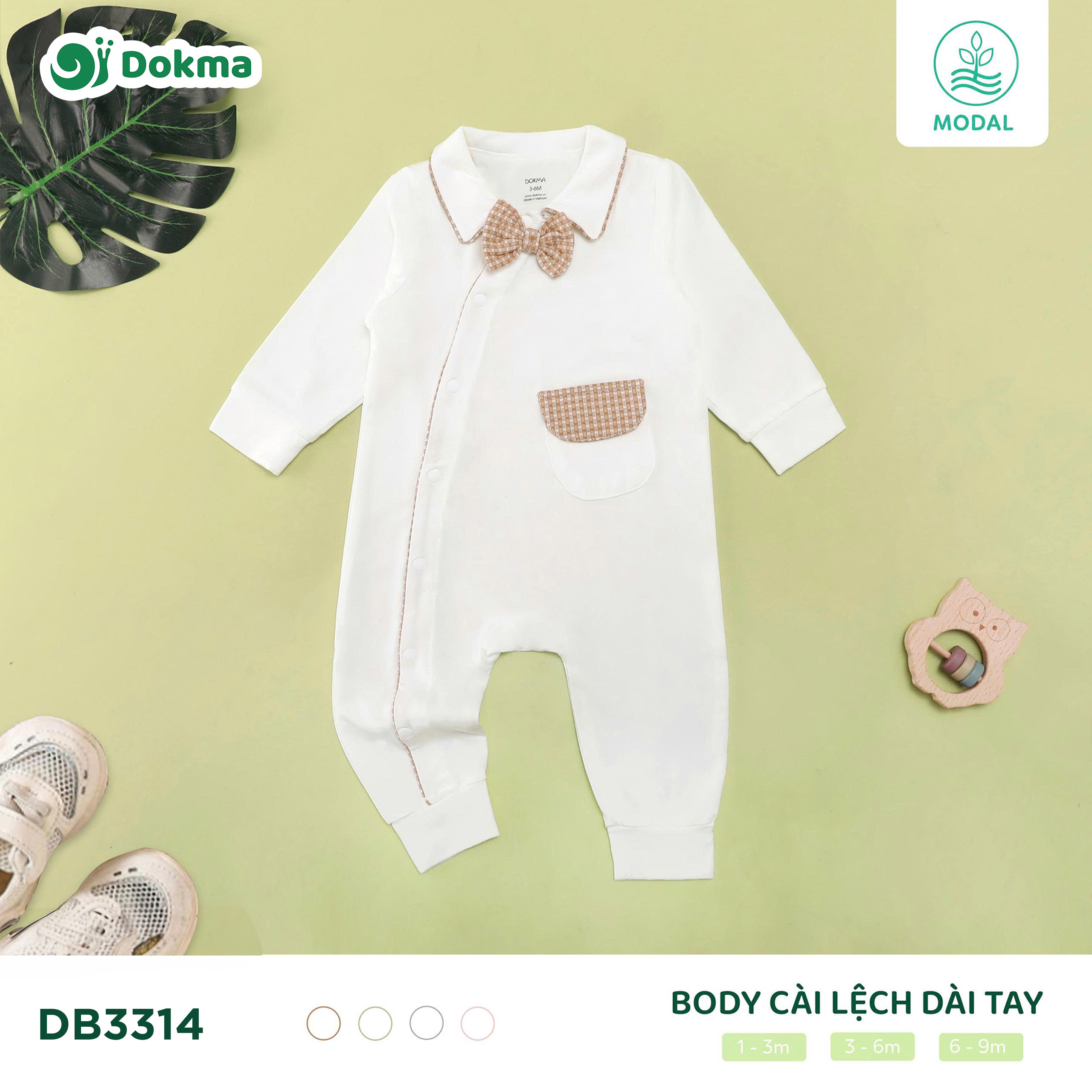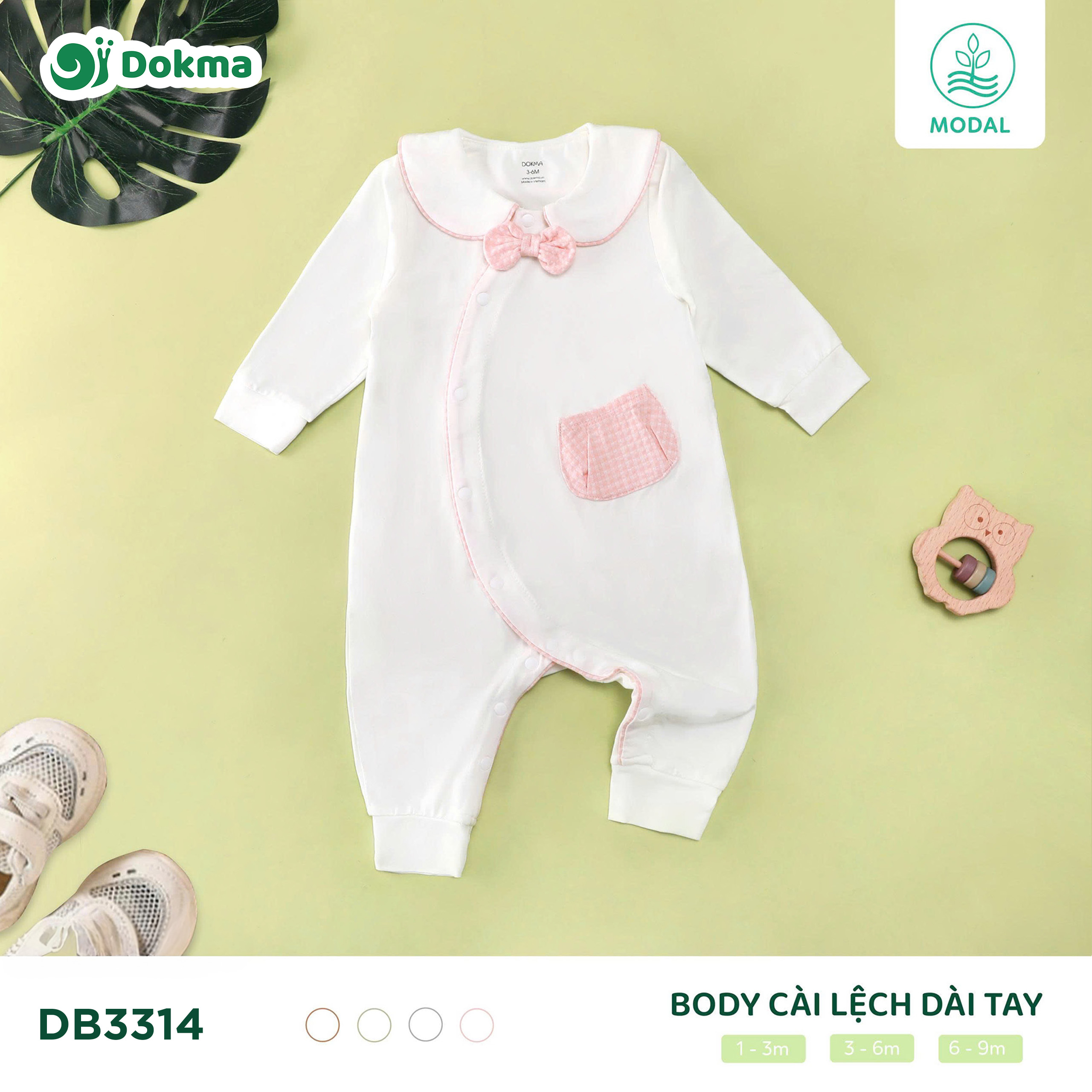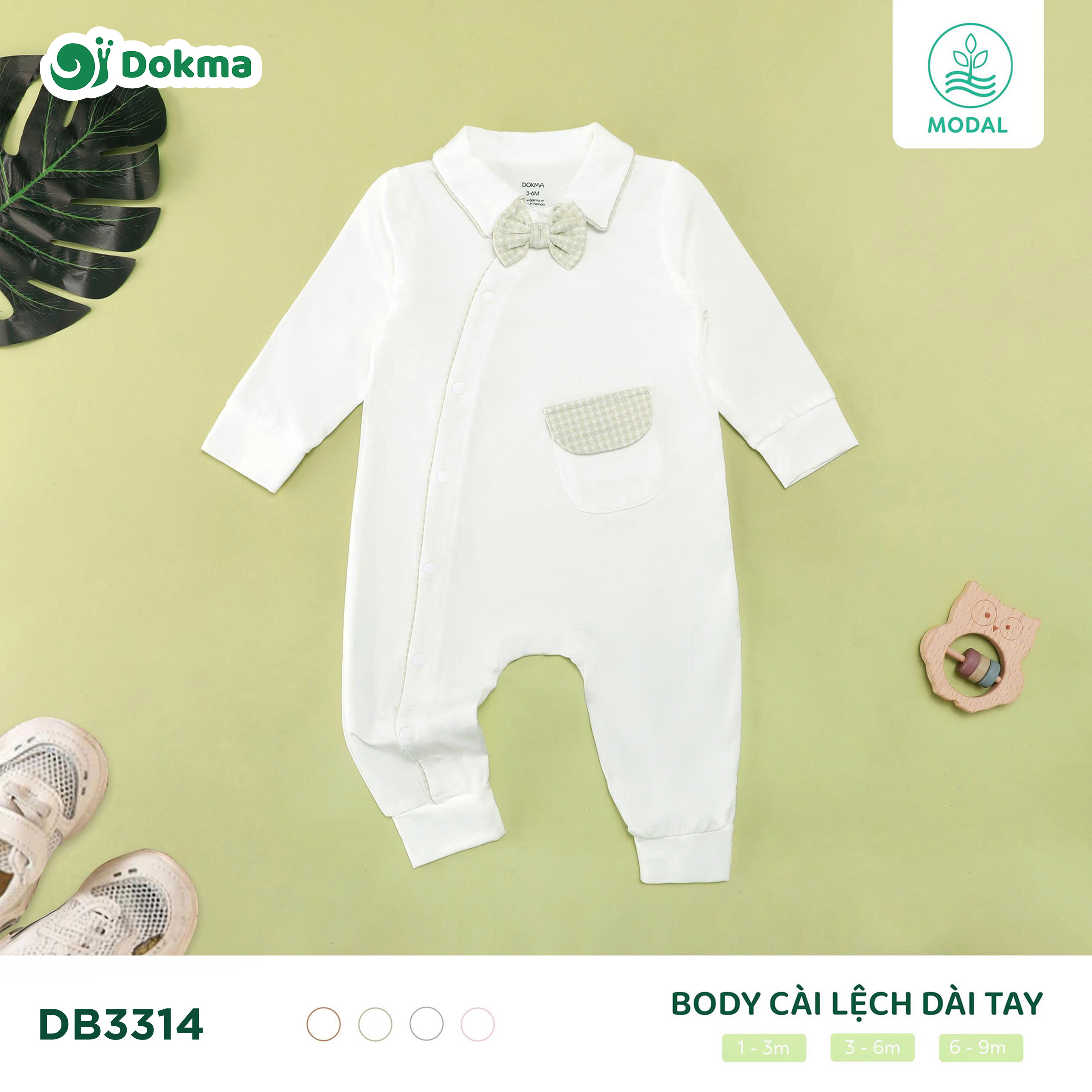 Bộ body cài lệch dài tay Dokma DB3314 với thiết kế cổ sen phối nơ đáng yêu, mang lại vẻ ngoài tinh khôi và trang nhã cho bé. Chất liệu Modal cao cấp mềm mại, thoáng mát, an toàn cho làn da nhạy cảm, đồng thời giúp bé luôn thoải mái trong từng cử động.