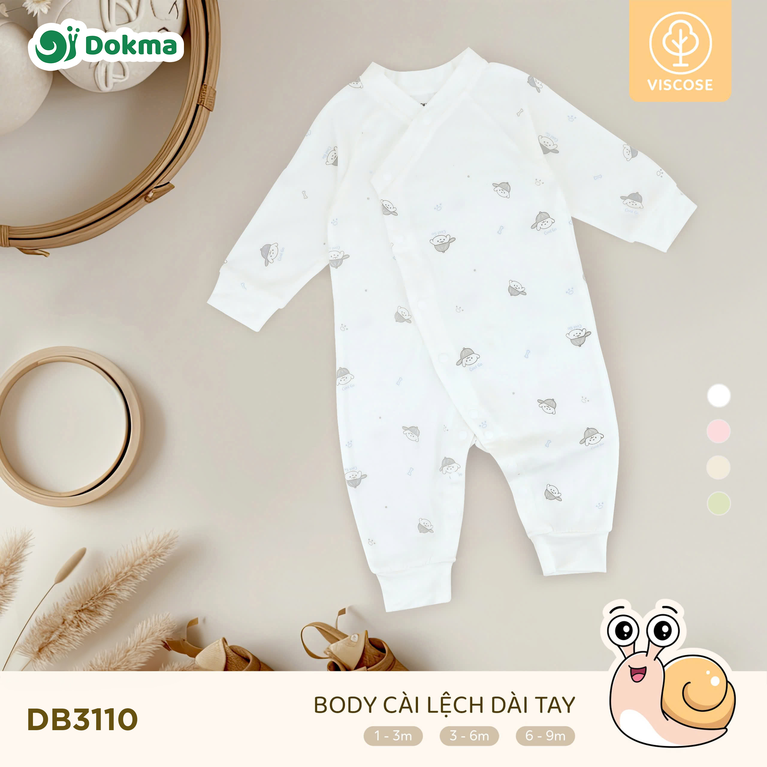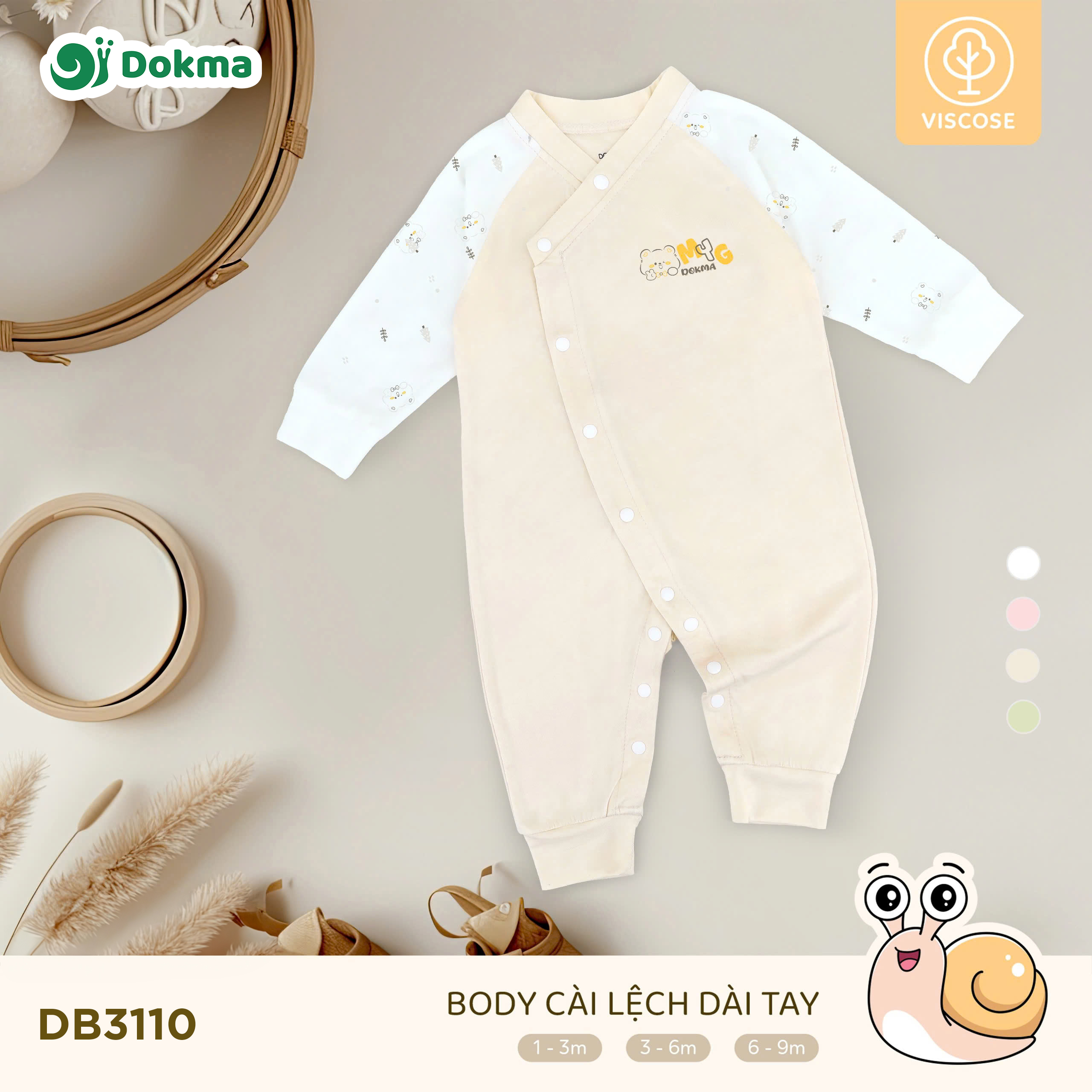 Body cài lệch dài tay Dokma DB3110 được làm từ chất liệu Viscose cao cấp, mềm mại, thấm hút tốt, thoáng mát và cực kỳ an toàn cho làn da nhạy cảm của bé sơ sinh. Thiết kế body liền quần tiện lợi, cài lệch thông minh giúp ba mẹ dễ dàng thay mặc cho bé, đồng thời giữ ấm toàn thân và thoải mái vận động cả ngày.