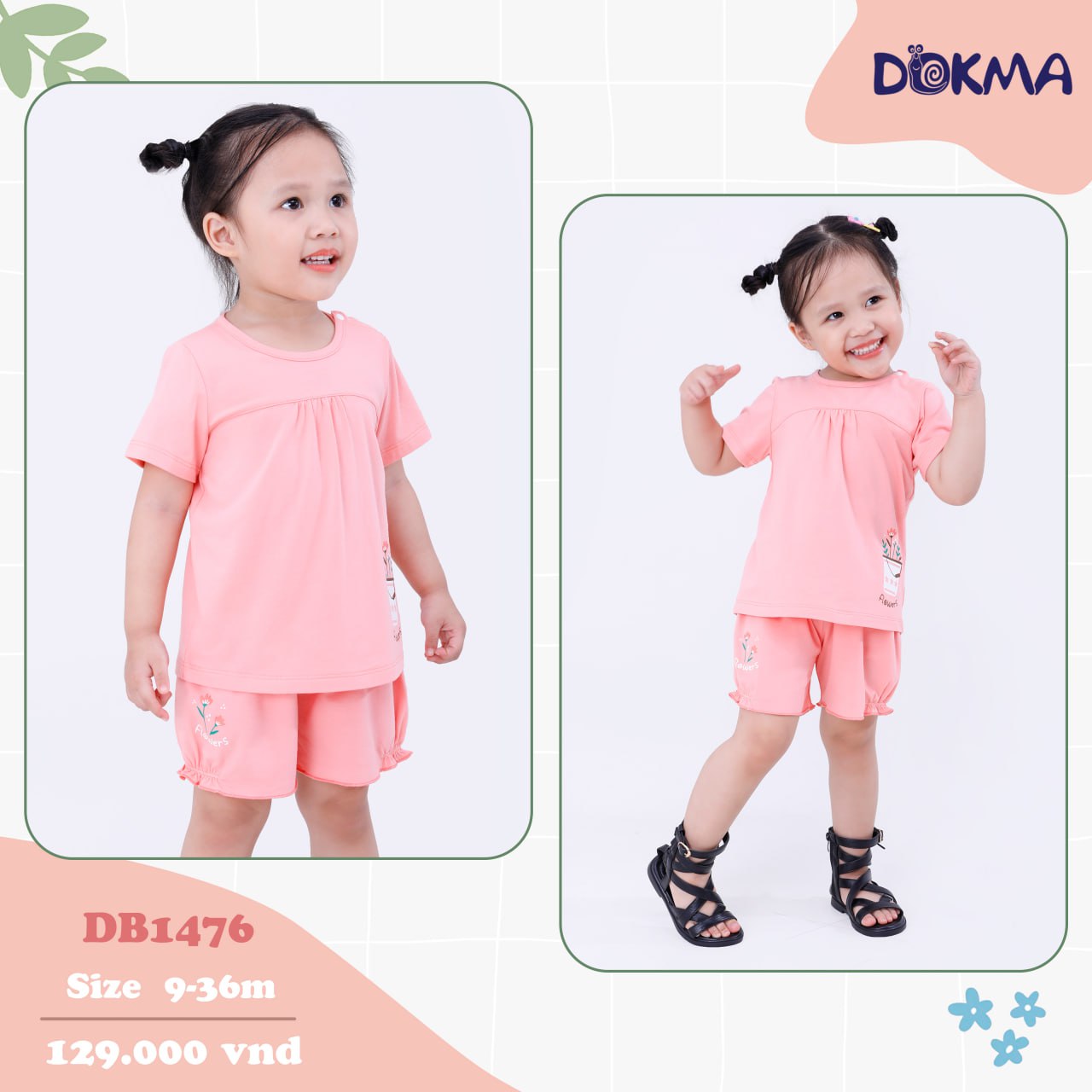 DB1476 Bộ cài vai cộc tay bé gái (18-36M)