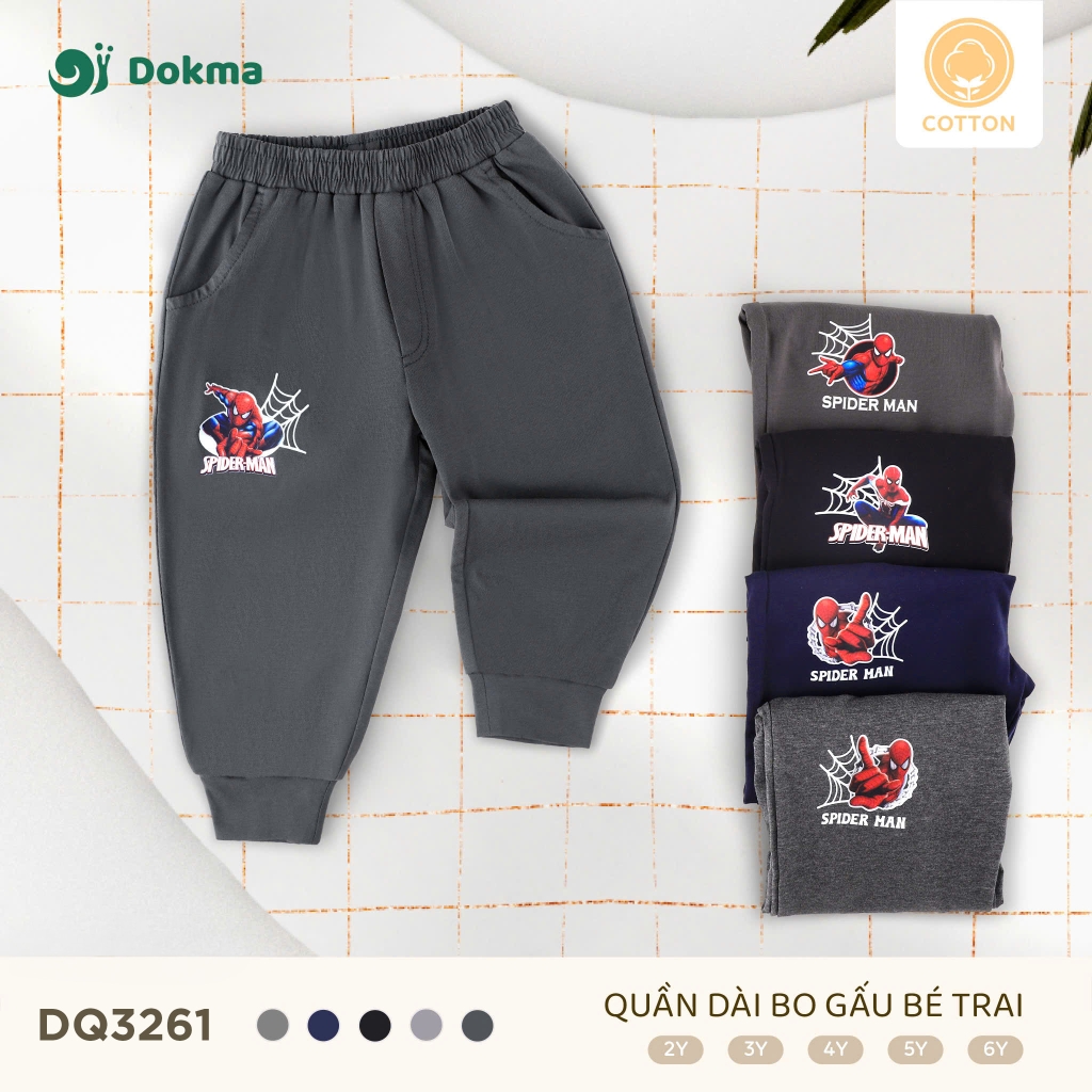 Quần dài bo gấu bé trai Dokma DQ3261 nổi bật với họa tiết in hình Spider-Man cực ngầu, mang lại phong cách cá tính và năng động cho bé trai. Chất liệu cotton cao cấp, mềm mại và thoáng khí, an toàn cho da nhạy cảm, giúp bé luôn thoải mái khi mặc cả ngày.