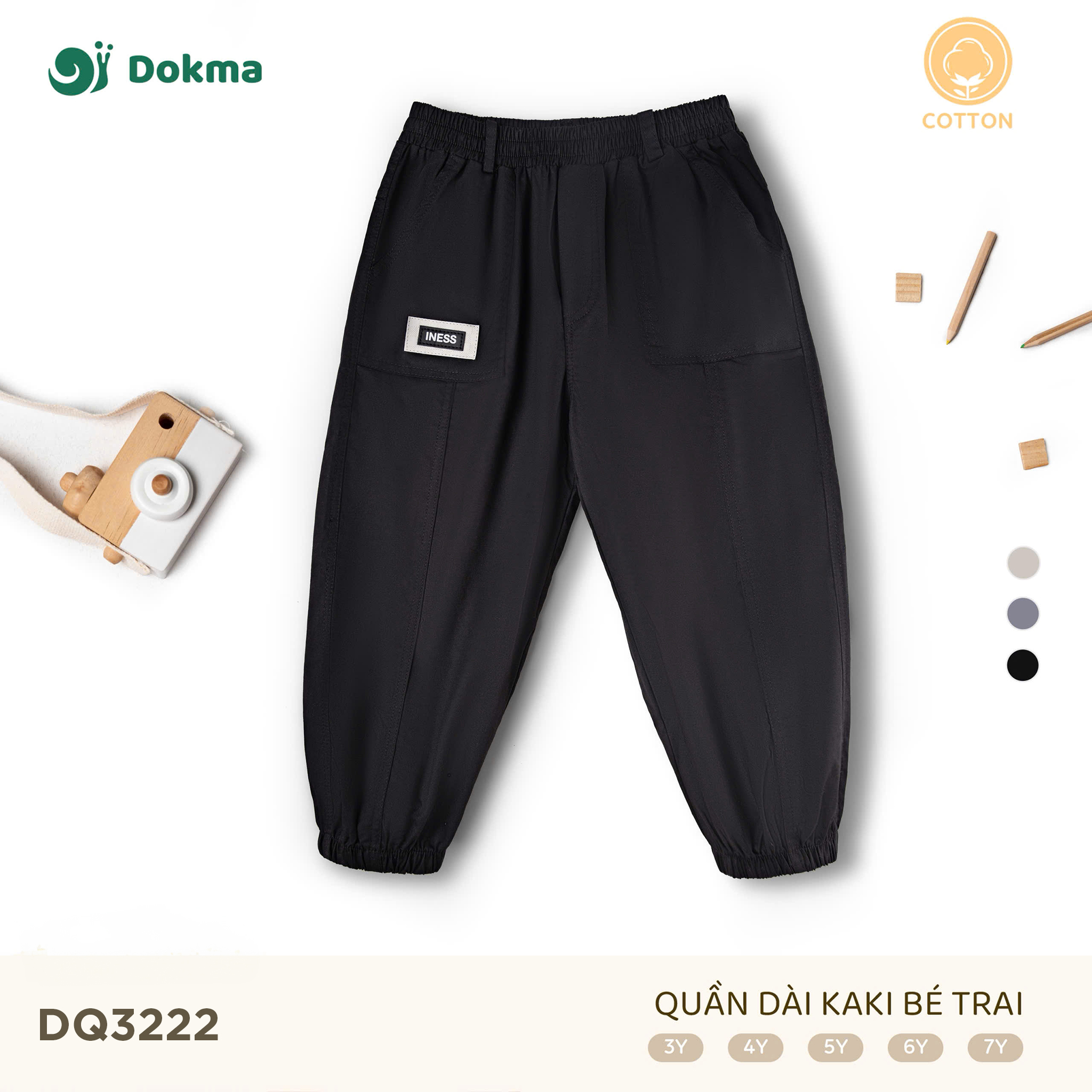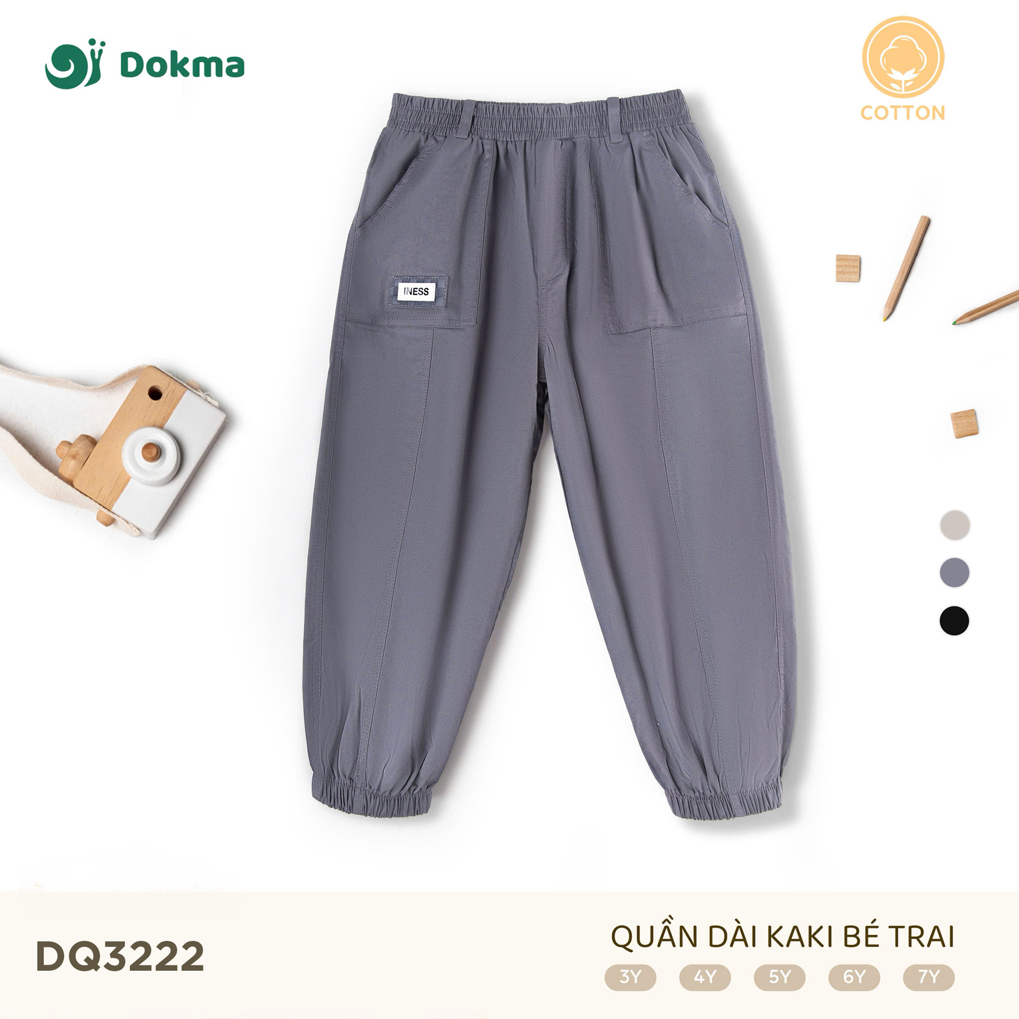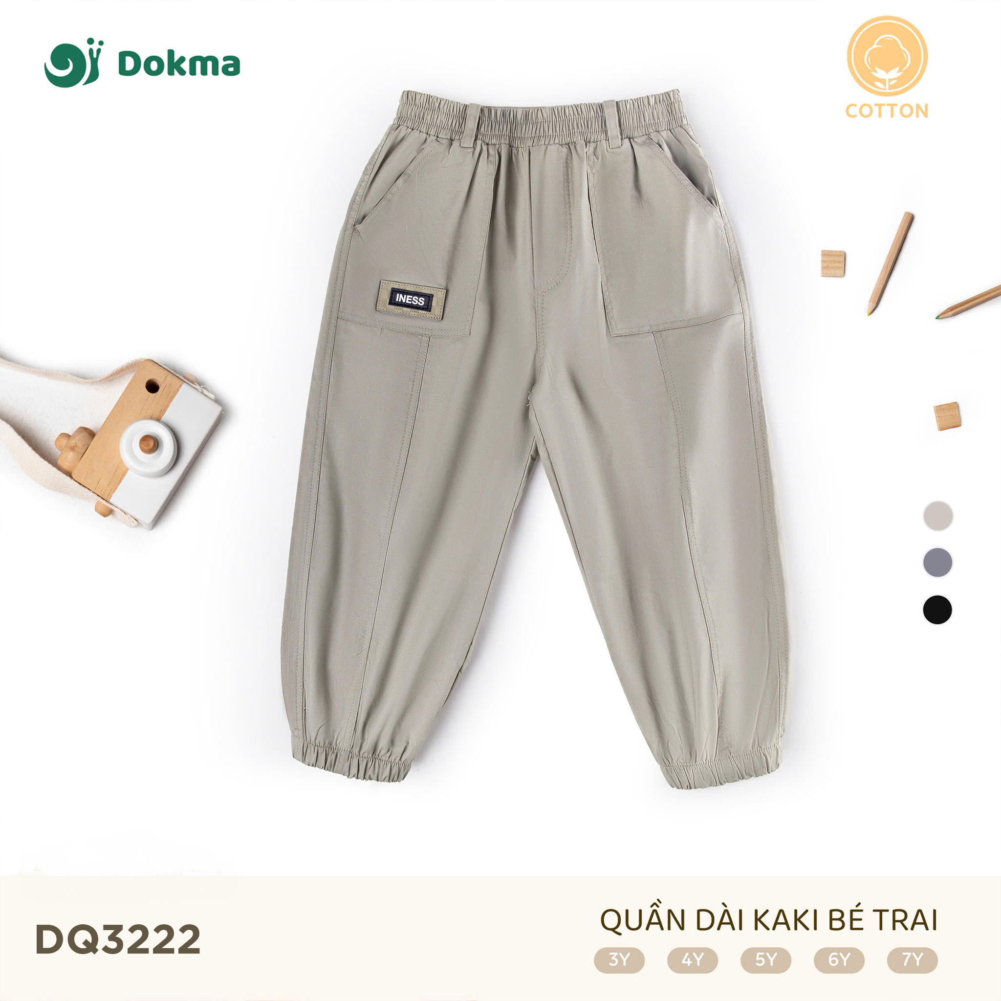 Quần dài kaki bé trai Dokma DQ3222 được may từ chất liệu cotton kaki cao cấp, mềm mại và thoáng khí, an toàn cho làn da của bé. Thiết kế dáng suông vừa vặn, lưng thun co giãn thoải mái, kết hợp túi hộp sành điệu tạo nên vẻ ngoài năng động và cá tính cho bé trong mọi hoạt động.