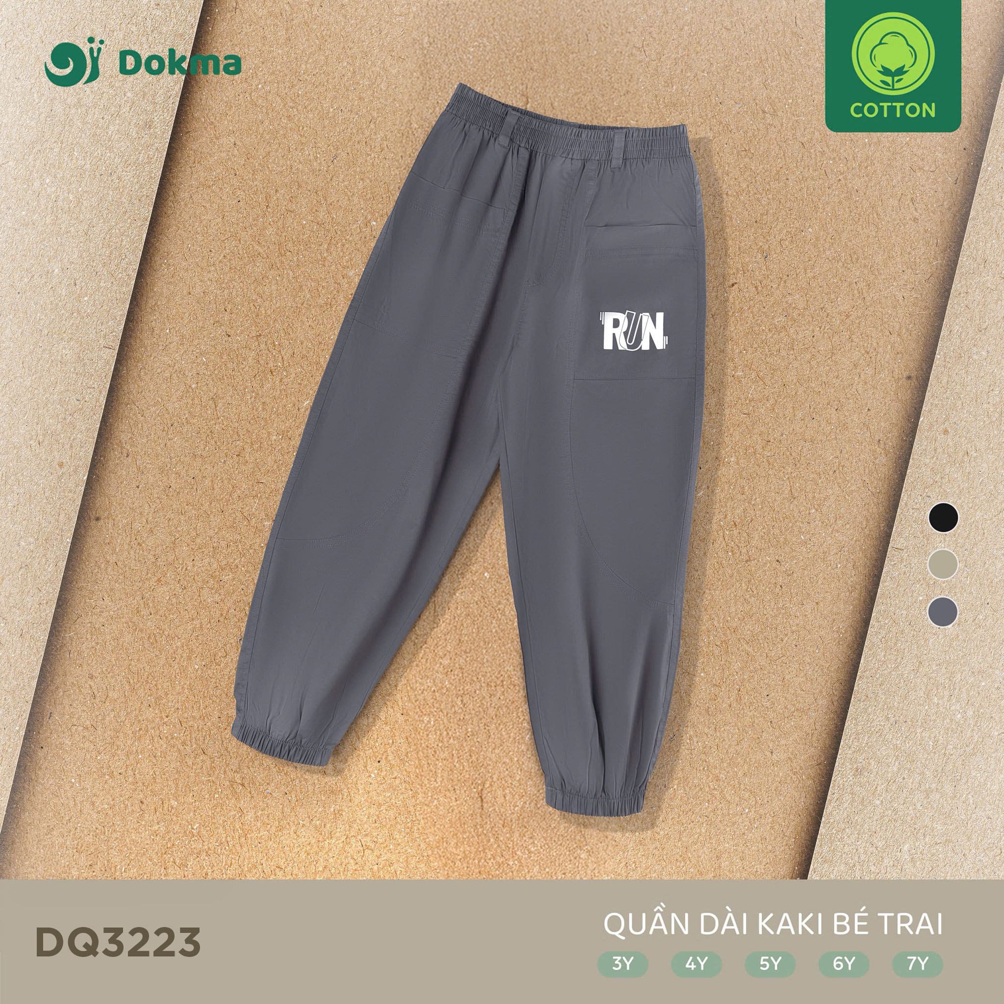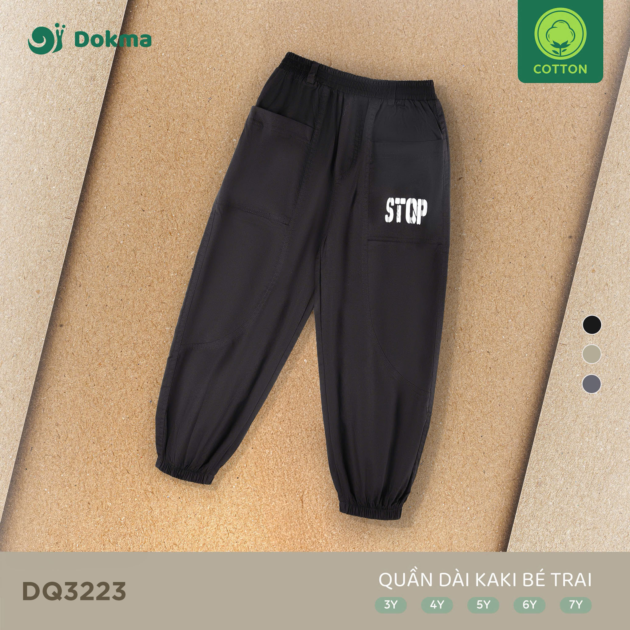 Chất liệu cotton kaki thoáng khí, bền đẹp, không gây bí nóng.
