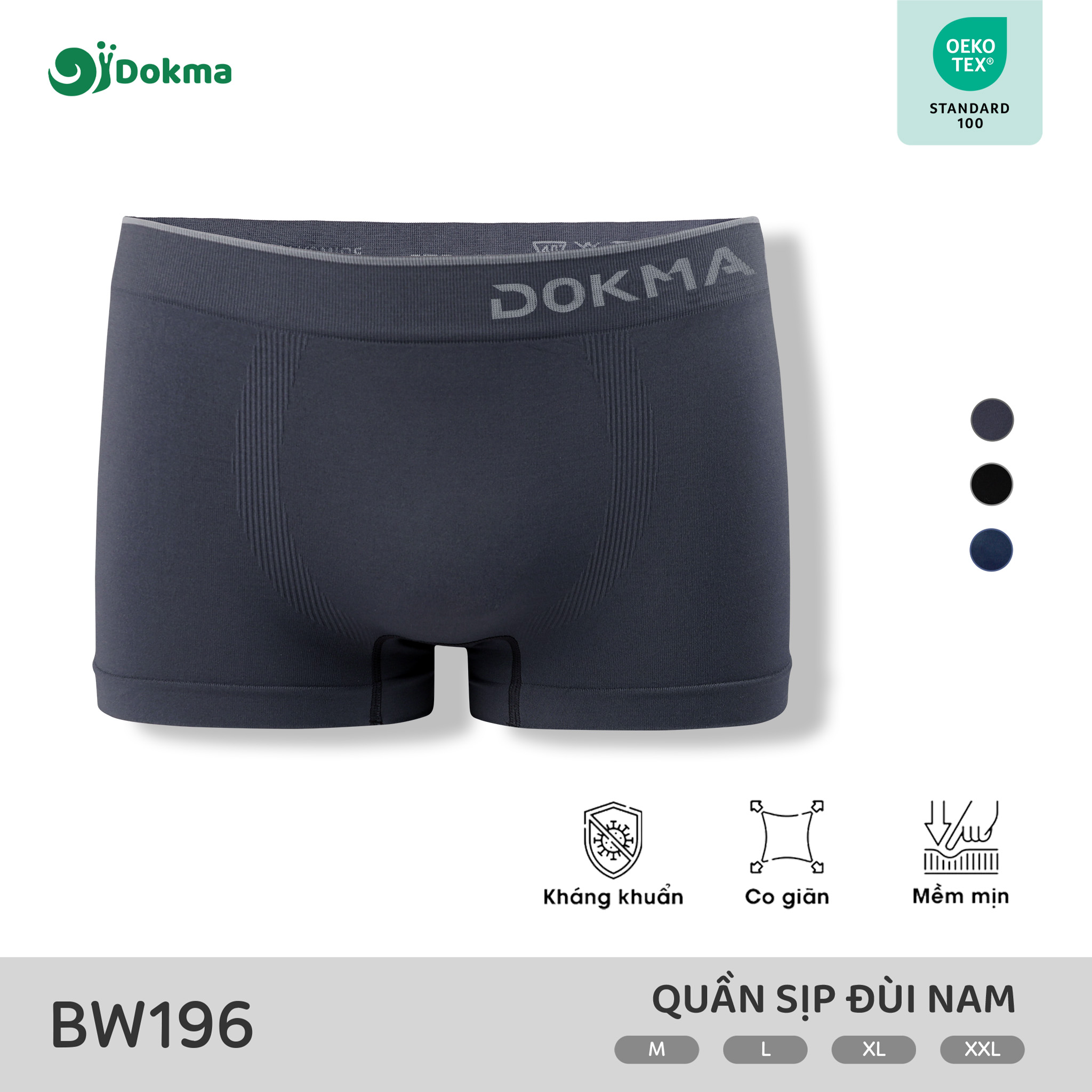 Thiết kế cạp chun bản vừa, có logo Dokma nổi bật, mềm mại và không gây hằn da. Form quần gọn gàng, hiện đại, dễ mặc. Gam màu trung tính hiện đại, dễ phối đồ, phù hợp với nhiều phong cách khác nhau.